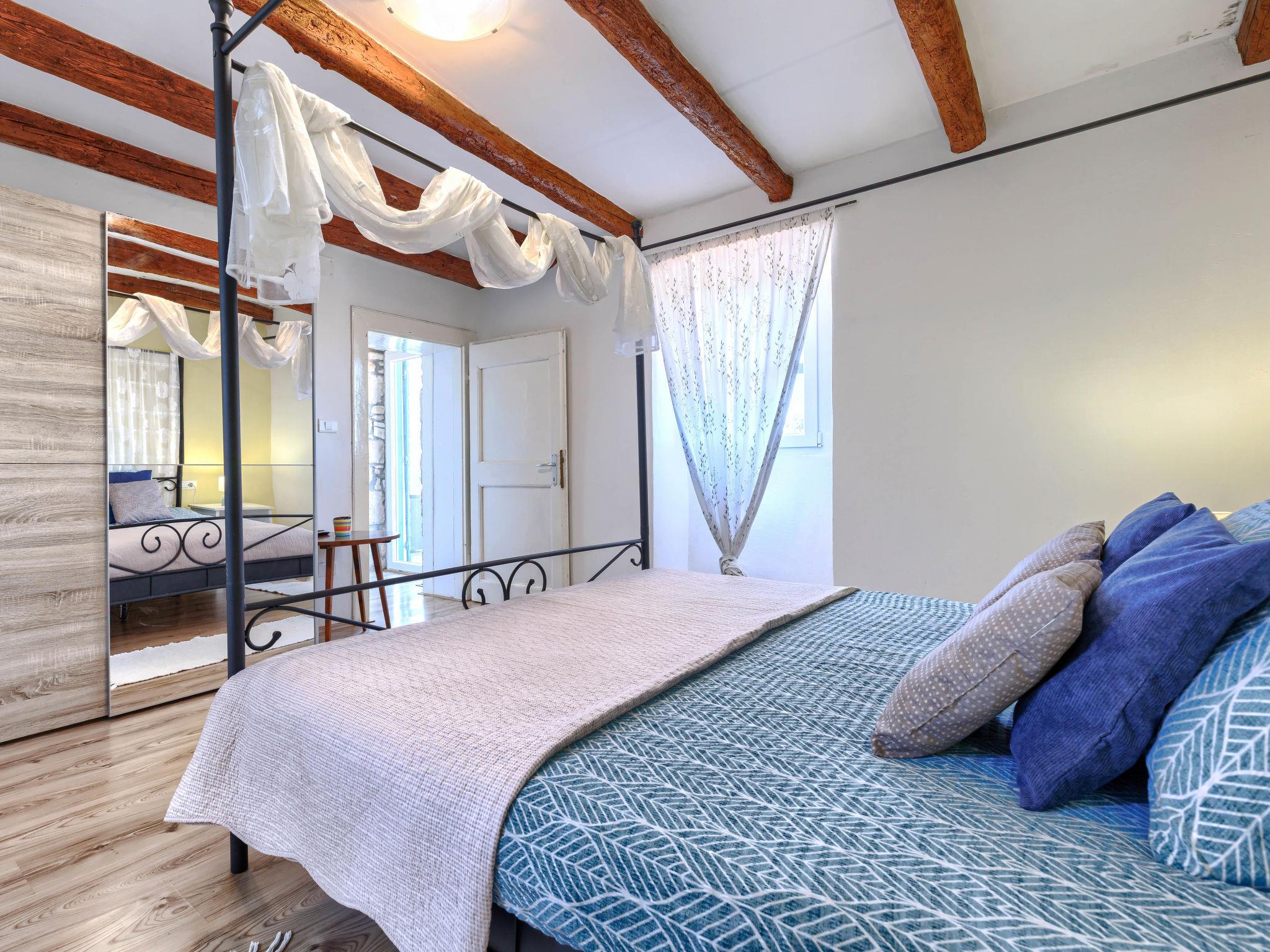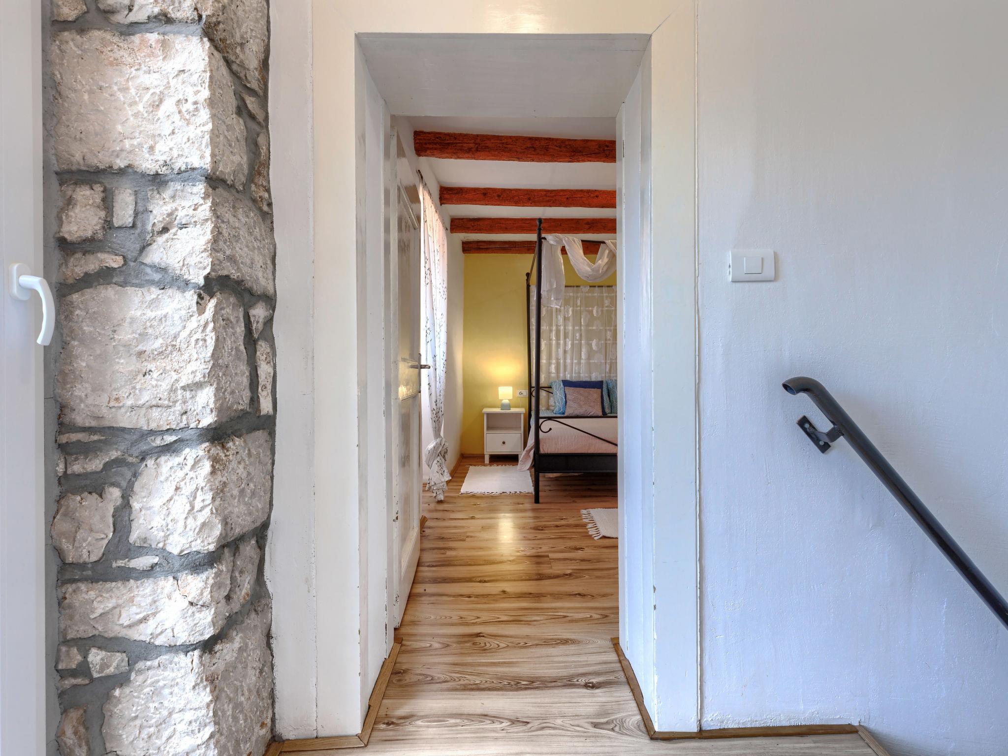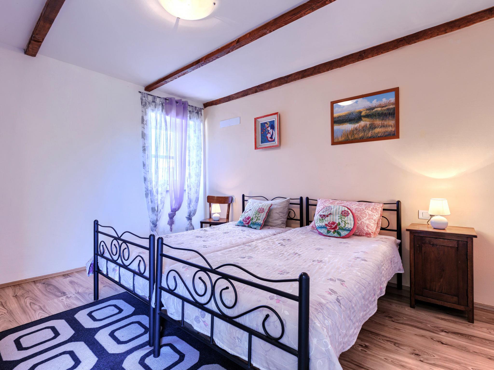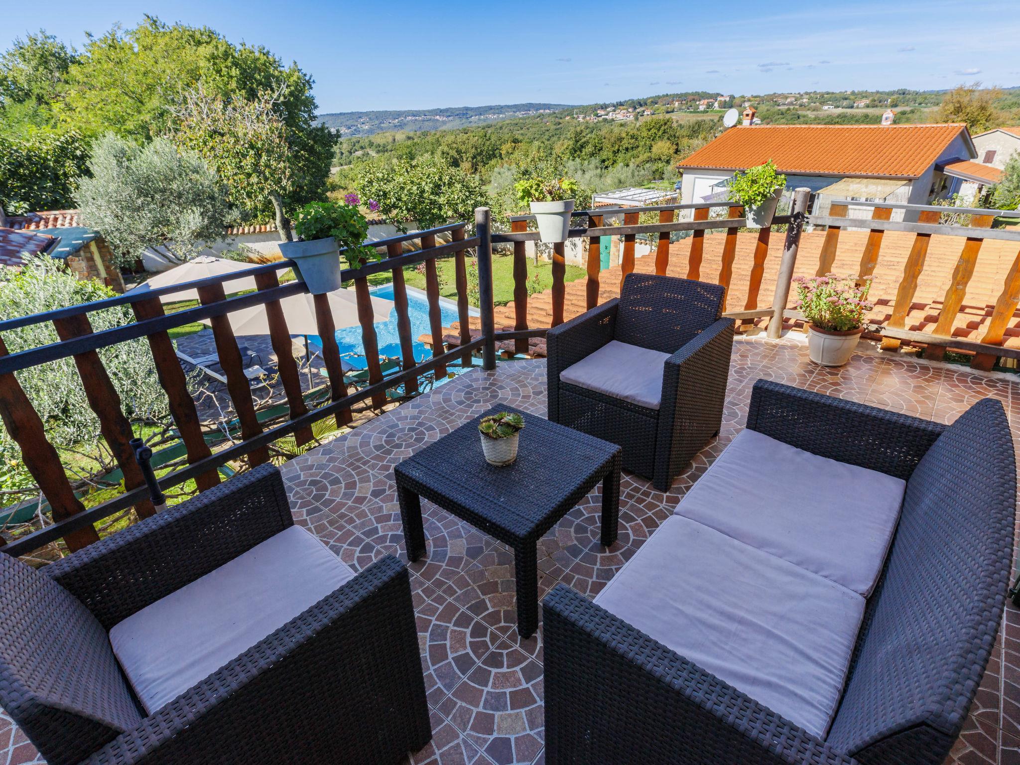 Rustic semi-detached house "Marija", 2 storeys. In the hamlet Markoci 7 km from the centre of Labin, 12 km from the centre of Rabac, 12 km from the sea, in the countryside. Private: property 500 m2 (fenced), lawn and wildlife garden, swimming pool angular (7 x 4 m, depth 140 cm, seasonal availability: 01.Apr. - 30.Oct.) with internal staircase. Outdoor shower, terrace (20 m2), garden furniture, barbecue, pool maintenance by the owner/gardener. In the house: internet access, washing machine. Parking (for 2 cars) at the house on the premises. Shop 2 km, supermarket 7 km, restaurant 2 km, bus stop "Labin" 7 km, pebble beach 12 km. Please note: airfield 50 km from the property.