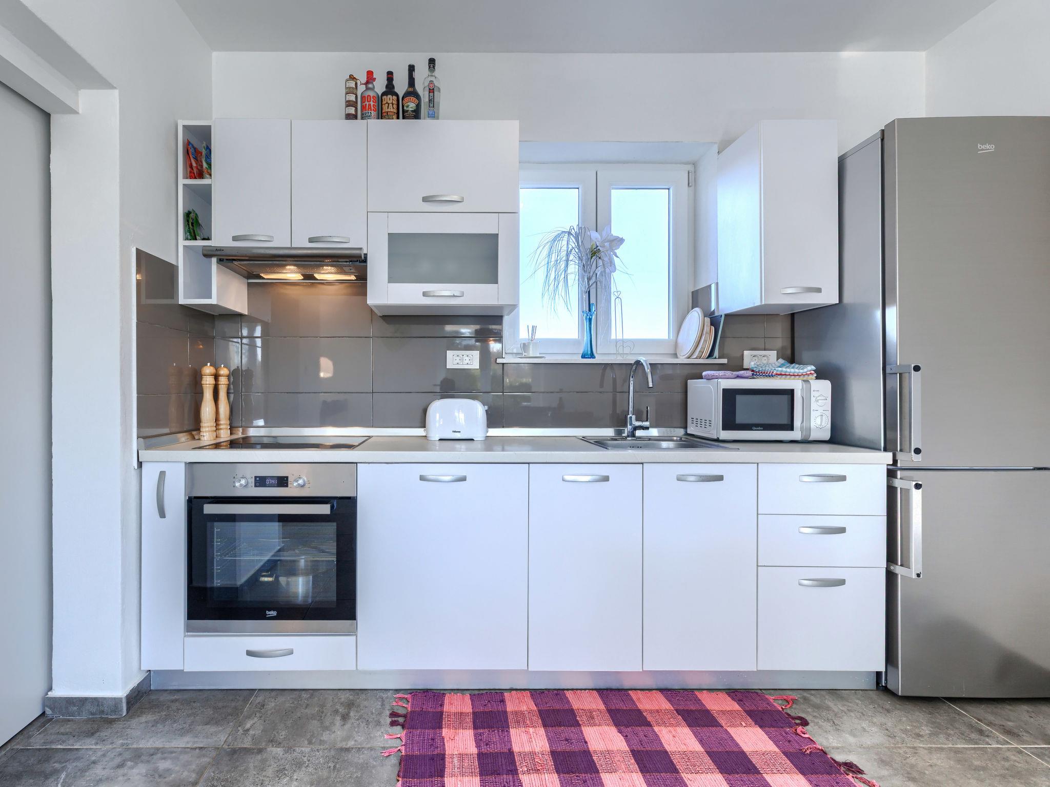 Single-family house "Istria Queen", 2 storeys. In the hamlet Sveti Bartul 3 km from the centre of Labin, 9 km from the centre of Rabac, 9 km from the sea. Private: property 1'000 m2 (fenced), lawn and wildlife garden, swimming pool angular (8 x 4 m, depth 140 cm, seasonal availability: 01.Apr. - 31.Oct.) with internal staircase. Outdoor shower, terrace (10 m2), garden furniture, barbecue, pool maintenance by the owner/gardener. In the house: internet access, washing machine. 200 m long motor access (via unmade road). Parking (for 4 cars) at the house on the premises. Shop 2 km, supermarket 3 km, restaurant 5 km, bus stop "Labin" 5 km. Please note: airfield 45 km from the property. Private: outdoor kitchen (barbecue, fridge, dishwasher, sep. WC). The unit consists of 2 apartments, rented as one unit.