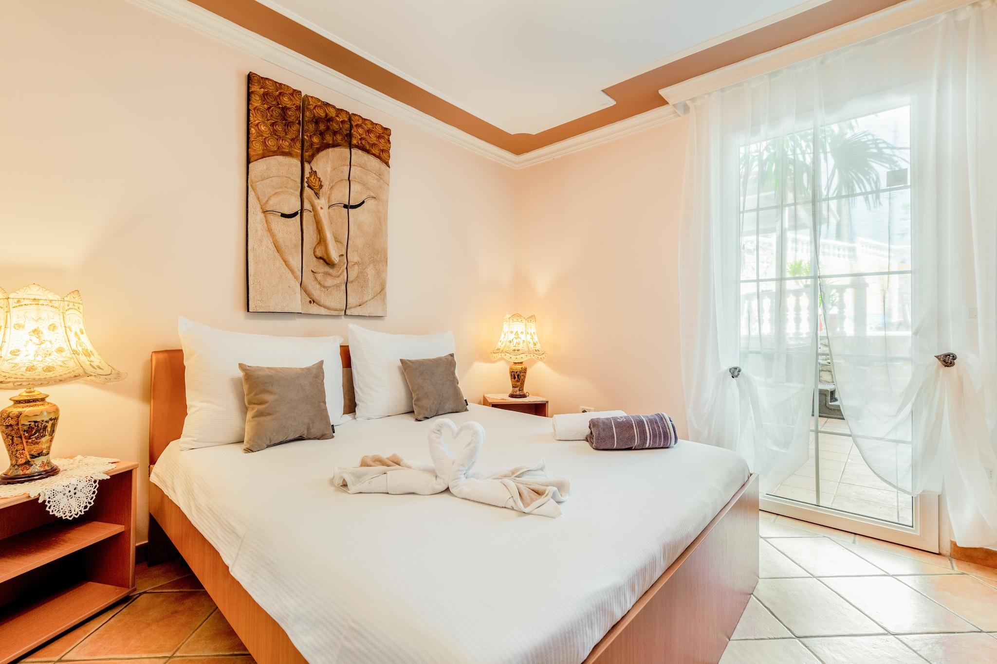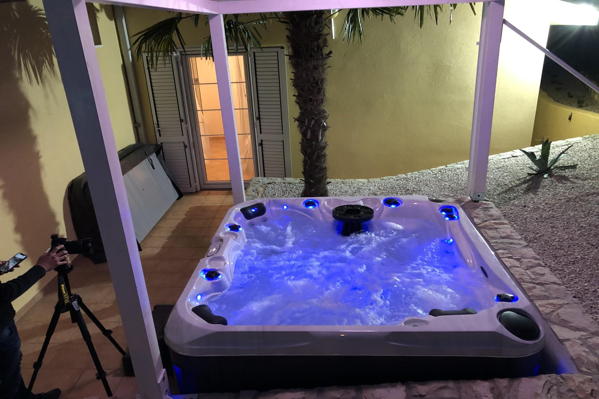 Smuk villa i romersk stil har 240 m2 boligareal og 780 m2 have. Villa består af: 100m2 med 30m2 terrasse, 2 soveværelser, badeværelse med sauna, gæstetoilet, stue med pejs, der opvarmer hele lejligheden, køkken, pantry, terrasse, aircondition. Lejlighed (for gæster eller tjenere) ca 39m2, med soveværelse. køkken og stue, badeværelse, aircondition x2. Swimmingpool med vandfald 4x8, bruser, pavillon, terrasse ca 150m. Tavern 40 m2, udstyret med billardbord, udendørs køkken, pejs, badeværelse, spisekammer, toilet, air-condition. Villa har en flot udsigt over den gamle bydel Labin og ligger i Ripenda nær Rabac, Labin ligger ca. 2 km fra Rabac, dvs. Havet 3 km.