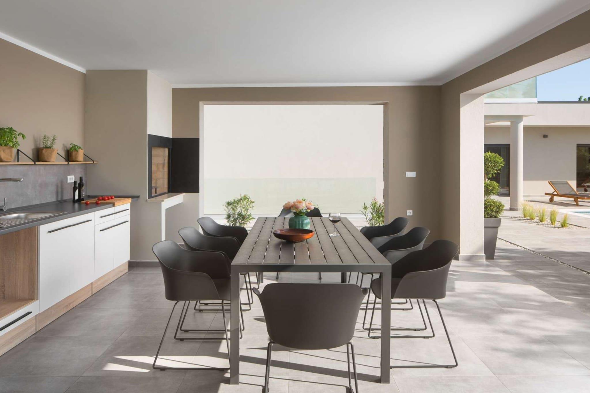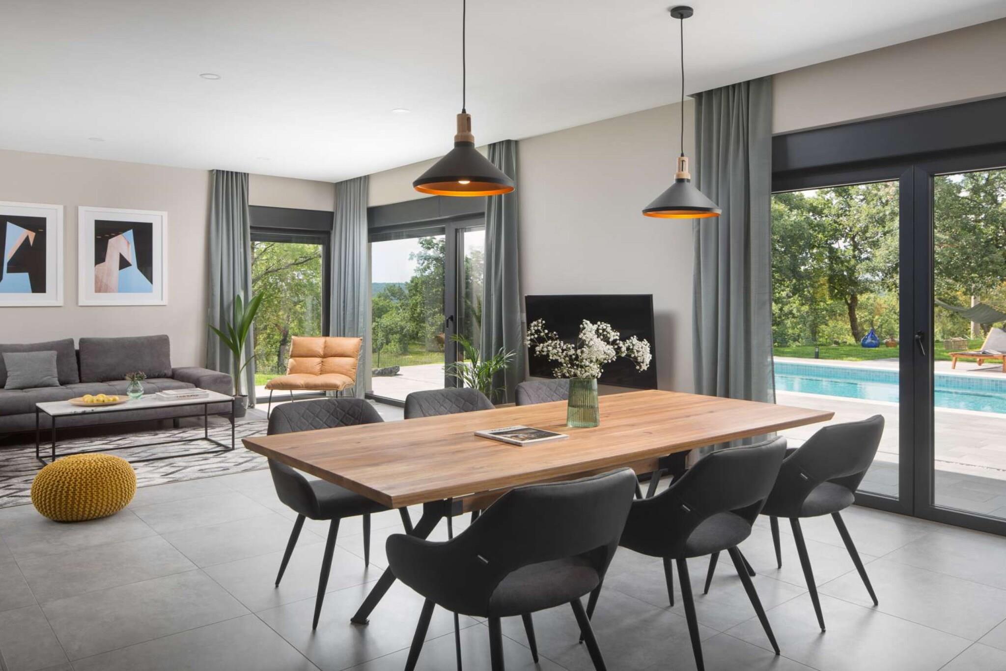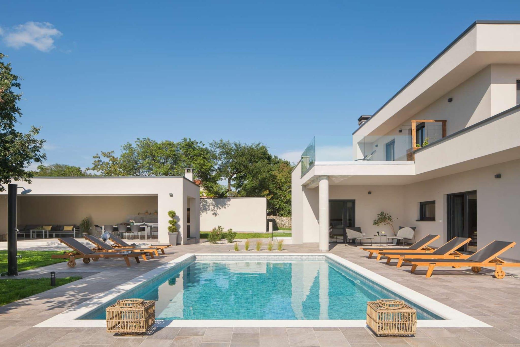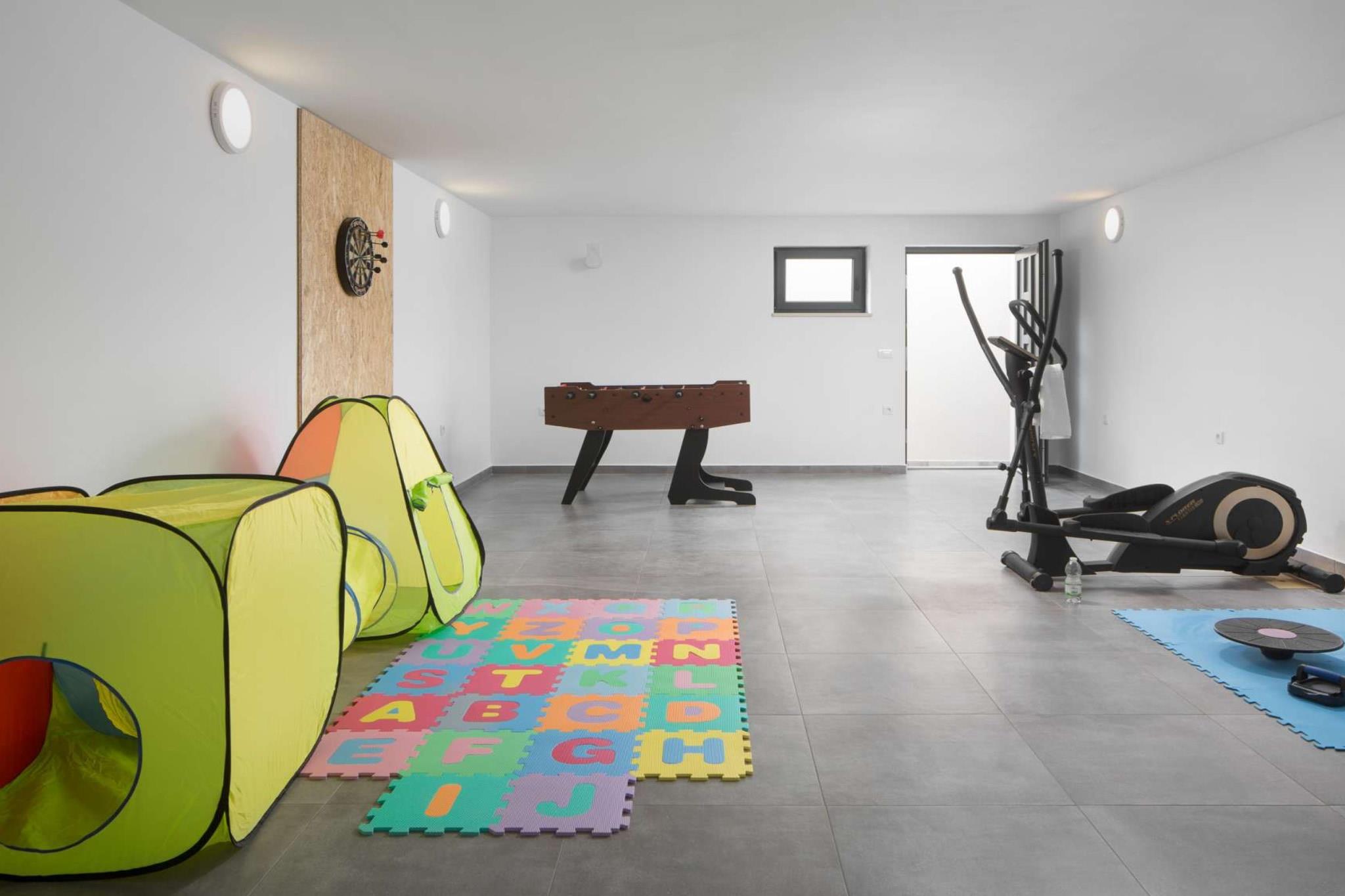 Denne iøjnefaldende villa i Labin, Istrien er perfekt til en afslappende ferie med familie eller venner. Det ligger blot 7 km fra stranden og har en privat udendørs pool og et fitnesscenter, der er ideelt for aktive rejsende. Den rummelige terrasse og have tilbyder masser af plads til at slappe af, uanset om du nyder morgenmad udendørs eller nyder solen. Labins historiske charme ligger kun 4 km væk, hvor brostensbelagte gader, hyggelige caféer og panoramaudsigt over Adriaterhavet venter. Udforsk den gamle bydel, besøg Saint Mary-kirken, eller nyd landskabet fra udsigtspunktet på en bakketop. Der ligger et supermarked 4 km derfra, og lokale restauranter ligger kun 2 km fra villaen. Villaen har udendørs køkken, balkon og privat parkering. Uanset om du træner, svømmer eller nyder en middag i solnedgangen, har denne villa alt hvad du behøver for en mindeværdig flugt fra Istrien.