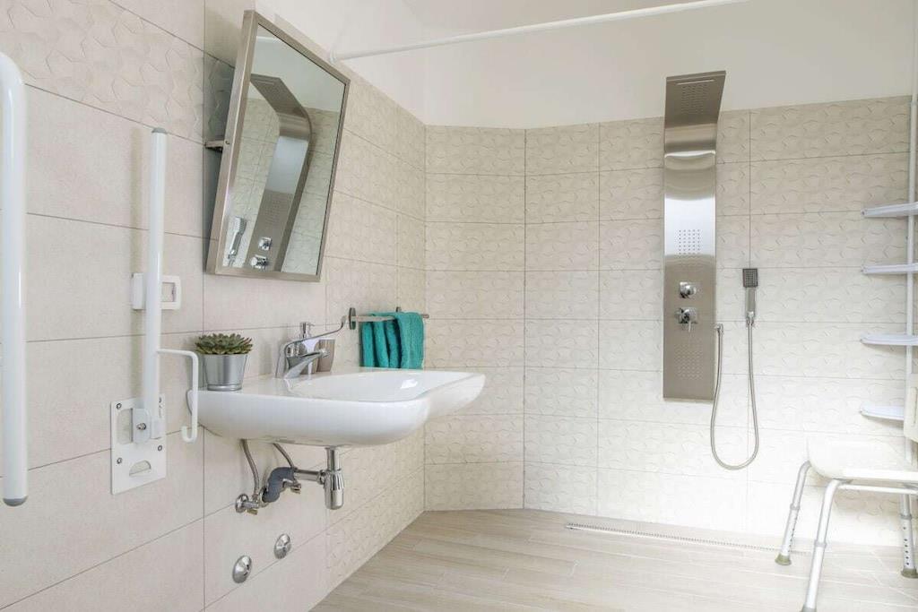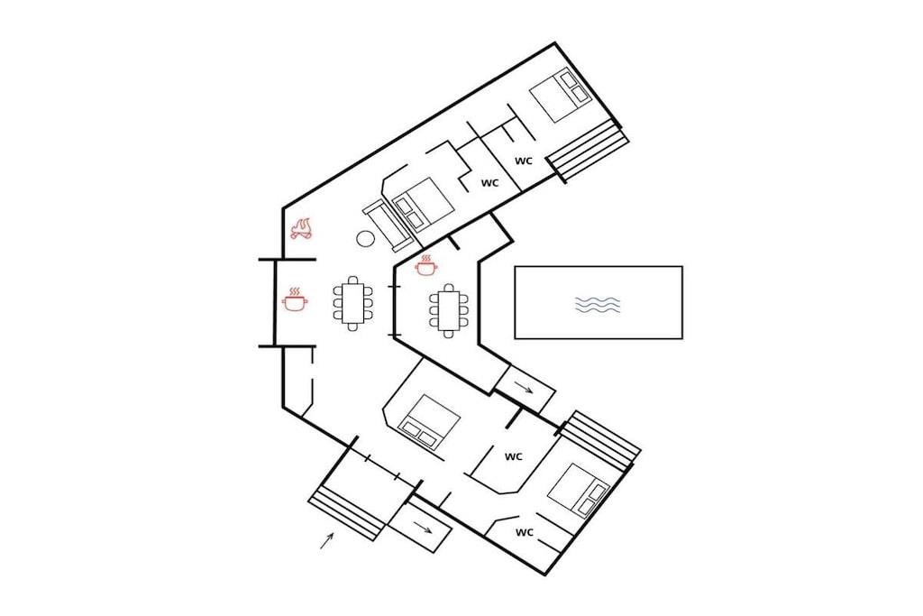Villa Dina er et unikt feriehus, ideelt til 2 familier med børn! Bygningen er V-formet med fire soveværelser, som hver har eget badeværelse, aircondition og tv. Det centrale område er et åbent rum med stue, køkken og spisestue med udsigt over poolen. Terrassen har eget lille køkken og åben pejs. Midt i det V-formede feriehus ligger poolen med en legeplads bestående af en trampolin, en rutsjebane og en gynge. Villa Dina er fuldstændig barrierefri! Et af soveværelserne er specielt bygget til mennesker med handicap. De specielle elementer til perfekt brug blev installeret i det tilhørende badeværelse, og den udendørs pool har også elevator.