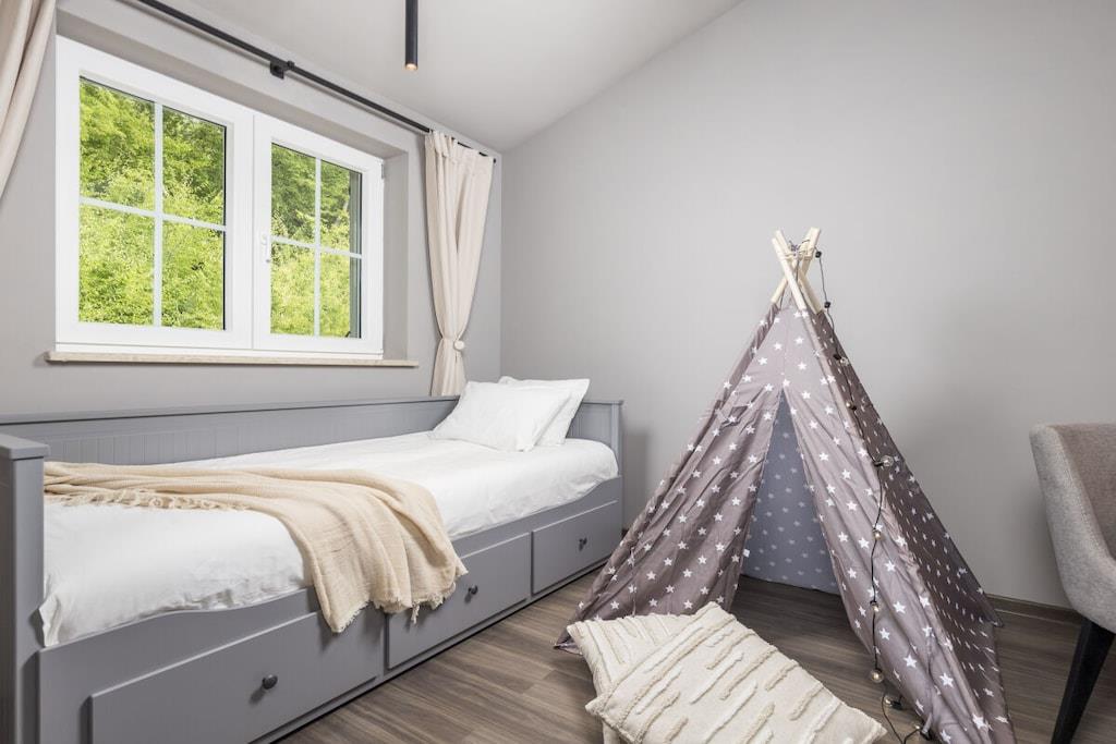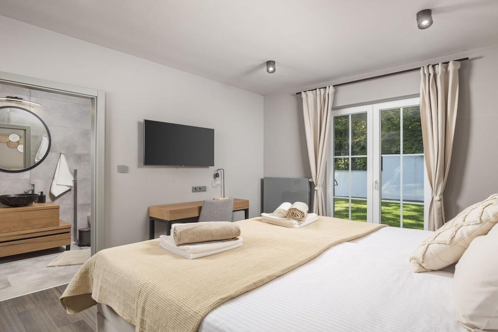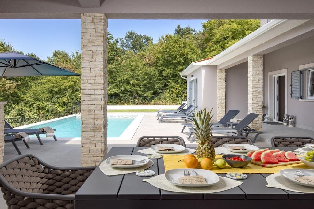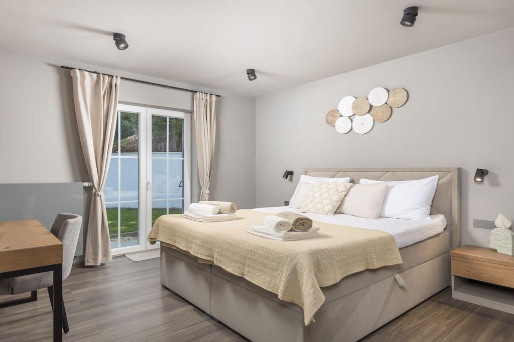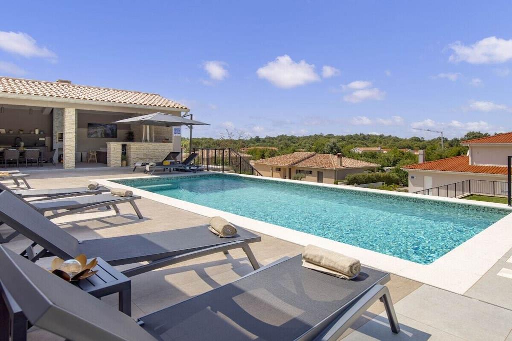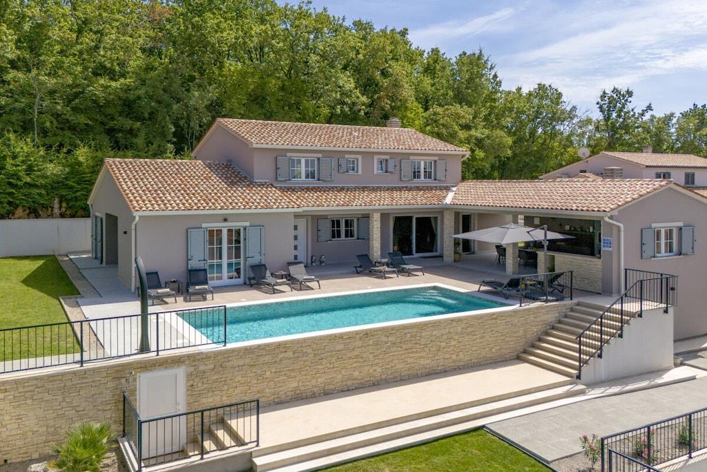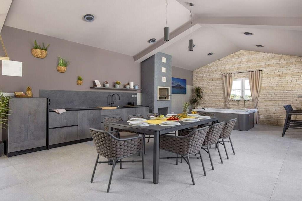 Vila Hygge ligger i den rolige landsby Pustic, i udkanten af skoven nær Labin. Denne elegant møblerede villa tilbyder alt, hvad du behøver for at slappe af og nyde dit ophold. Den har fire soveværelser, hver med eget badeværelse, en rummelig stue, et indendørs og udendørs køkken med spiseplads og en sauna. Udendørsområdet omfatter en pool, et spabad og en stor have, perfekt til forskellige aktiviteter såsom dart eller bordtennis. Poolen ligger i den solrige del af ejendommen, mens resten af huset er behageligt skygget af skoven hele dagen. Gæsterne kan slappe af på den udendørs terrasse eller nyde en grillfest på den veludstyrede terrasse. For de små er der udendørs legepladser og børneprogrammer på tv. Hvis du ønsker at udforske Istriens skønhed, tilbyder Villa Hygge den perfekte base for at opdage dens kulturarv, lokale gastronomi og naturlige vidundere. Efter din udforskning vil du altid være glad for at vende tilbage til dette fredelige tilflugtssted. Strandene i Rabac ligger kun 10 minutters kørsel væk.