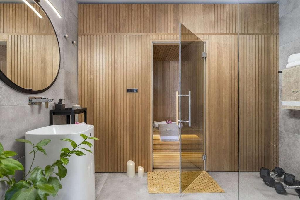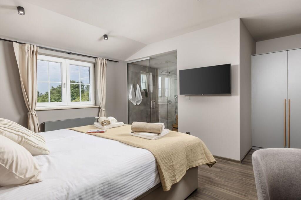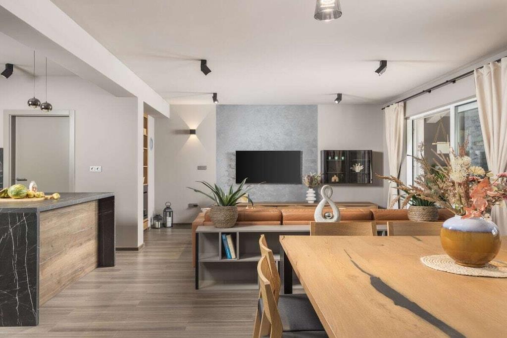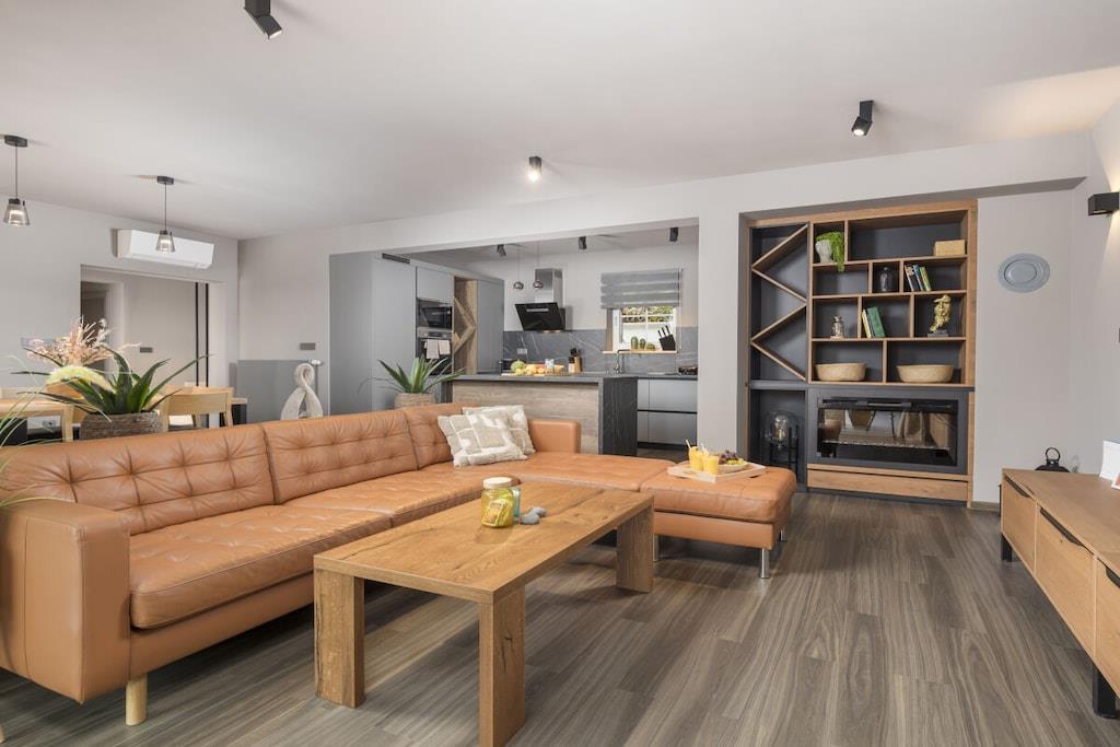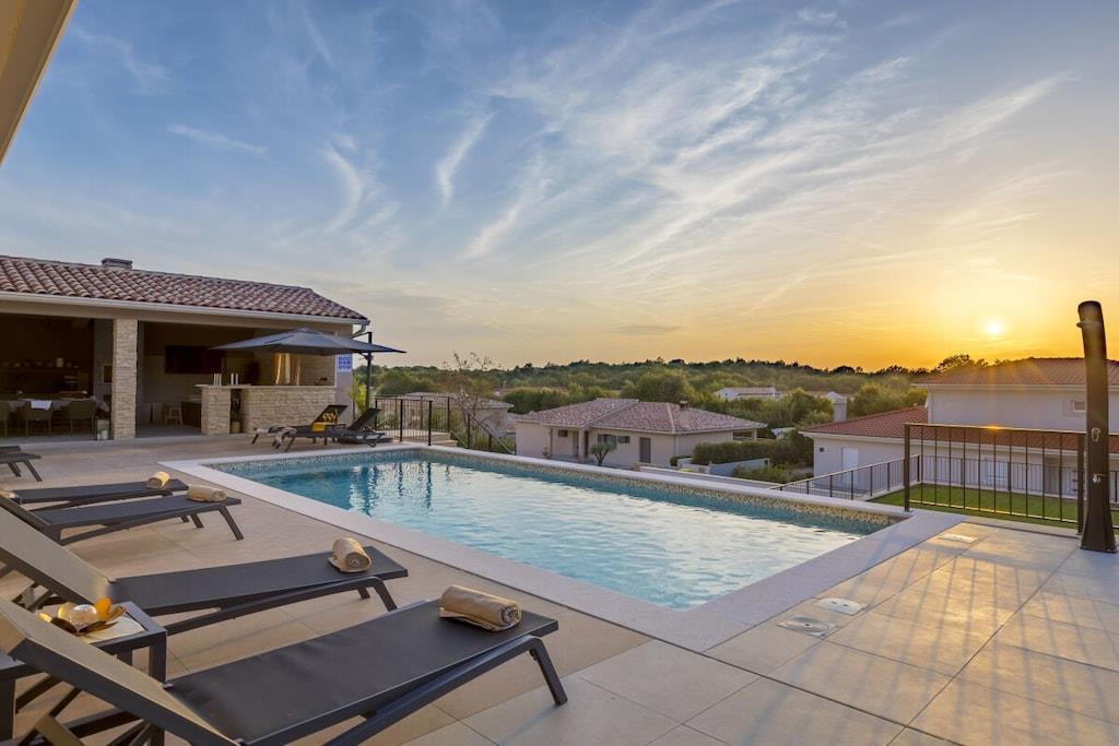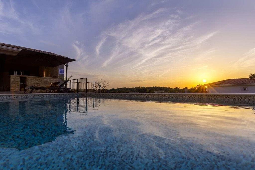 Vila Hygge ligger i den rolige landsby Pustic, i udkanten af skoven nær Labin. Denne elegant møblerede villa tilbyder alt, hvad du behøver for at slappe af og nyde dit ophold. Den har fire soveværelser, hver med eget badeværelse, en rummelig stue, et indendørs og udendørs køkken med spiseplads og en sauna. Udendørsområdet omfatter en pool, et spabad og en stor have, perfekt til forskellige aktiviteter såsom dart eller bordtennis. Poolen ligger i den solrige del af ejendommen, mens resten af huset er behageligt skygget af skoven hele dagen. Gæsterne kan slappe af på den udendørs terrasse eller nyde en grillfest på den veludstyrede terrasse. For de små er der udendørs legepladser og børneprogrammer på tv. Hvis du ønsker at udforske Istriens skønhed, tilbyder Villa Hygge den perfekte base for at opdage dens kulturarv, lokale gastronomi og naturlige vidundere. Efter din udforskning vil du altid være glad for at vende tilbage til dette fredelige tilflugtssted. Strandene i Rabac ligger kun 10 minutters kørsel væk.