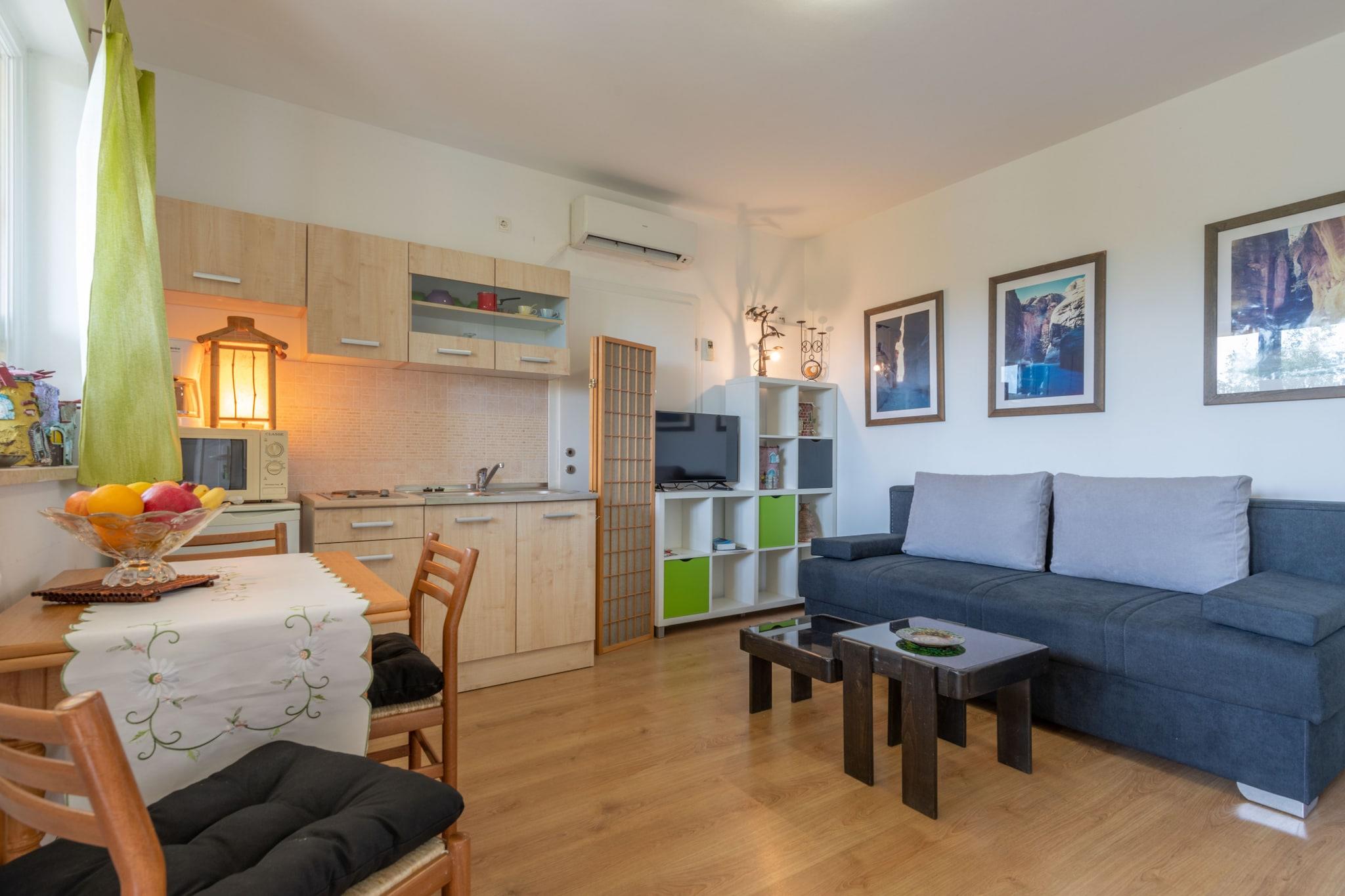 Denne charmerende etværelses lejlighed i Labin tilbyder en romantisk flugt for par, designet til at rumme to gæster i et hyggeligt og veludstyret rum. Lejligheden har en king-size seng, aircondition for komfort og et fuldt udstyret køkken i amerikansk stil med moderne apparater såsom en mikrobølgeovn, kaffemaskine og alt nødvendigt køkkenudstyr. Gæsterne kan nyde en privat stue, en fælles have og en dejlig terrasse, perfekt til at slappe af med morgenkaffe eller aftendrinks. En privat parkeringsplads er også tilgængelig på stedet, hvilket tilføjer bekvemmelighed til opholdet. Beliggende kun 200 meter fra den historiske by Labin, er lejligheden ideelt placeret for at udforske regionen. Labins charmerende gader, restauranter og kaffebarer er inden for rækkevidde, mens de smukke klippestrande i Rabac kun ligger i kort afstand. En naturskøn vandresti, der forbinder Labin med Rabac, giver gæsterne mulighed for at udforske områdets fantastiske naturlige skønhed, herunder skovlandskaber, vandløb og vandfald. Det lokale supermarked, der ligger 800 meter fra ejendommen, gør det nemt at fylde op med det væsentlige. Yderligere faciliteter omfatter en have med udendørsmøbler, en vaskemaskine og gratis trådløs internetadgang. For dem, der ønsker at slappe af, ligger et skønheds- og massagestudie i samme bygning, som tilbyder nedsatte behandlinger såsom massage, ansigtsbehandlinger og homøopati. Denne lejlighed tilbyder et roligt og intimt tilflugtssted med alt hvad du behøver for en fredelig og foryngende ferie.