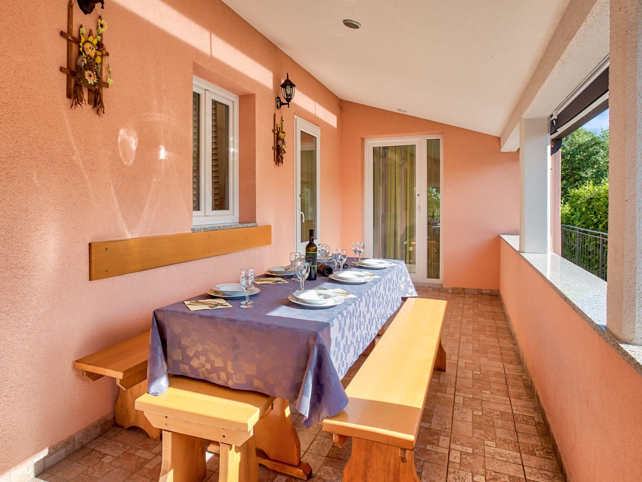 Haus bietet Platz für 8 Gäste. Die Betten sind in Schlafzimmern, die es 3 gibt, und in Wohnzimmer, innerhalb einer Gesamtfläche von 130m2, angeordnet. Die Gäste haben eine eigene Terrasse zur Verfügung, auf der sie in warmen Sommernächten genießen können. Für vollen Genuss und Entspannung gibt es einen privaten Grill für Gäste dieser Unterkunft. Während ihres Aufenthalts können sich Gäste im privaten Schwimmbad entspannen. In der Unterkunftseinheit besteht die Möglichkeit des Mitbringens von Haustieren gegen Aufpreis. In der gebuchten Unterkunftseinheit zahlt man am Ort ein Depositum ( der Preis ist an der Internetseite angeführt ). IM PREIS INBEGRIFFEN: Kurtaxe, Endreinigung, Klimatisierung, Pool, Parkplatz, Internet, Kinderbett, Bügeleisen, Bügelbrett. VERBINDLICHE ZUSÄTZLICHE KOSTEN: Kaution (200,00 € Einmalzahlung). UNVERBINDLICHE ZUSÄTZLICHE KOSTEN: Haustiere (10,00 € pro Nacht). Die Verfügbarkeit zusätzlicher Dienstleistungen in Ihrem reservierten Termin und die Preise derselben (falls nicht aufgeführt) müssen im Voraus überprüft werden. Zusätzliche Dienstleistungen die in der Zahlungsaufforderung nicht aufgeführt sind werden direkt beim Vermieter bezahlt, angenommen der Gast nutzt auch diese.