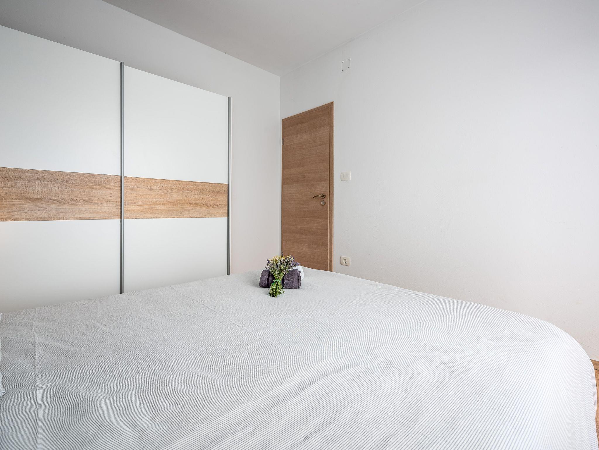 Ferienwohnung bietet Platz für 3 Gäste. Die Betten sind in Schlafzimmern, die es 1 gibt, und in Wohnzimmer, innerhalb einer Gesamtfläche von 32m2, angeordnet. Die Gäste haben einen eigenen Balkon zur Verfügung, auf der sie in warmen Sommernächten genießen können. Das Apartment bietet Meerblick. Es ist erlaubt, Speisen auf dem Gemeinschafts-Grill vorzubereiten. Während ihres Aufenthalts können Gäste das gemeinsam zur Nutzung stehende Schwimmbad benutzen. In der Unterkunftseinheit besteht die Möglichkeit des Mitbringens von Haustieren gegen Aufpreis. IM PREIS INBEGRIFFEN: Kurtaxe, Endreinigung, Klimatisierung, Pool, Parkplatz, Internet, Wäschewaschen, Kinderbett, Bügeleisen, Bügelbrett, Föhn. UNVERBINDLICHE ZUSÄTZLICHE KOSTEN: Haustiere (10,00 € pro Nacht), Fahrrad (20,00 € täglich (pro Stück)). Die Verfügbarkeit zusätzlicher Dienstleistungen in Ihrem reservierten Termin und die Preise derselben (falls nicht aufgeführt) müssen im Voraus überprüft werden. Zusätzliche Dienstleistungen die in der Zahlungsaufforderung nicht aufgeführt sind werden direkt beim Vermieter bezahlt, angenommen der Gast nutzt auch diese.