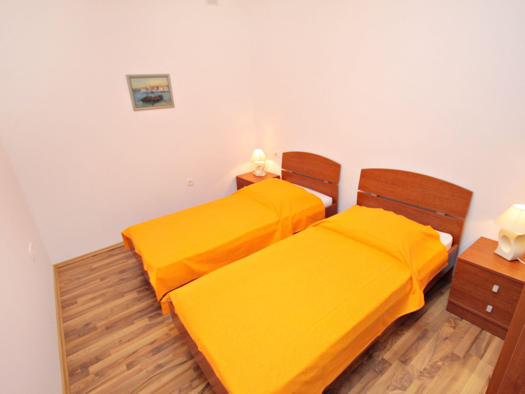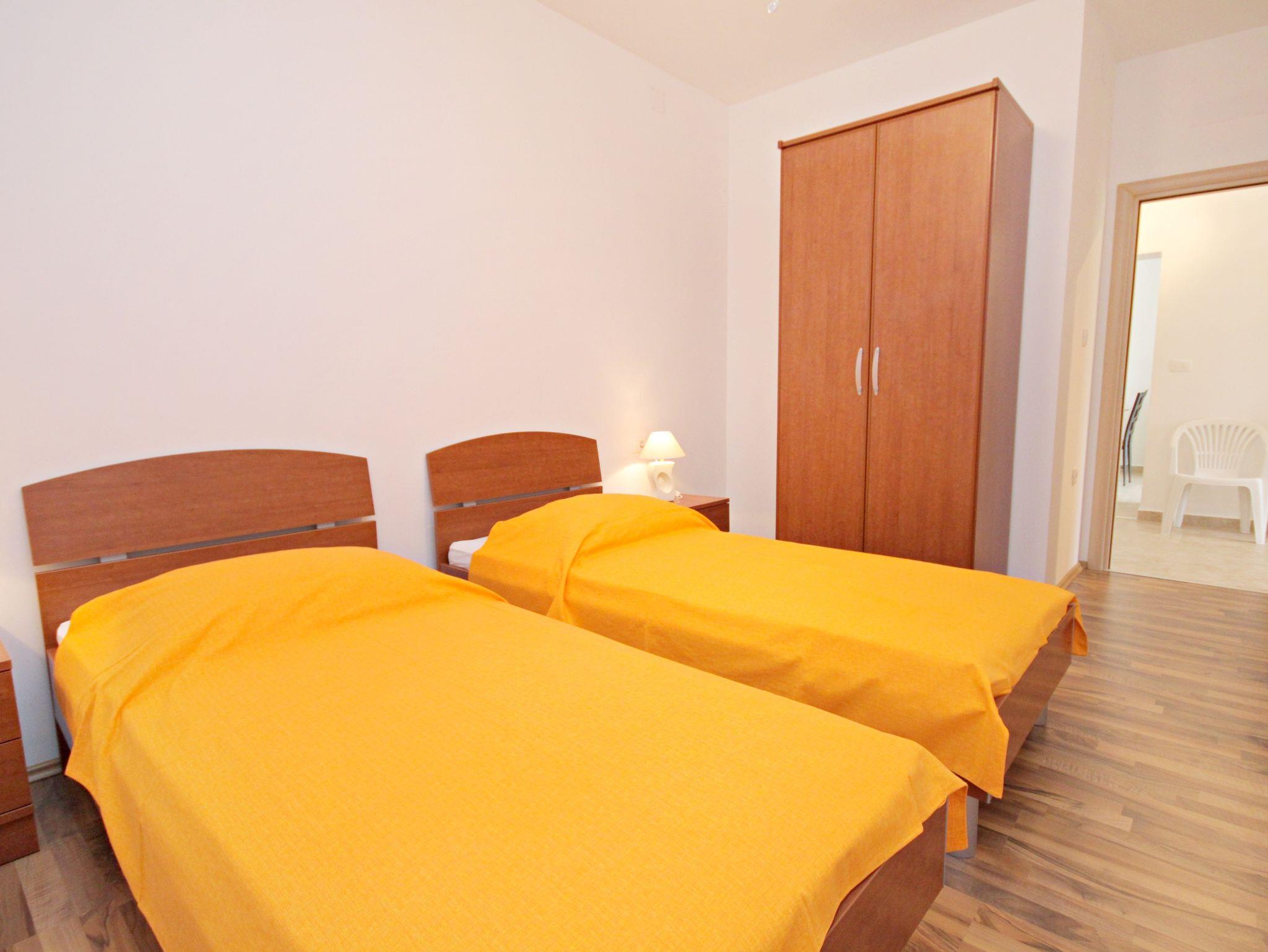 Ferienwohnung bietet Platz für 4 Gäste. Die Betten sind in Schlafzimmern, die es 2 gibt, innerhalb einer Gesamtfläche von 59m2, angeordnet. Die Gäste haben eine eigene Terrasse zur Verfügung, auf der sie in warmen Sommernächten genießen können. Es ist erlaubt, Speisen auf dem Gemeinschafts-Grill vorzubereiten. IM PREIS INBEGRIFFEN: Kurtaxe, Endreinigung, Klimatisierung, Parkplatz, Internet, Kinderbett, tragbarer Grill. VERBINDLICHE ZUSÄTZLICHE KOSTEN: Aufzahlung für Kurzaufenthalte (prozentualer Zuschlag pro Nächtigungsanzahl: 30% - 1, 20% - 2, 10% - 3). Die Verfügbarkeit zusätzlicher Dienstleistungen in Ihrem reservierten Termin und die Preise derselben (falls nicht aufgeführt) müssen im Voraus überprüft werden. Zusätzliche Dienstleistungen die in der Zahlungsaufforderung nicht aufgeführt sind werden direkt beim Vermieter bezahlt, angenommen der Gast nutzt auch diese.