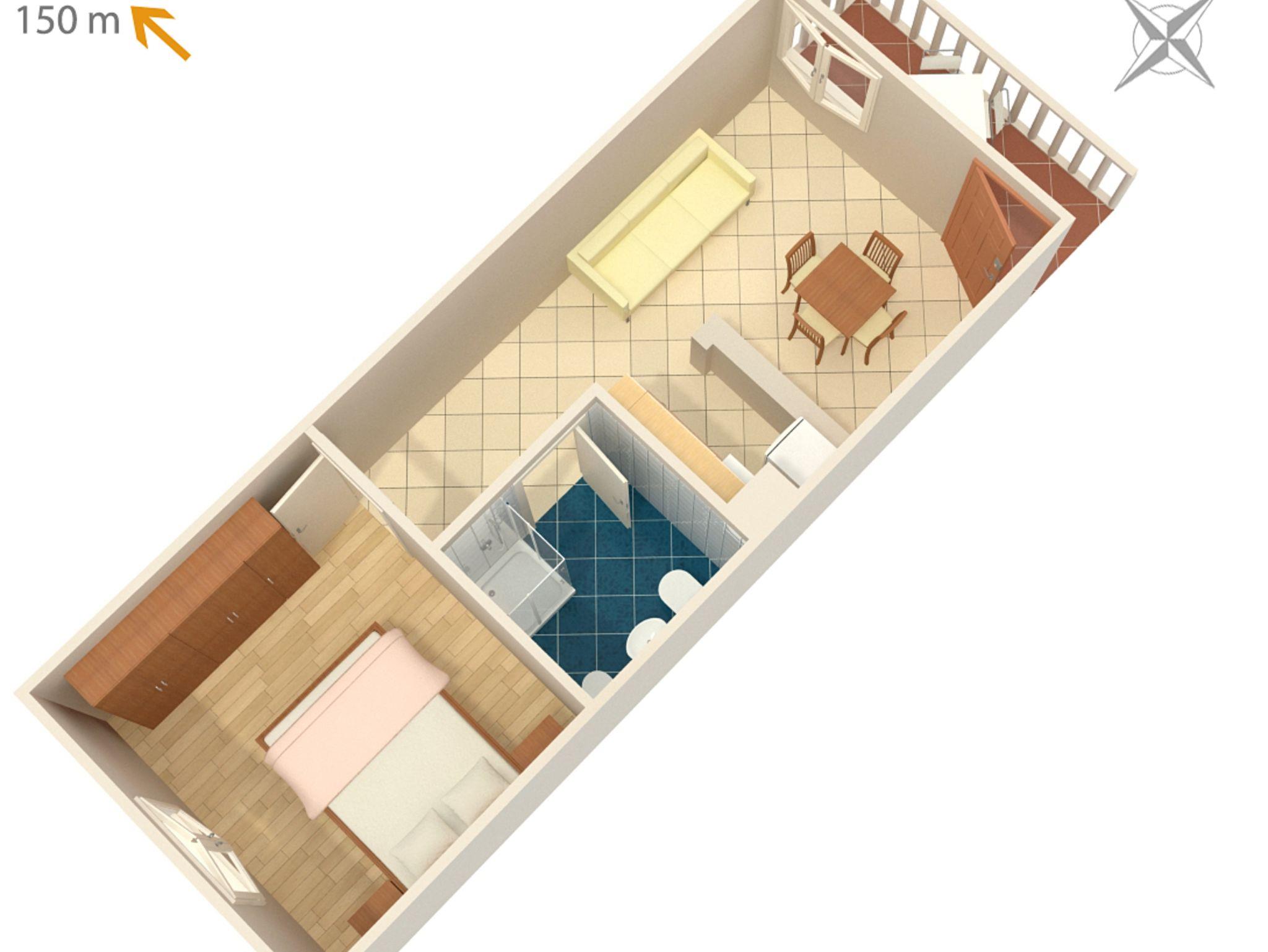 Ferienwohnung bietet Platz für 3 Gäste. Die Betten sind in Schlafzimmern, die es 1 gibt, und in Esszimmer, innerhalb einer Gesamtfläche von 37m2, angeordnet. Die Gäste haben eine eigene Terrasse zur Verfügung, auf der sie in warmen Sommernächten genießen können. Das Apartment bietet Meerblick. Es ist erlaubt, Speisen auf dem Gemeinschafts-Grill vorzubereiten. IM PREIS INBEGRIFFEN: Kurtaxe, Endreinigung, Klimatisierung, Parkplatz, Internet, Bügeleisen, Bügelbrett, Föhn. VERBINDLICHE ZUSÄTZLICHE KOSTEN: Aufzahlung für Kurzaufenthalte (prozentualer Zuschlag pro Nächtigungsanzahl: 30% - 1, 20% - 2, 10% - 3). UNVERBINDLICHE ZUSÄTZLICHE KOSTEN: Zusatzbett (5,00 € pro Nacht). Die Verfügbarkeit zusätzlicher Dienstleistungen in Ihrem reservierten Termin und die Preise derselben (falls nicht aufgeführt) müssen im Voraus überprüft werden. Zusätzliche Dienstleistungen die in der Zahlungsaufforderung nicht aufgeführt sind werden direkt beim Vermieter bezahlt, angenommen der Gast nutzt auch diese.