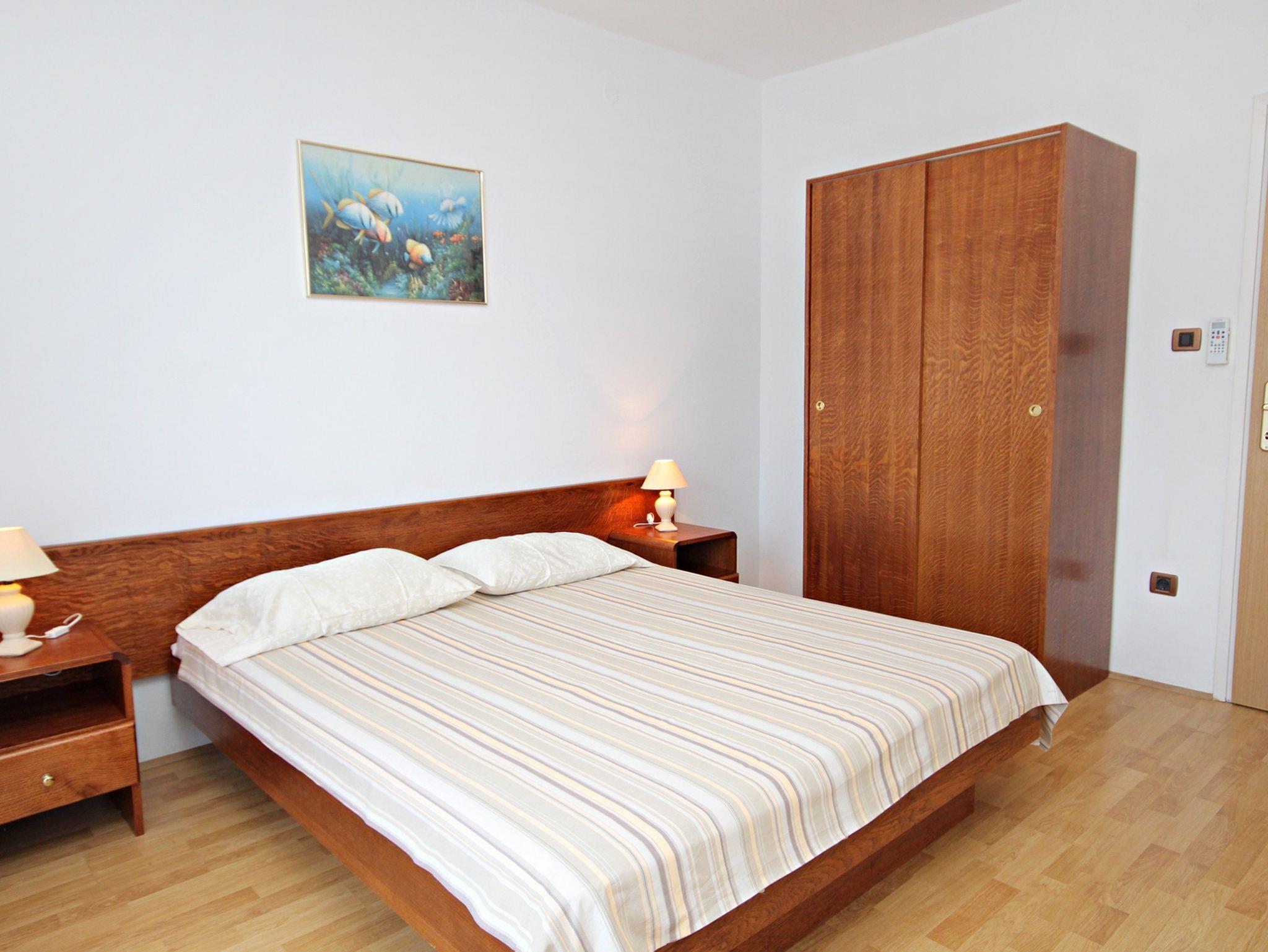 Ferienwohnung bietet Platz für 4 Gäste. Die Betten sind in Schlafzimmern, die es 2 gibt, innerhalb einer Gesamtfläche von 53m2, angeordnet. Die Gäste haben eine eigene Terrasse zur Verfügung, auf der sie in warmen Sommernächten genießen können. Das Apartment bietet Meerblick. Es ist erlaubt, Speisen auf dem Gemeinschafts-Grill vorzubereiten. IM PREIS INBEGRIFFEN: Kurtaxe, Endreinigung, Klimatisierung, Parkplatz, Internet, Kinderbett, tragbarer Grill. VERBINDLICHE ZUSÄTZLICHE KOSTEN: Aufzahlung für Kurzaufenthalte (prozentualer Zuschlag pro Nächtigungsanzahl: 30% - 1, 20% - 2, 10% - 3). Die Verfügbarkeit zusätzlicher Dienstleistungen in Ihrem reservierten Termin und die Preise derselben (falls nicht aufgeführt) müssen im Voraus überprüft werden. Zusätzliche Dienstleistungen die in der Zahlungsaufforderung nicht aufgeführt sind werden direkt beim Vermieter bezahlt, angenommen der Gast nutzt auch diese.
