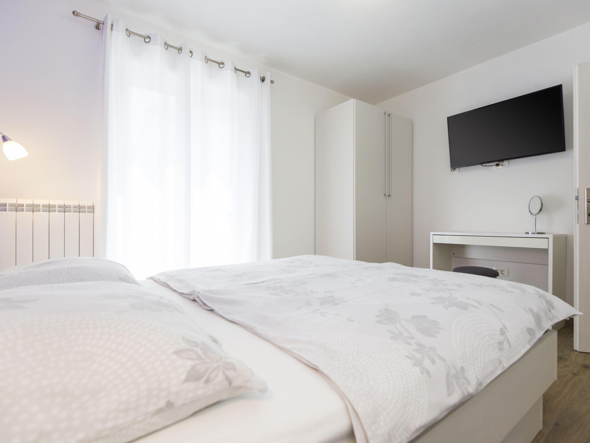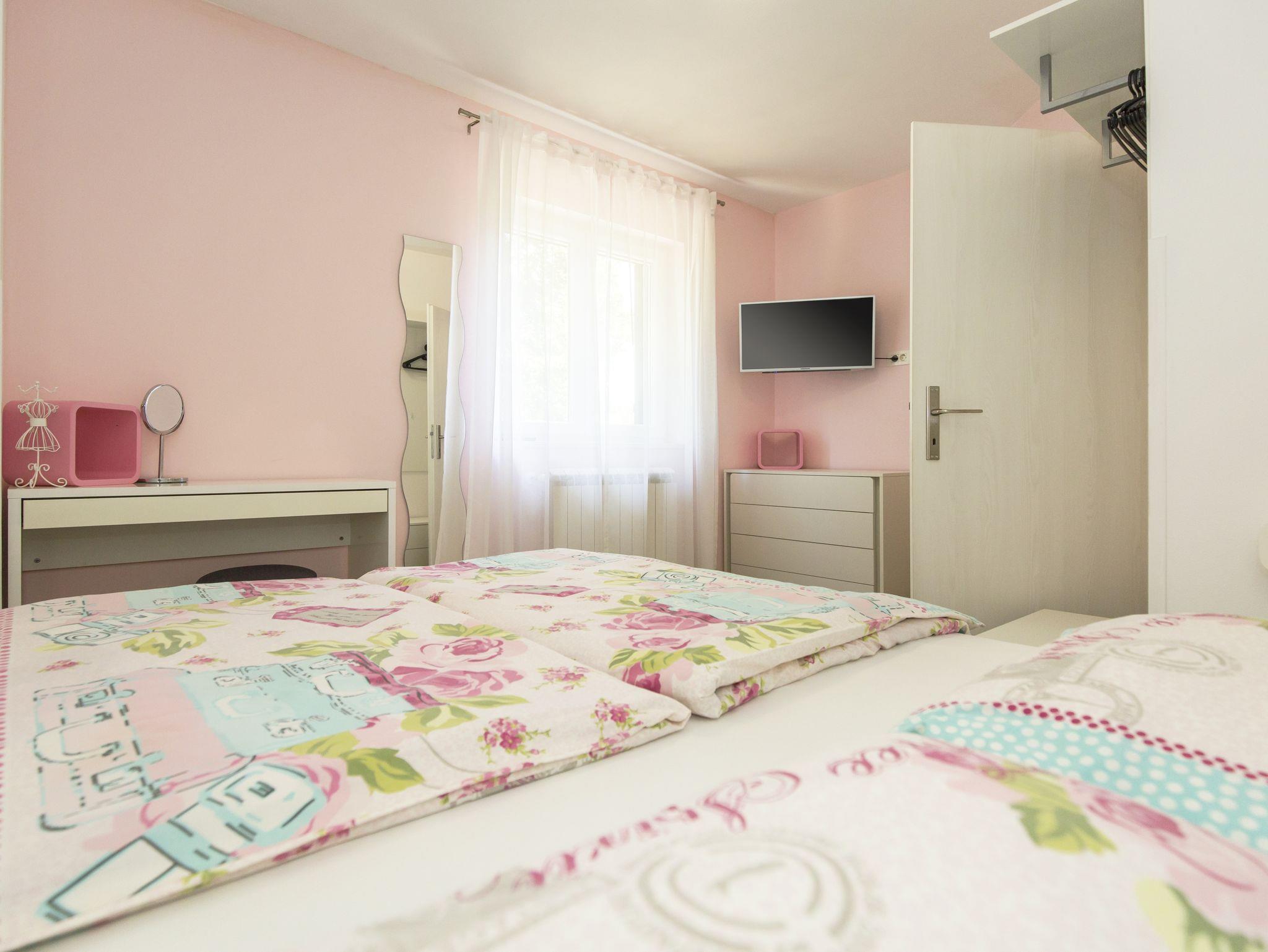Haus bietet Platz für 6 Gäste. Die Betten sind in Schlafzimmern, die es 3 gibt, innerhalb einer Gesamtfläche von 101m2, angeordnet. Die Gäste haben eine eigene Terrasse zur Verfügung, auf der sie in warmen Sommernächten genießen können. Für vollen Genuss und Entspannung gibt es einen privaten Grill für Gäste dieser Unterkunft. Während ihres Aufenthalts können sich Gäste im privaten Schwimmbad entspannen. IM PREIS INBEGRIFFEN: Kurtaxe, Endreinigung, Klimatisierung, Pool, Parkplatz, Internet, Kinderbett, Bügeleisen, Bügelbrett, Föhn. Die Verfügbarkeit zusätzlicher Dienstleistungen in Ihrem reservierten Termin und die Preise derselben (falls nicht aufgeführt) müssen im Voraus überprüft werden. Zusätzliche Dienstleistungen die in der Zahlungsaufforderung nicht aufgeführt sind werden direkt beim Vermieter bezahlt, angenommen der Gast nutzt auch diese. Ermäßigung auf den Grundpreis: Gratistag 14=13 (bei einem Aufenthalt von 14 Tagen oder mehr erhalten Sie einen Gratistag für den Aufenthalt bis 31.12.26).