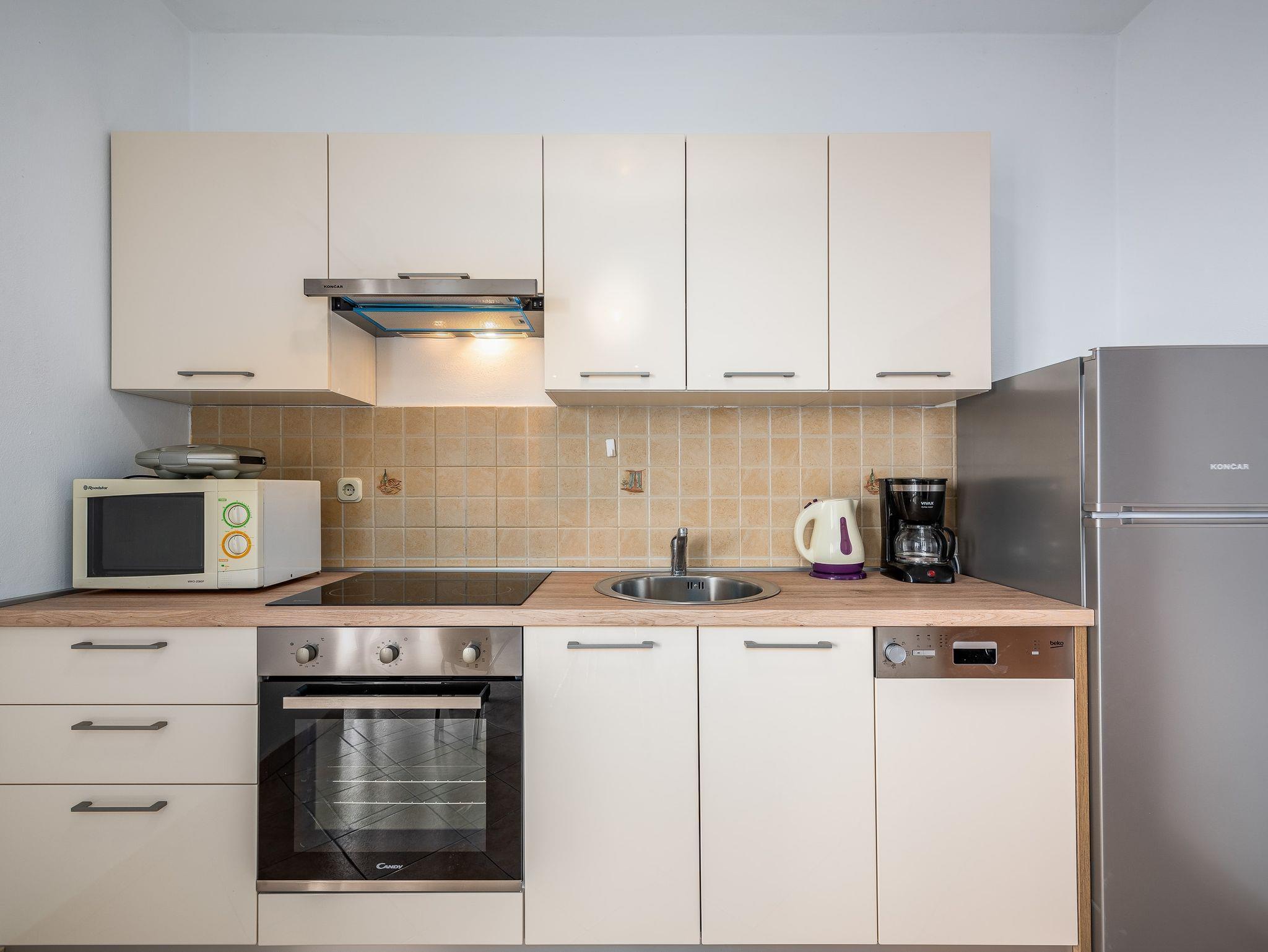Ferienwohnung bietet Platz für 5 Gäste. Die Betten sind in Schlafzimmern, die es 2 gibt, und in Wohnzimmer, innerhalb einer Gesamtfläche von 52m2, angeordnet. Die Gäste haben einen eigenen Balkon zur Verfügung, auf der sie in warmen Sommernächten genießen können. Das Apartment bietet Meerblick. Es ist erlaubt, Speisen auf dem Gemeinschafts-Grill vorzubereiten. Während ihres Aufenthalts können Gäste das gemeinsam zur Nutzung stehende Schwimmbad benutzen. In der Unterkunftseinheit besteht die Möglichkeit des Mitbringens von Haustieren gegen Aufpreis. IM PREIS INBEGRIFFEN: Kurtaxe, Endreinigung, Klimatisierung, Pool, Parkplatz, Internet, Wäschewaschen, Kinderbett, Bügeleisen, Bügelbrett, Föhn. UNVERBINDLICHE ZUSÄTZLICHE KOSTEN: Haustiere (10,00 € pro Nacht), Fahrrad (20,00 € täglich (pro Stück)). Die Verfügbarkeit zusätzlicher Dienstleistungen in Ihrem reservierten Termin und die Preise derselben (falls nicht aufgeführt) müssen im Voraus überprüft werden. Zusätzliche Dienstleistungen die in der Zahlungsaufforderung nicht aufgeführt sind werden direkt beim Vermieter bezahlt, angenommen der Gast nutzt auch diese.