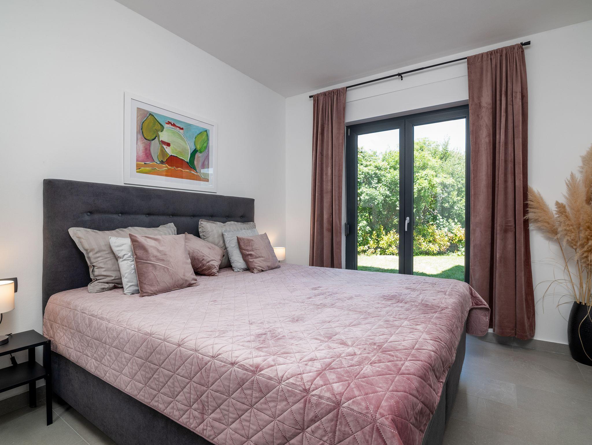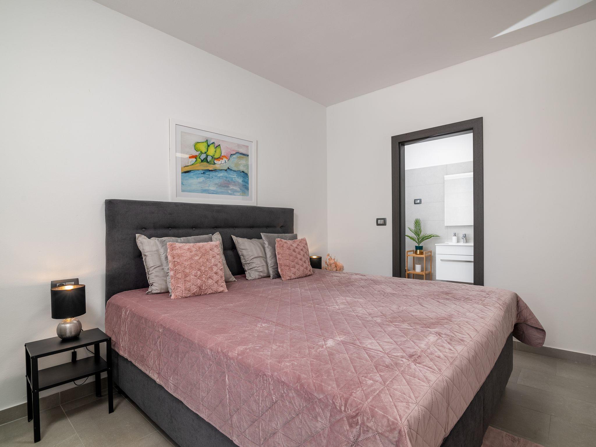 Haus bietet Platz für 8 Gäste. Die Betten sind in Schlafzimmern, die es 4 gibt, innerhalb einer Gesamtfläche von 124m2, angeordnet. Die Gäste haben eine eigene Terrasse zur Verfügung, auf der sie in warmen Sommernächten genießen können. Für vollen Genuss und Entspannung gibt es einen privaten Grill für Gäste dieser Unterkunft. Während ihres Aufenthalts können sich Gäste im privaten Schwimmbad entspannen. IM PREIS INBEGRIFFEN: Kurtaxe, Endreinigung, Klimatisierung, Pool, Parkplatz, Internet, Bügeleisen, Bügelbrett, Föhn, Liegestühle. Die Verfügbarkeit zusätzlicher Dienstleistungen in Ihrem reservierten Termin und die Preise derselben (falls nicht aufgeführt) müssen im Voraus überprüft werden. Zusätzliche Dienstleistungen die in der Zahlungsaufforderung nicht aufgeführt sind werden direkt beim Vermieter bezahlt, angenommen der Gast nutzt auch diese. Ermäßigung auf den Grundpreis: Gratistag 14=13 (bei einem Aufenthalt von 14 Tagen oder mehr erhalten Sie einen Gratistag für den Aufenthalt bis 31.12.26).