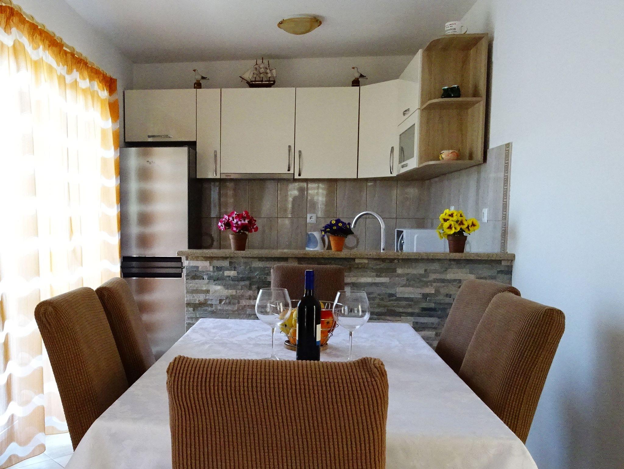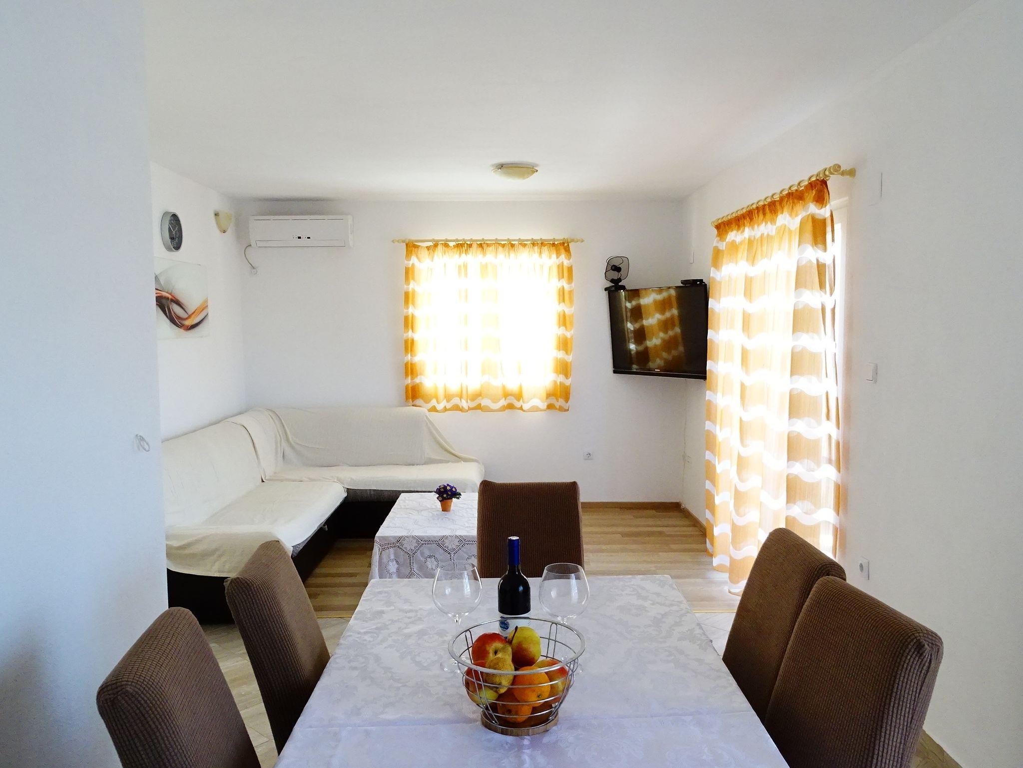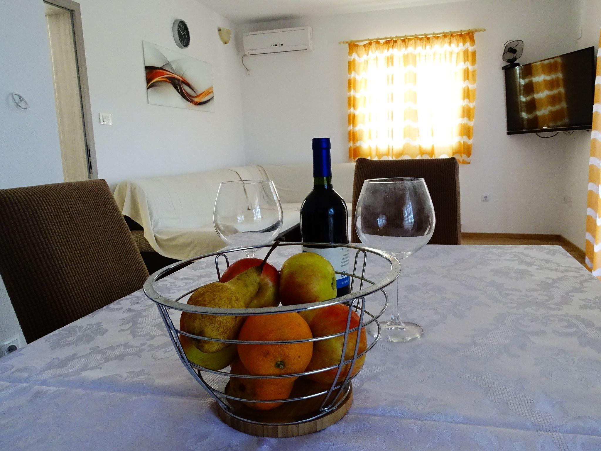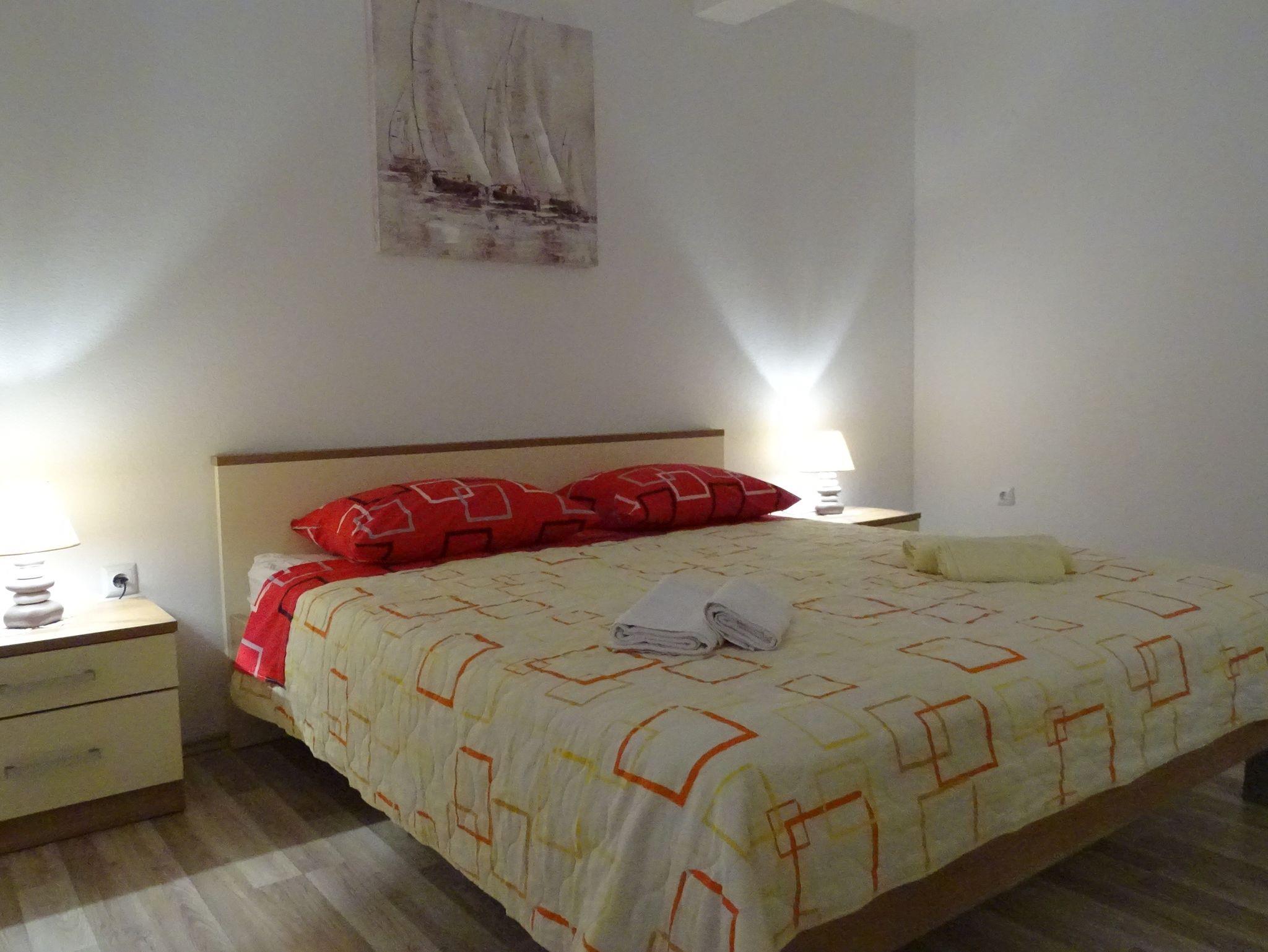 Ferienwohnung bietet Platz für 6 Gäste. Die Betten sind in Schlafzimmern, die es 2 gibt, und in Wohnzimmer, innerhalb einer Gesamtfläche von 46m2, angeordnet. Die Gäste haben einen eigenen Balkon zur Verfügung, auf der sie in warmen Sommernächten genießen können. Das Apartment bietet Meerblick. IM PREIS INBEGRIFFEN: Kurtaxe, Endreinigung, Klimatisierung, Parkplatz, Internet, Kinderbett, Bügeleisen, Föhn. VERBINDLICHE ZUSÄTZLICHE KOSTEN: Aufzahlung für Kurzaufenthalte (prozentualer Zuschlag pro Nächtigungsanzahl: 30% - 1, 20% - 2, 10% - 3). UNVERBINDLICHE ZUSÄTZLICHE KOSTEN: Wäschewaschen (8,00 € Waschen), Zusatzbett (10,00 € pro Nacht). Die Verfügbarkeit zusätzlicher Dienstleistungen in Ihrem reservierten Termin und die Preise derselben (falls nicht aufgeführt) müssen im Voraus überprüft werden. Zusätzliche Dienstleistungen die in der Zahlungsaufforderung nicht aufgeführt sind werden direkt beim Vermieter bezahlt, angenommen der Gast nutzt auch diese.