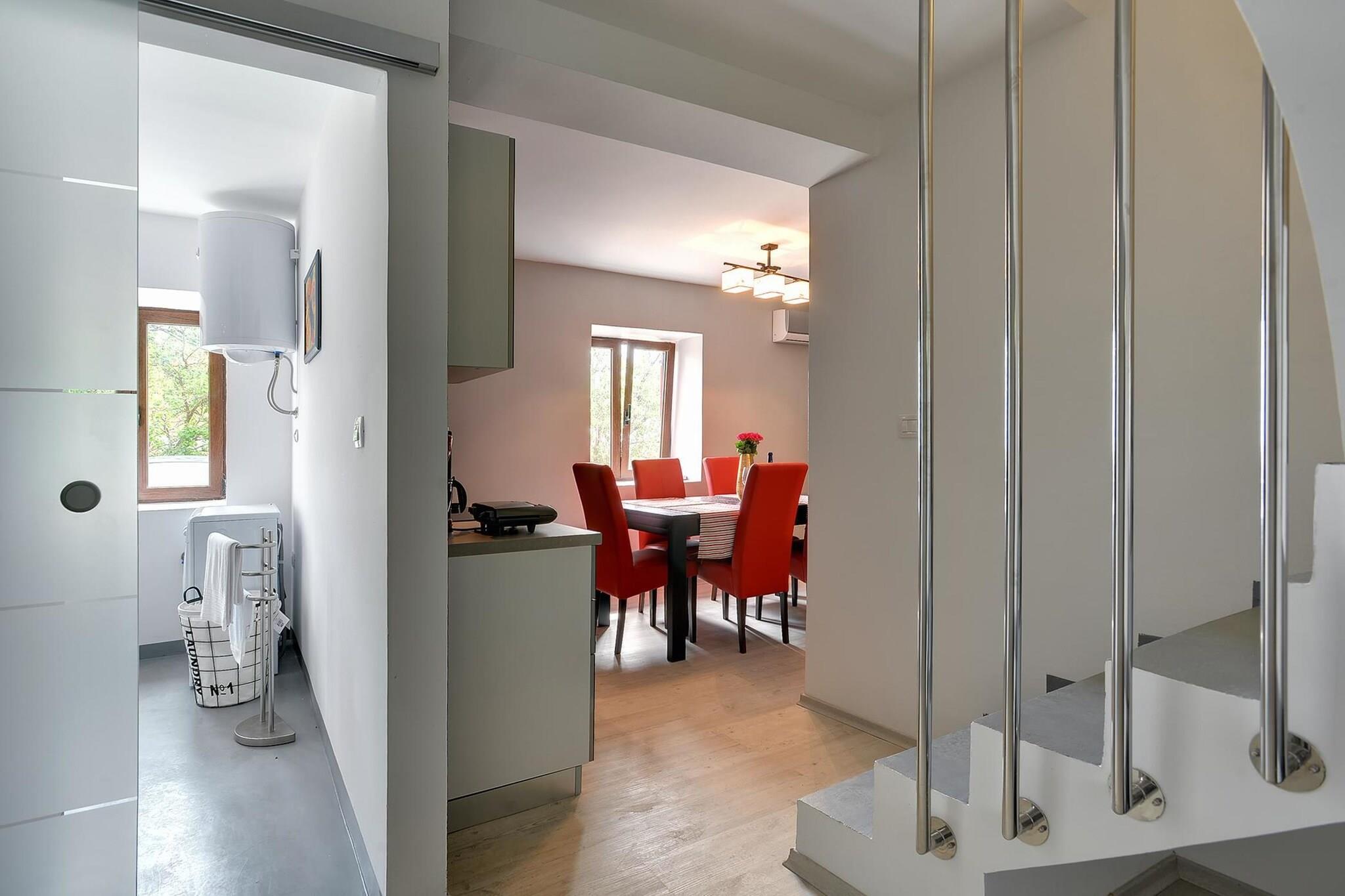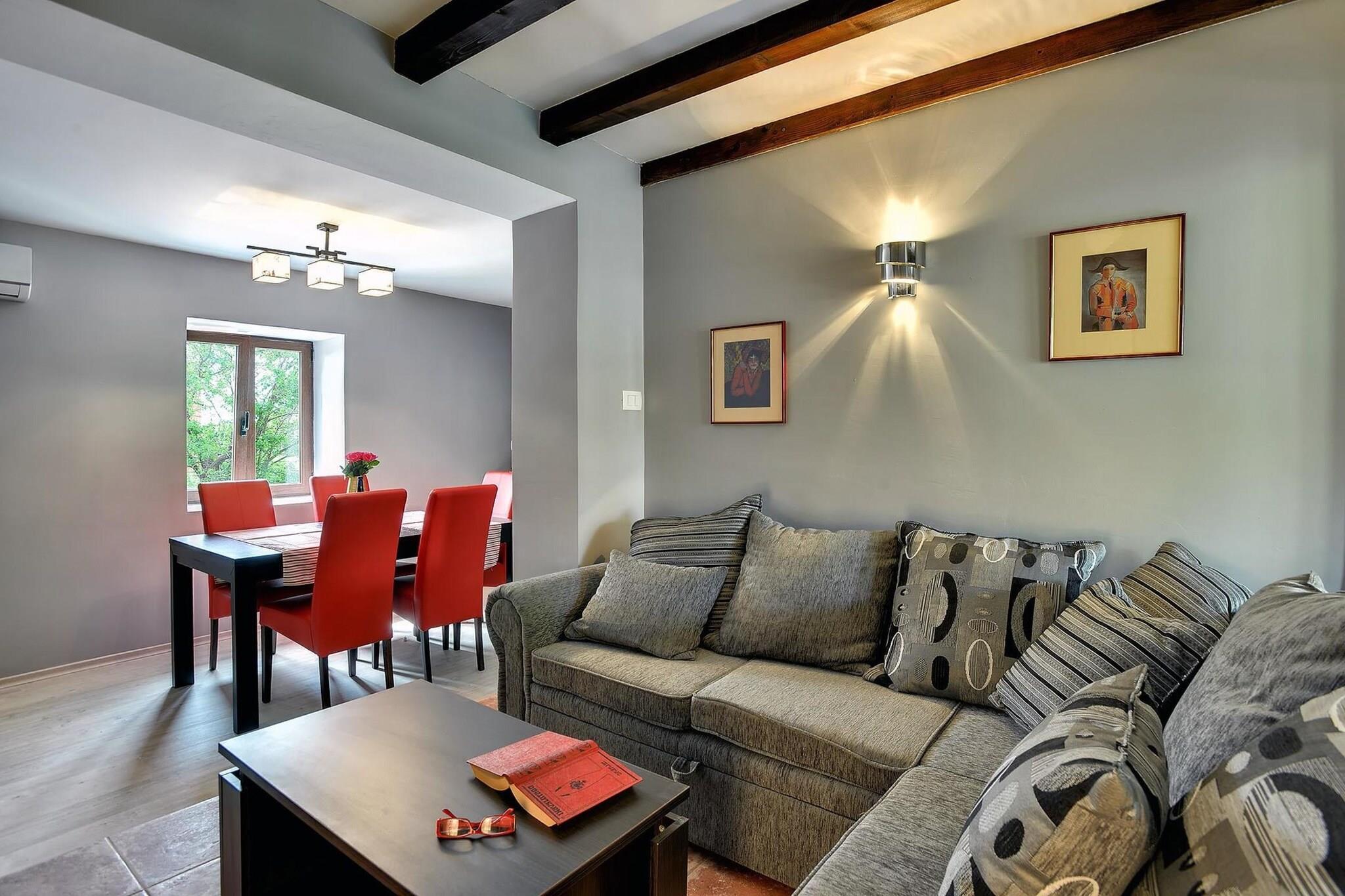 Dette hyggelige feriehus med privat pool ligger i gåafstand fra centrum af Ližnjan og stranden. Et glimrende valg for en afslappende ferie med familie eller venner! I den smukke lukkede middelhavshave med prydplanter, oliventræer og oleander ligger swimmingpoolen (21 m²) med et spabadområde. Du kan læse en god bog på din liggestol og nyde den kroatiske sol! Derudover har du en smuk stengrill og en overdækket terrasse med spisebord til din rådighed, hvor du kan nyde et godt måltid sammen. Interiøret er velholdt. I stueetagen er der en stue med spiseplads og et veludstyret åbent køkken. På første sal finder du to soveværelser med aircondition og to badeværelser.