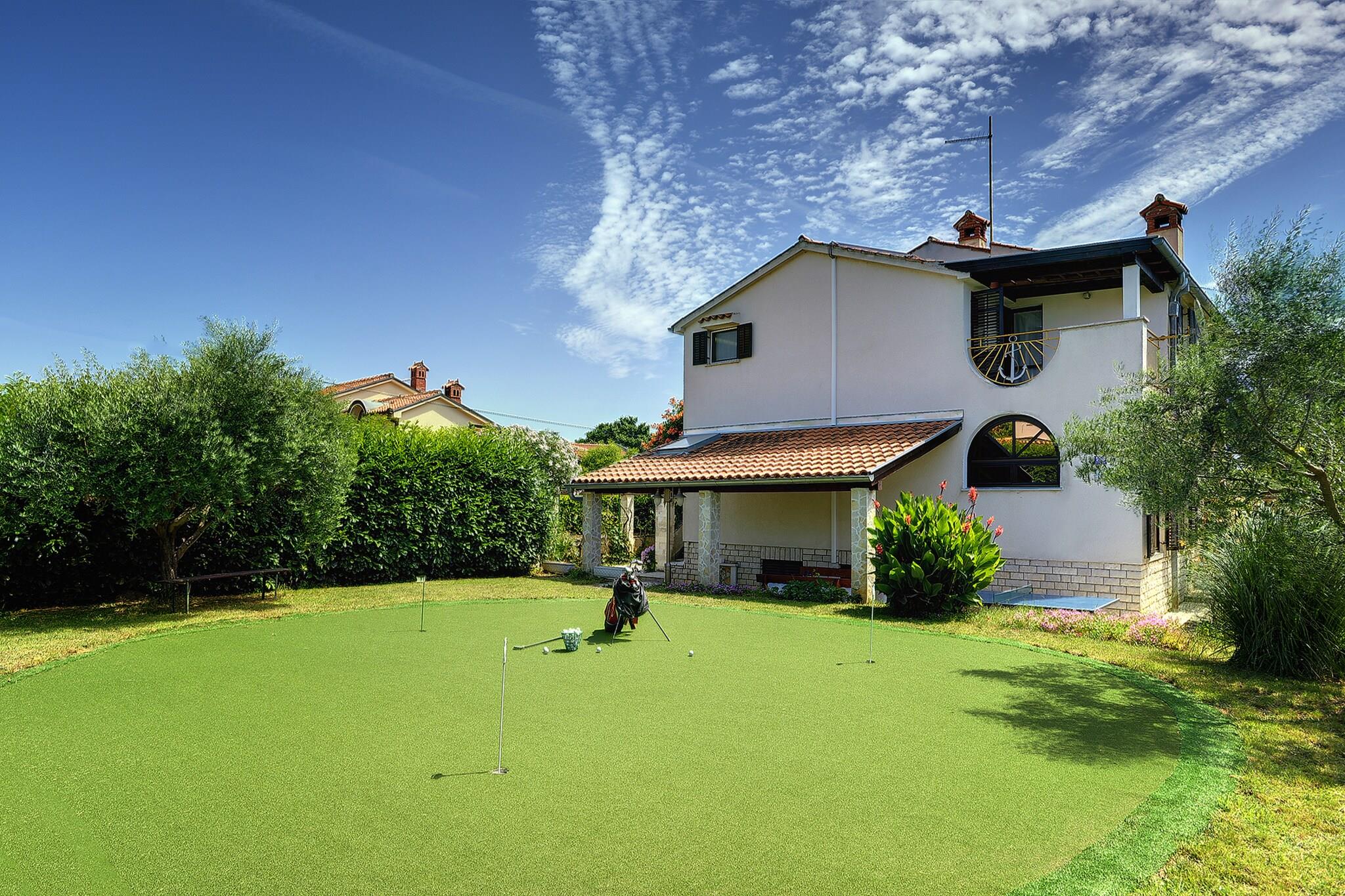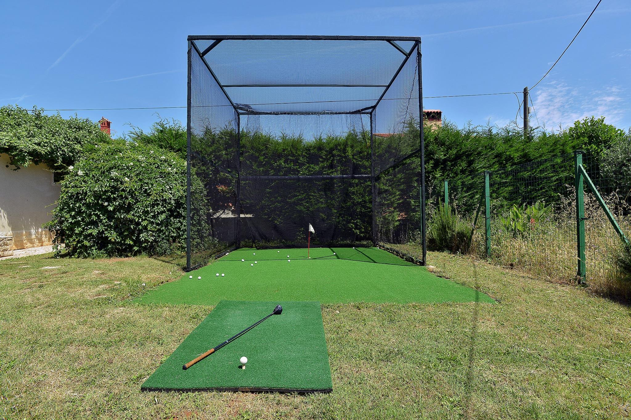 Villa Golf House er en villa beliggende i landsbyen Ližnjan, kun 1,5 km fra stranden. Der er masser at se og opleve i det omkringliggende område. Byen Pula, 12 km længere ad, er bestemt et besøg værd. Du kan også gå til byen kendt som "Istriens perle": Rovinj (47 km). Vandre gennem den gamle bydel, der ligger på en halvø. Villa Golf House er særligt velegnet til golfentusiaster, fordi der er en putting green og en golfpraktik! I den rummelige lukkede have kan du slappe af på din liggestol efter en varm dag og tage en forfriskende dukkert i swimmingpoolen. vidunderligt glas vin på den overdækkede terrasse og tænd grillen! Layouten er pæne og ryddelige. I stueetagen finder du et opholdsstue med hvide opholdsområde og spisebord, åbent køkken, soveværelse og badeværelse. På første sal er der fire soveværelser og et badeværelse.