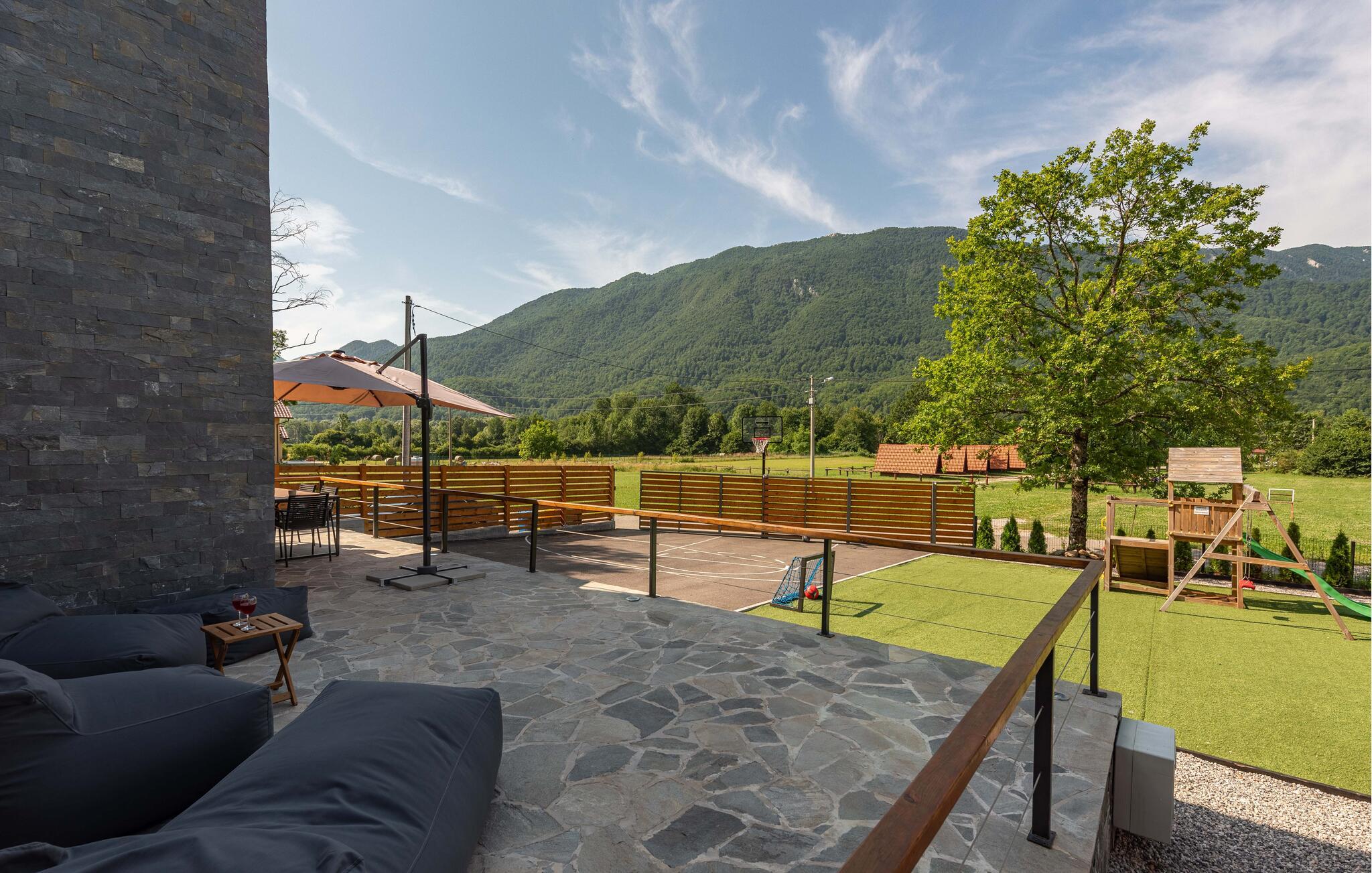 På de varme dage, og de bliver mange, kan I se frem til mange skønne timer i solen. For børnene er der mange gode legeredskaber, herunder deres eget lille legetårn, at boltre sig på. Måske I skal udfordre familien til en basketball-kamp? Ud på aftenen er der intet, der slår en tur i spabadet under stjernerne med et godt glas vin, mens I lægger planer for dagen, der kommer.
