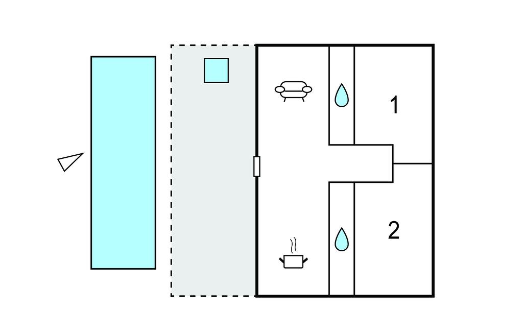 Opholdsstue/køkken 30m2 - 2 Sovepladser. (Sofa, madras eller lignende).