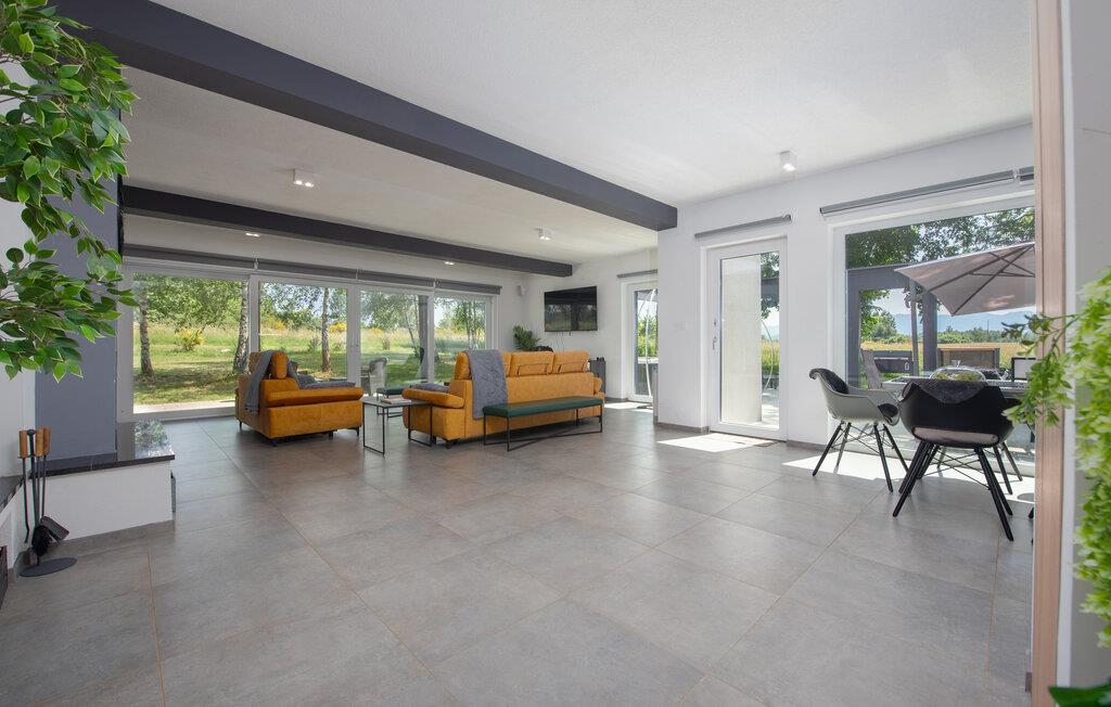 Velkommen til dette moderne hus, der har en herlig beliggenhed i et smukt landskab. Her kan I glæde jer til at nyde en vidunderlig udsigt og mange skønne stunder med familien. Møblerne er komfortable og venter bare på, at I skal slappe af i dem. Der er lagt op til mange hyggelige fælles måltider med en vidunderlig udsigt, og om aftenen skal I bare smide fødderne op i sofaerne ved den den knitrende pejs.