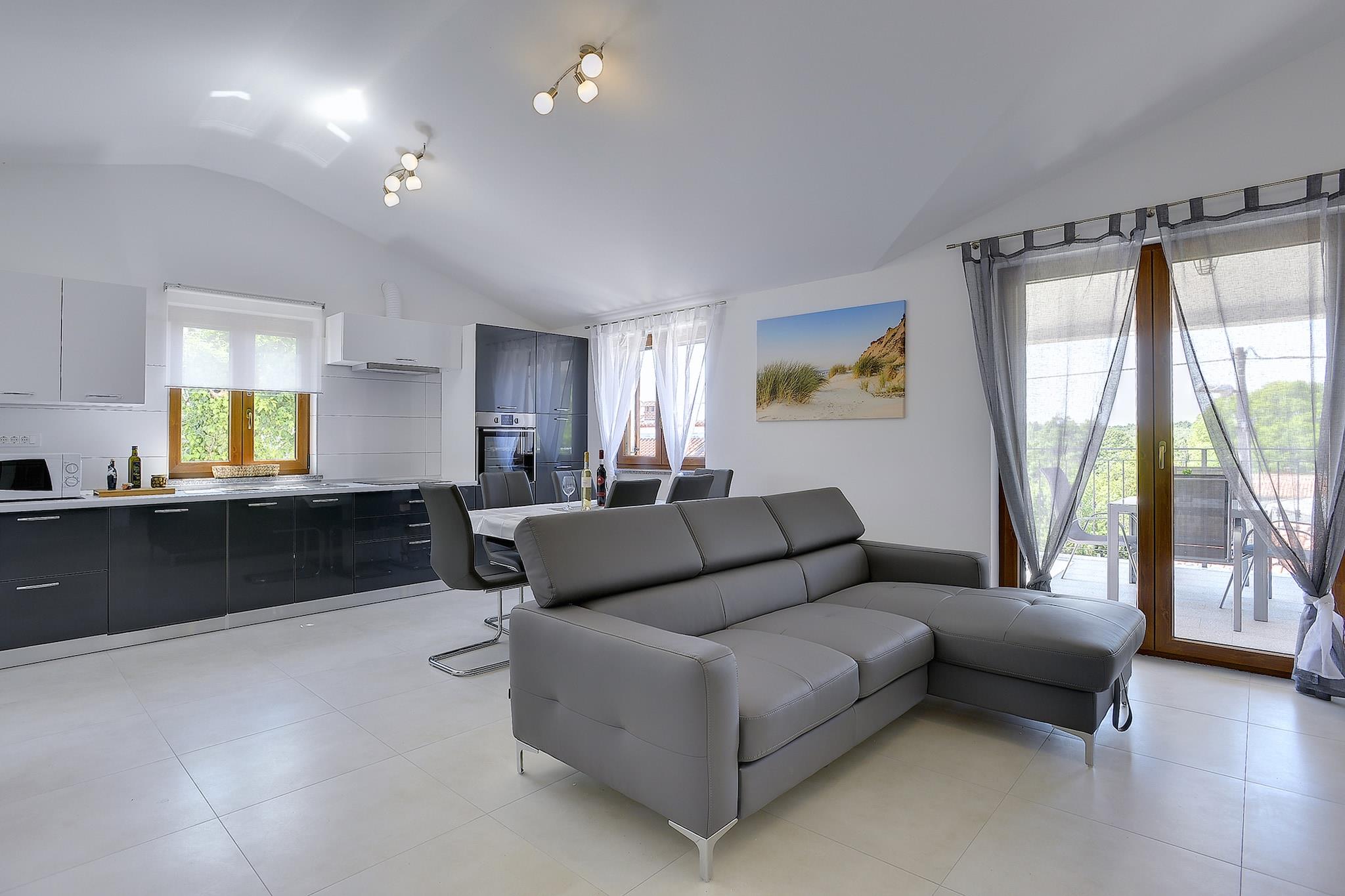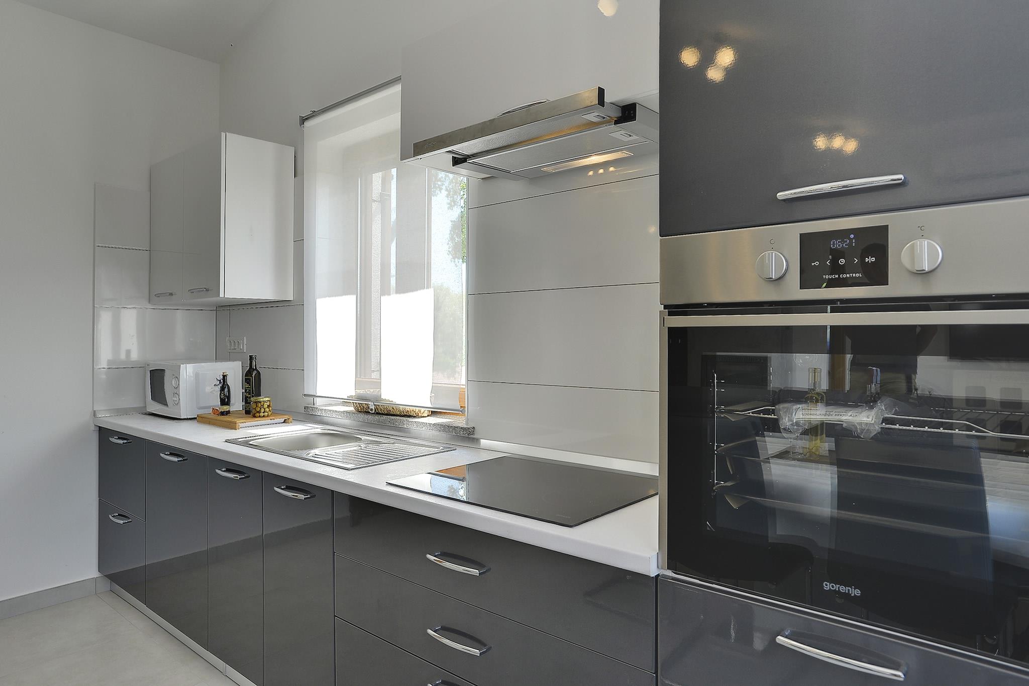Dette sommerhus med swimmingpool ligger i hjertet af Istrien nær byen Pazin. Det er det perfekte sted at slappe helt af, men også en god startsted for besøg i Porec og Rovinj. De smukke strande langs den vestlige kyst er kun 40 minutters kørsel væk. Du vil optage første sal i dette uberørte feriehus, der kan prale af en have med en rummelig, solrig gårdhave, en privat swimmingpool, liggestole, et træbord med bænke og en parasol. Huset består af en stue med opholdsområde, åbent køkken med spisebord, separat toilet og to soveværelser med ensuite badeværelser. Der er også en overdækket altan, hvor du kan nyde et fint glas vin i løbet af sommerkveldene.