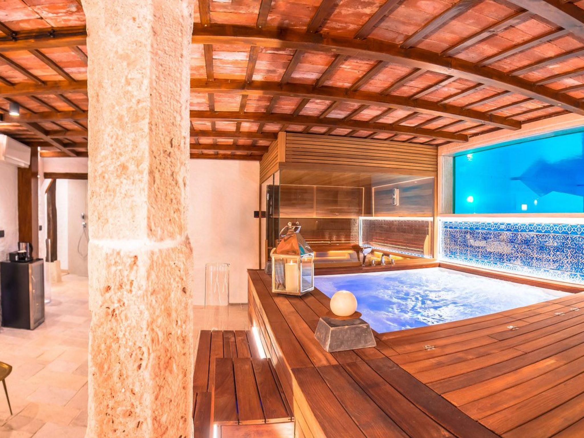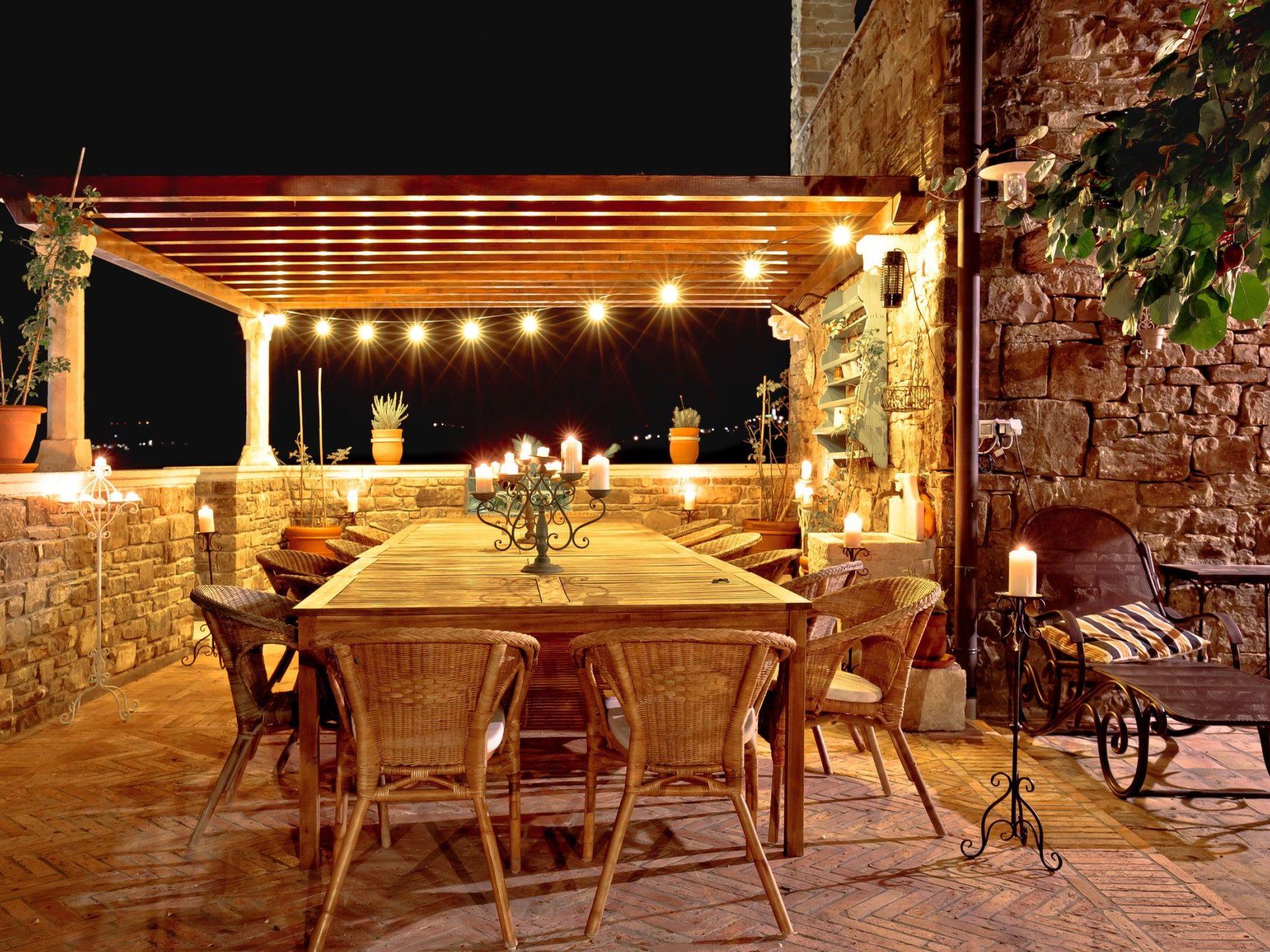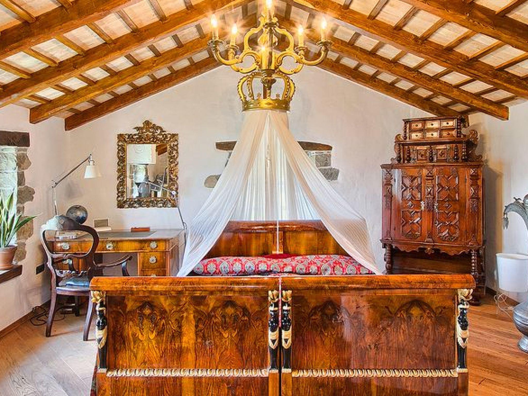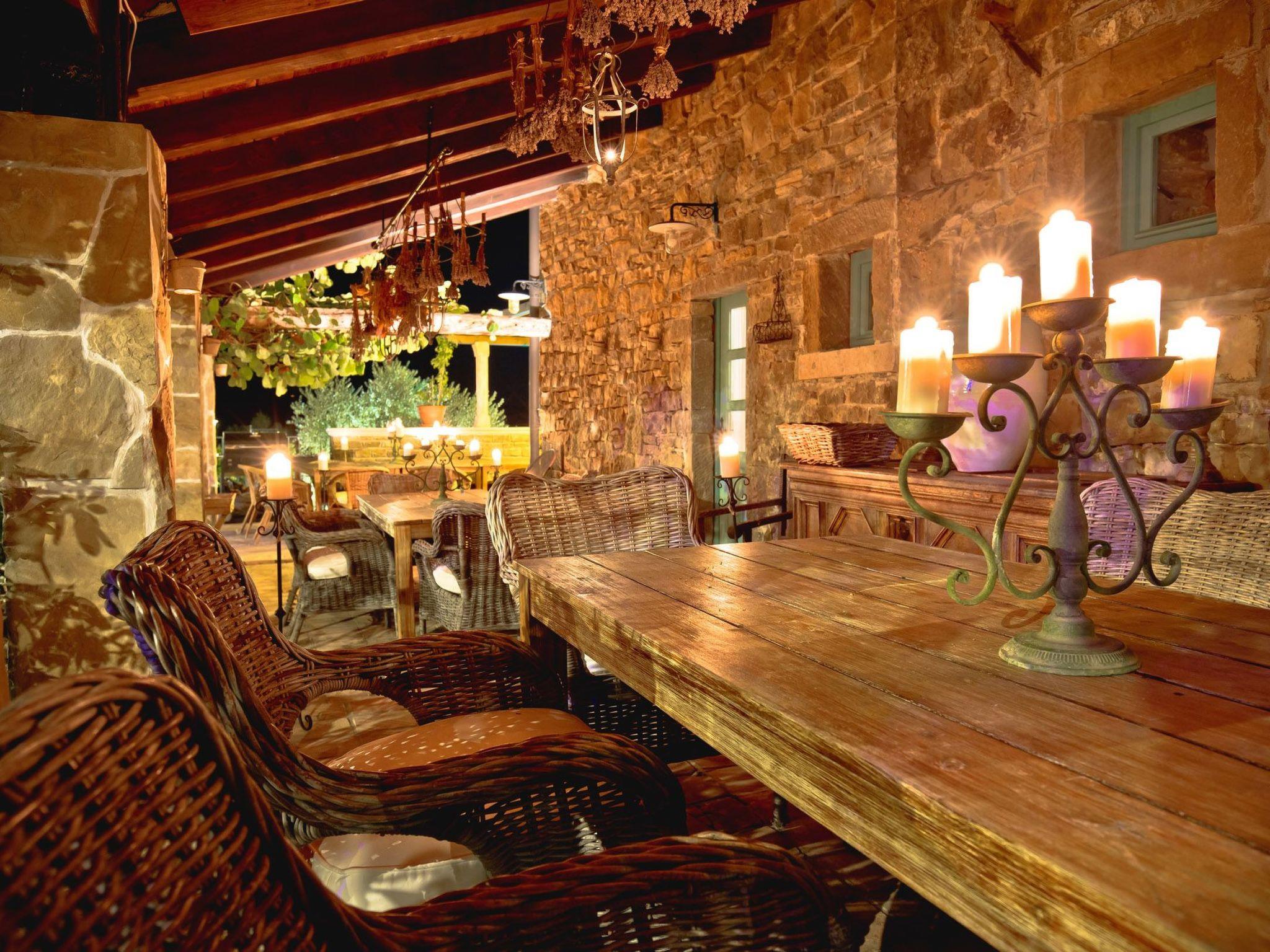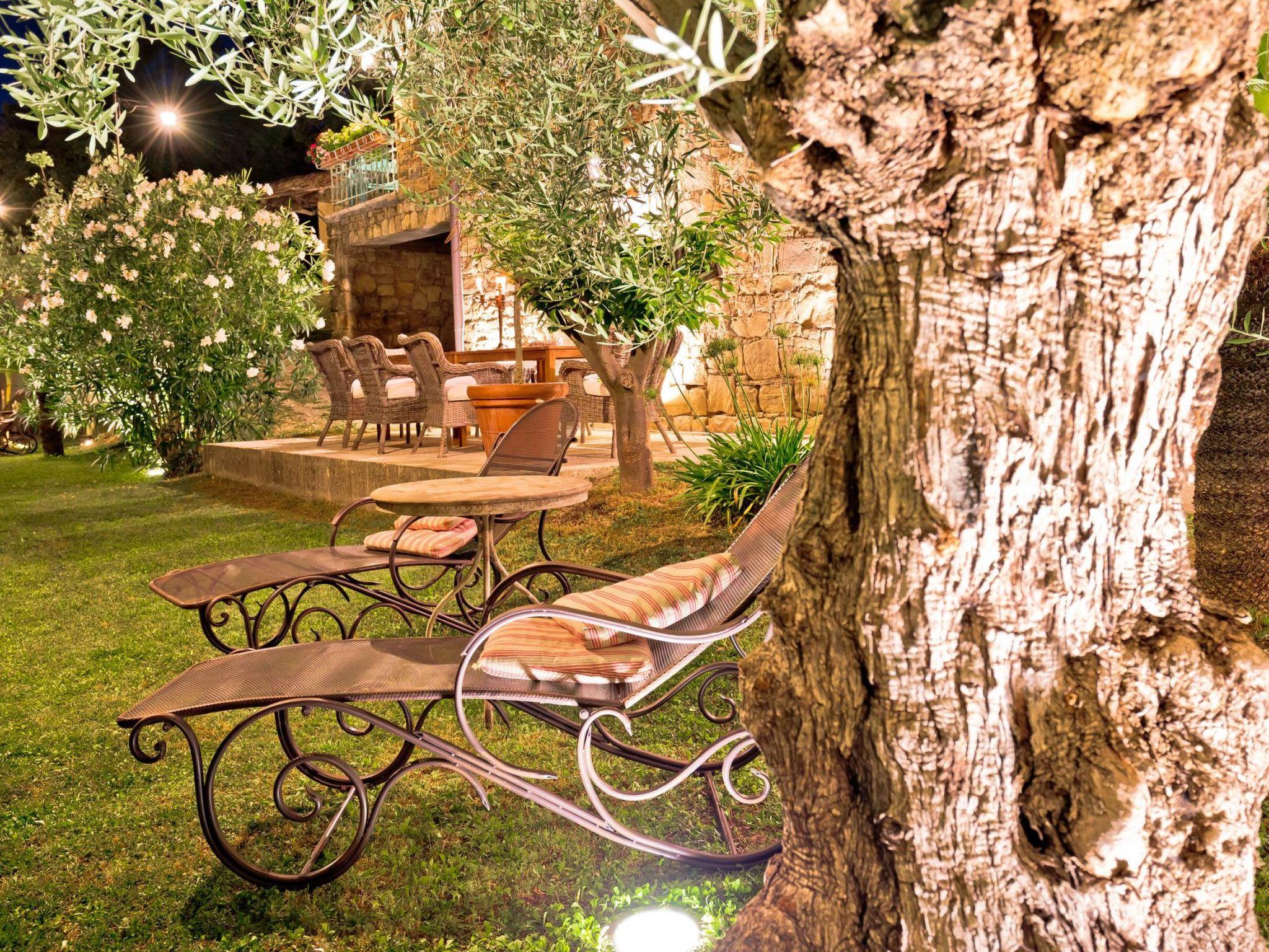 The authentic, traditional stone house from the year 1800 was completely and carefully renovated just recently in 2013 and equipped with modern amenities accordingly for a pleasant and unforgettable stay. The three floors of the air-conditioned (cool/warm) holiday villa provide a total of 350m² of living space, consisting of a spacious living and dining room with a highly modern, fully-equipped kitchen, six bedrooms, four light bathrooms and a separate guest toilet. All the rooms are highlighted by original wooden ceilings and authentic stone walls, exuding a rustic and cosy country house atmosphere, enhanced even further by the antique, solid wood furniture. The ground floor is the living area with a spacious corner and three-seater sofa, two matching armchairs, a wide flatscreen TV (cable TV, Smart TV and a USB port)) mounted to the wall, a DVD and CD player, and a stereo system. On cooler evenings you can gather around the large open fireplace set into the wall, while the dining table with eight chairs right next to it invites you to enjoy leisurely meals together. The open kitchen has a dishwasher, a ceramic hob with an elegant extractor fan, an oven, a fridge with a freezer compartment, toaster, kettle and coffee machine. The ground floor also has two of the spacious and thoughtfully decorated six bedrooms, which both have two single beds measuring 90 x 200cm that can also be joined together as a double bed, and a bathroom with a shower. The separate guest toilet provides additional convenience. Wide stairs lead to the first floor with two further bedrooms, each with a double bed measuring 180 x 200cm, which share a bathroom that has a bath with a shower attachment, a large washbasin and wall mirror, a bidet and a toilet. Other stairs lead to the second floor with a bedroom with a double bed (180 x 200cm) and the sixth bedroom with two single beds (90 x 200cm) that can also be joined together and with direct access to its own balcony with garden furniture, affording an extensive panoramic view over the hilly landscape. Both bathrooms have a spacious shower cubicle, a washbasin and a wall mirror, a hairdryer and a toilet. Two cots and a washing machine are available and there is free and reliable wireless Internet access in the villa.