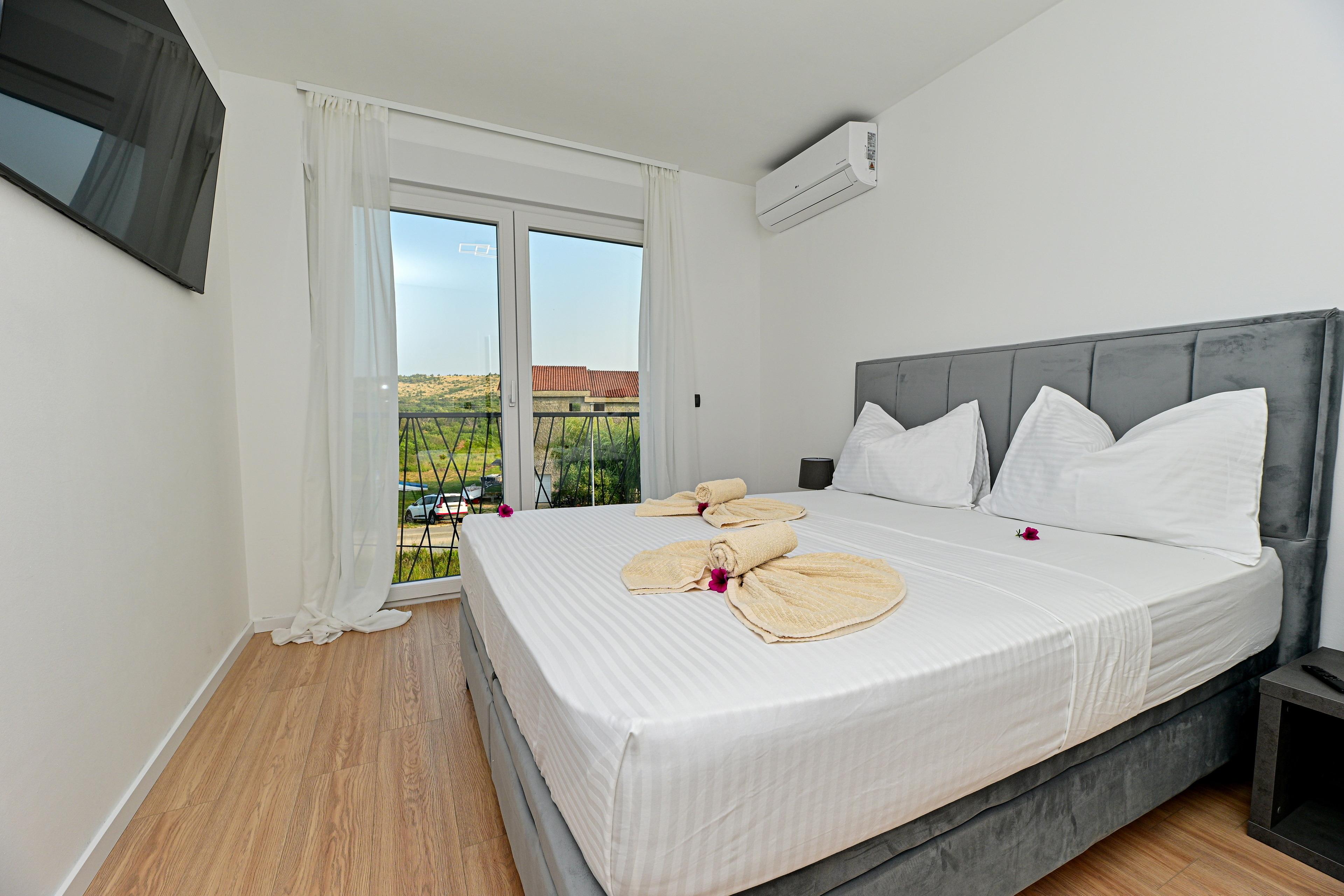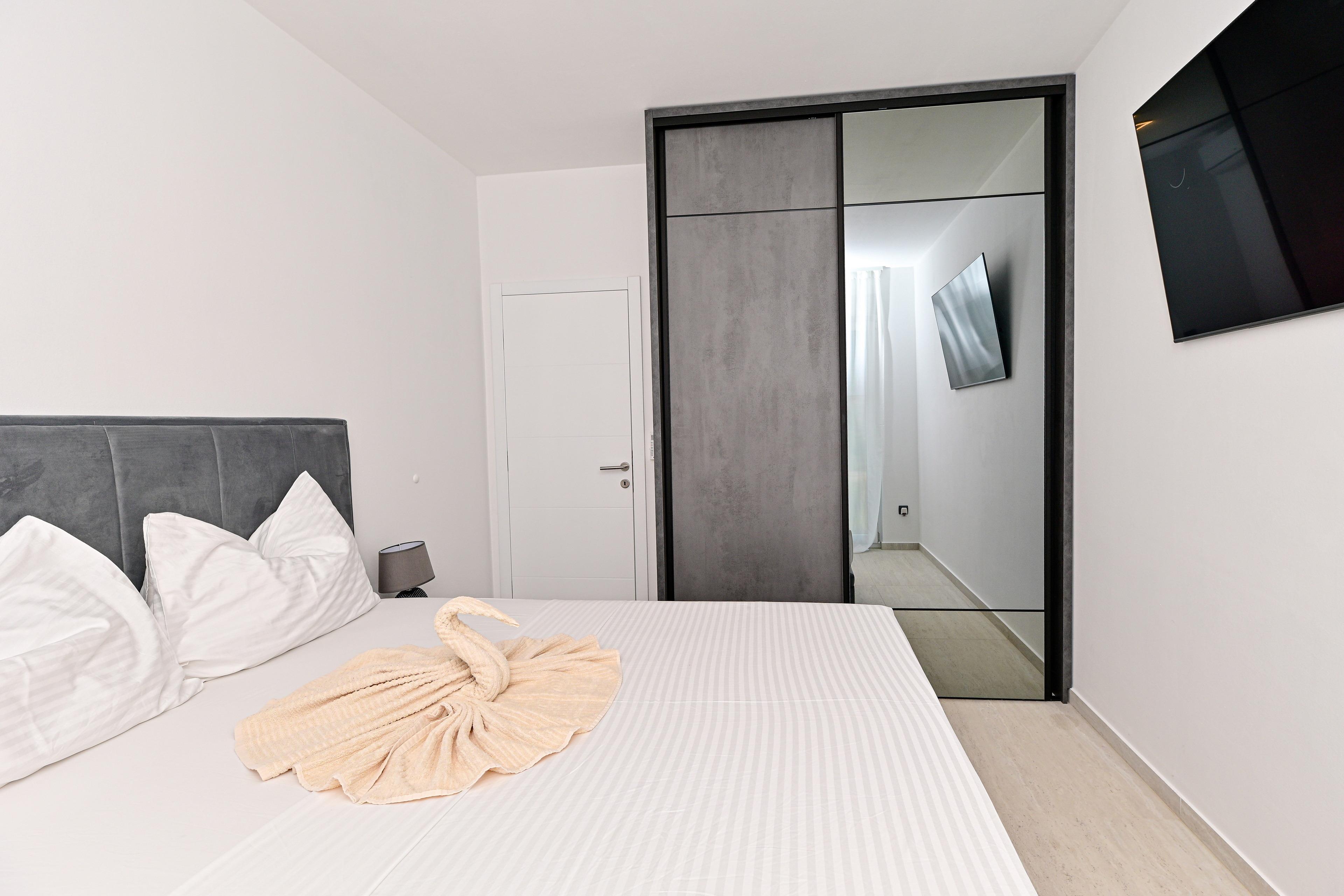 Jedes Schlafzimmer verfügt über einen 55-Zoll-4K-Smart-TV.
