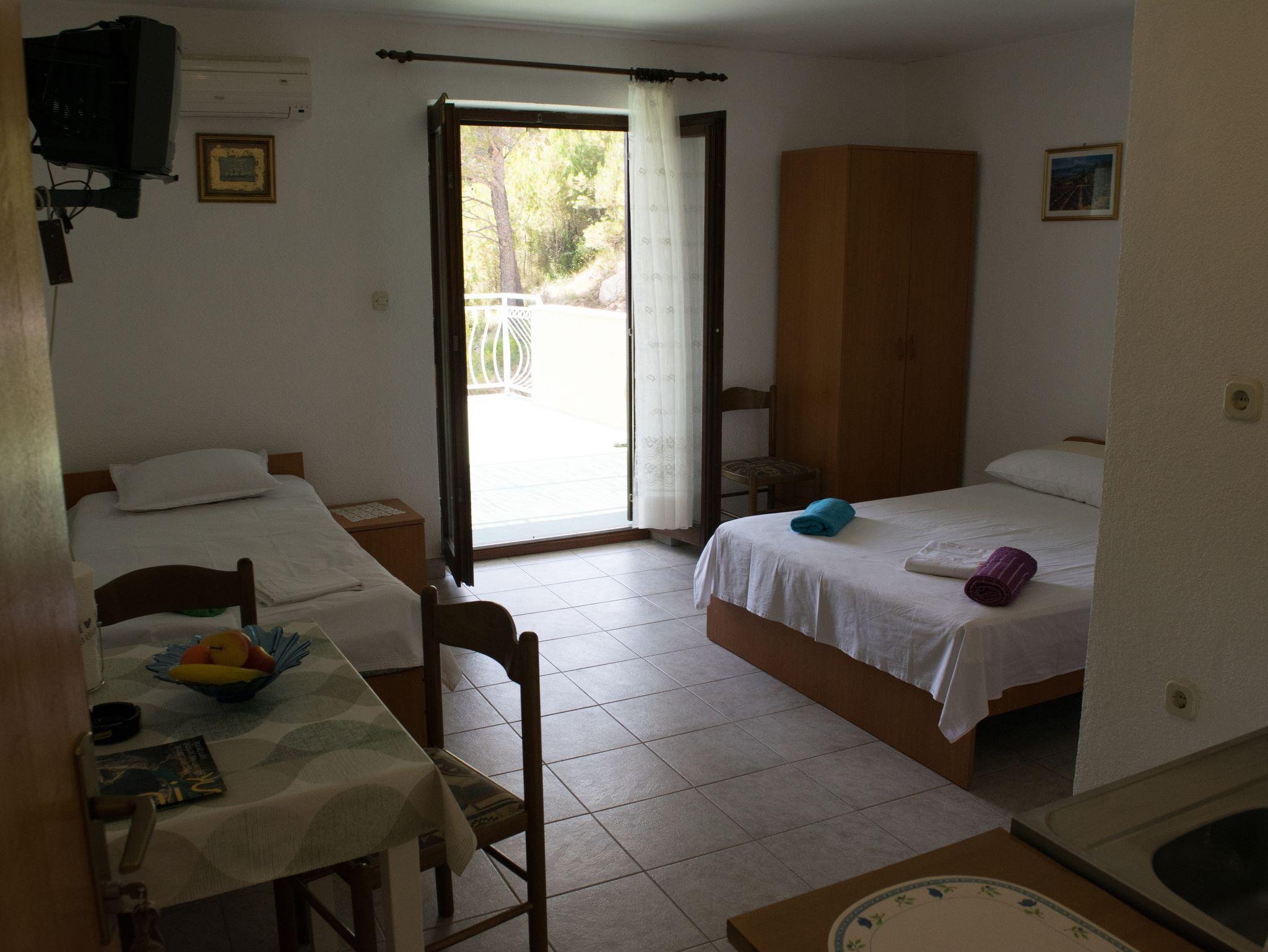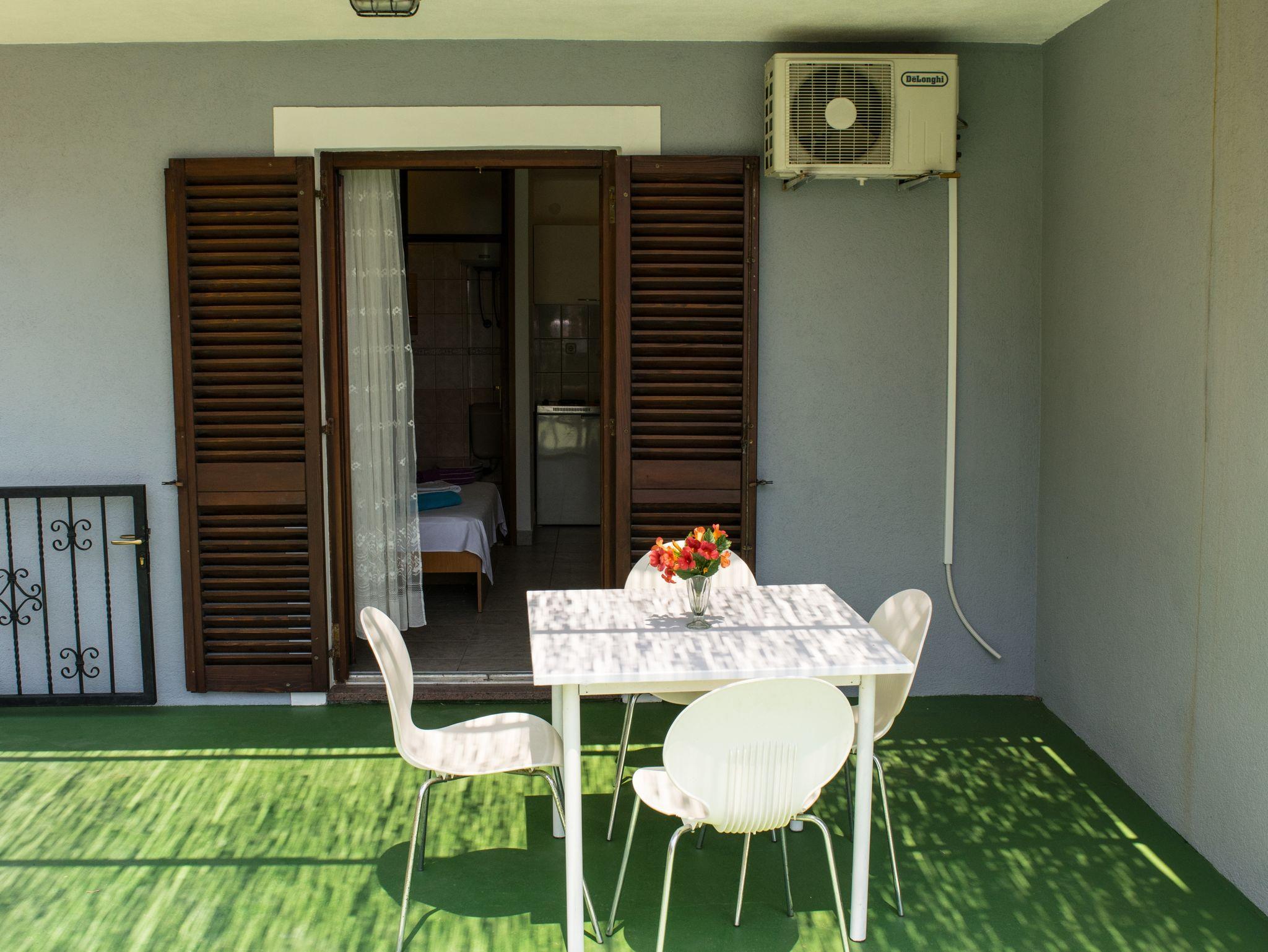 Studio bietet Platz für 3 Gäste. Die Betten sind in Schlafzimmern, die es 1 gibt, innerhalb einer Gesamtfläche von 19m2, angeordnet. Die Gäste haben eine eigene Terrasse zur Verfügung, auf der sie in warmen Sommernächten genießen können. Das Studio-Apartment bietet Meerblick. Es ist erlaubt, Speisen auf dem Gemeinschafts-Grill vorzubereiten. In der Unterkunftseinheit besteht die Möglichkeit des Mitbringens von Haustieren gegen Aufpreis. IM PREIS INBEGRIFFEN: Kurtaxe, Endreinigung, Klimatisierung, Parkplatz, Internet, Zusatzbett, Bügeleisen, Bügelbrett. VERBINDLICHE ZUSÄTZLICHE KOSTEN: Aufzahlung für Kurzaufenthalte (prozentualer Zuschlag pro Nächtigungsanzahl: 30% - 1, 20% - 2, 10% - 3). UNVERBINDLICHE ZUSÄTZLICHE KOSTEN: Haustiere (5,00 € pro Nacht). Die Verfügbarkeit zusätzlicher Dienstleistungen in Ihrem reservierten Termin und die Preise derselben (falls nicht aufgeführt) müssen im Voraus überprüft werden. Zusätzliche Dienstleistungen die in der Zahlungsaufforderung nicht aufgeführt sind werden direkt beim Vermieter bezahlt, angenommen der Gast nutzt auch diese.