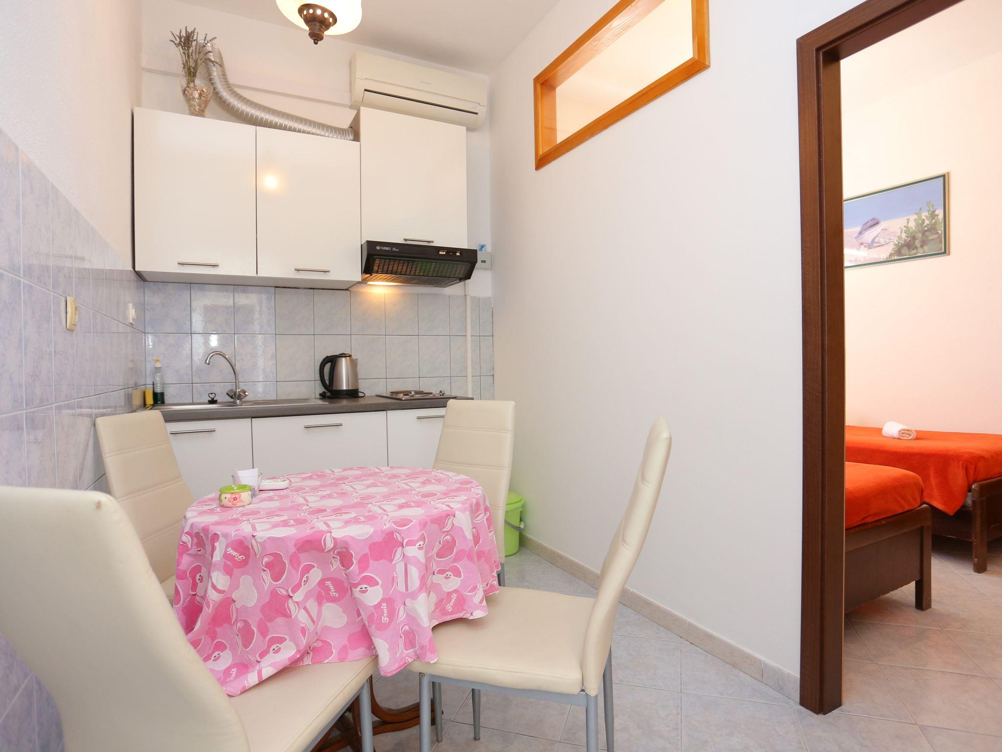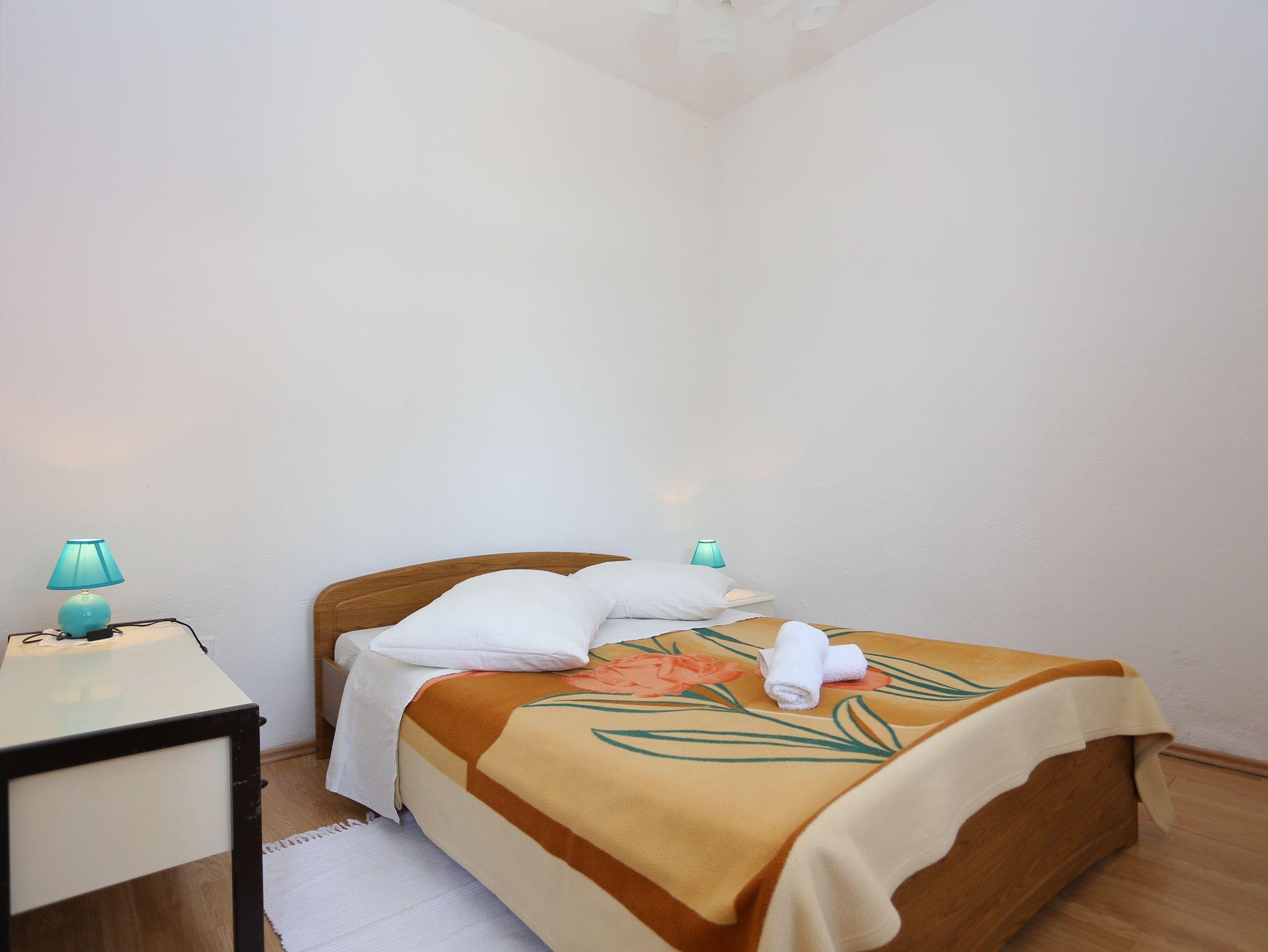 Ferienwohnung bietet Platz für 4 Gäste. Die Betten sind in Schlafzimmern, die es 2 gibt, innerhalb einer Gesamtfläche von 29m2, angeordnet. Die Gäste haben eine eigene Terrasse zur Verfügung, auf der sie in warmen Sommernächten genießen können. Das Apartment bietet Meerblick. Es ist erlaubt, Speisen auf dem Gemeinschafts-Grill vorzubereiten. In der Unterkunftseinheit besteht die Möglichkeit des Mitbringens von Haustieren gegen Aufpreis. IM PREIS INBEGRIFFEN: Kurtaxe, Endreinigung, Klimatisierung, Parkplatz, Internet, Kinderbett, Bügeleisen, Bügelbrett, Föhn. VERBINDLICHE ZUSÄTZLICHE KOSTEN: Aufzahlung für Kurzaufenthalte (prozentualer Zuschlag pro Nächtigungsanzahl: 30% - 1, 20% - 2, 10% - 3). UNVERBINDLICHE ZUSÄTZLICHE KOSTEN: Wäschewaschen (5,00 € Waschen), Haustiere (5,00 € pro Nacht). Die Verfügbarkeit zusätzlicher Dienstleistungen in Ihrem reservierten Termin und die Preise derselben (falls nicht aufgeführt) müssen im Voraus überprüft werden. Zusätzliche Dienstleistungen die in der Zahlungsaufforderung nicht aufgeführt sind werden direkt beim Vermieter bezahlt, angenommen der Gast nutzt auch diese. Ermäßigung auf den Grundpreis: Gratistag 14=13 (bei einem Aufenthalt von 14 Tagen oder mehr erhalten Sie einen Gratistag für den Aufenthalt bis 31.12.26).
