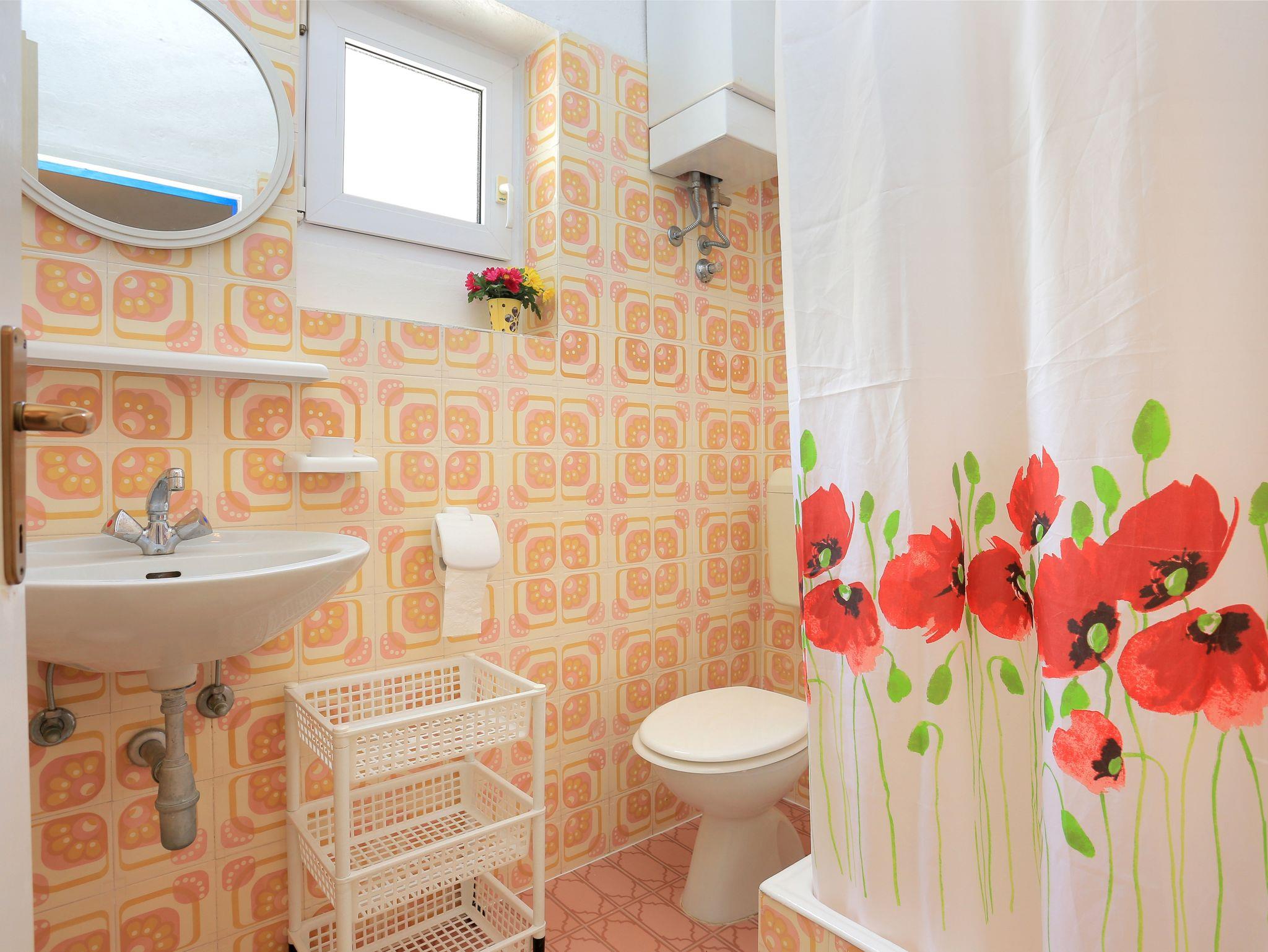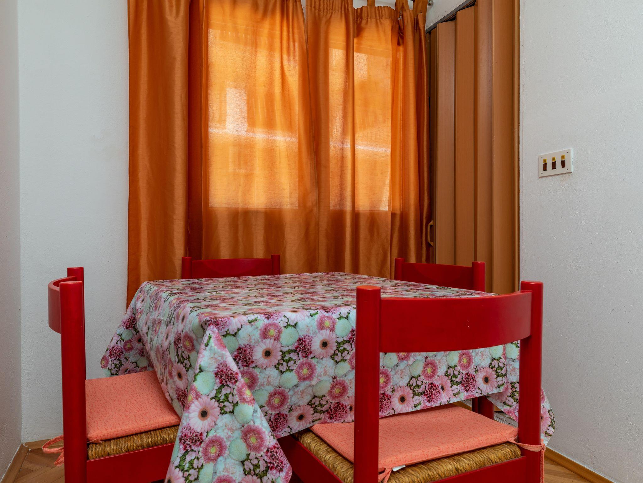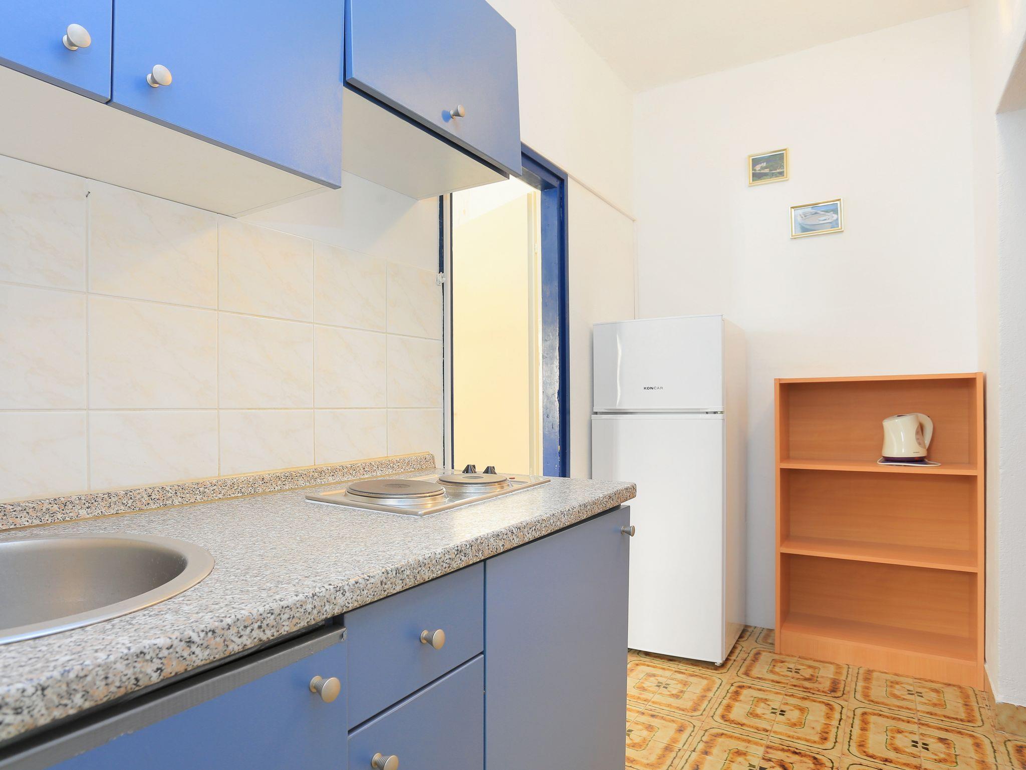 Studio bietet Platz für 4 Gäste. Die Betten sind in Schlafzimmern, die es 2 gibt, innerhalb einer Gesamtfläche von 32m2, angeordnet. Die Gäste haben eine eigene Terrasse zur Verfügung, auf der sie in warmen Sommernächten genießen können. Das Studio-Apartment bietet Meerblick. Es ist erlaubt, Speisen auf dem Gemeinschafts-Grill vorzubereiten. Durch die Terrasse der gebuchten Unterkunftseinheit gehen auch andere Gäste oder Vermieter. Unterkunftseinheit hat Räume, die von dem Rest der Einheit abgetrennt werden. IM PREIS INBEGRIFFEN: Kurtaxe, Endreinigung, Parkplatz, Internet, Wäschewaschen, Bügeleisen, Bügelbrett. VERBINDLICHE ZUSÄTZLICHE KOSTEN: Aufzahlung für Kurzaufenthalte (prozentualer Zuschlag pro Nächtigungsanzahl: 30% - 1, 20% - 2, 10% - 3). UNVERBINDLICHE ZUSÄTZLICHE KOSTEN: Klimatisierung (5,00 € pro Nacht). Die Verfügbarkeit zusätzlicher Dienstleistungen in Ihrem reservierten Termin und die Preise derselben (falls nicht aufgeführt) müssen im Voraus überprüft werden. Zusätzliche Dienstleistungen die in der Zahlungsaufforderung nicht aufgeführt sind werden direkt beim Vermieter bezahlt, angenommen der Gast nutzt auch diese.