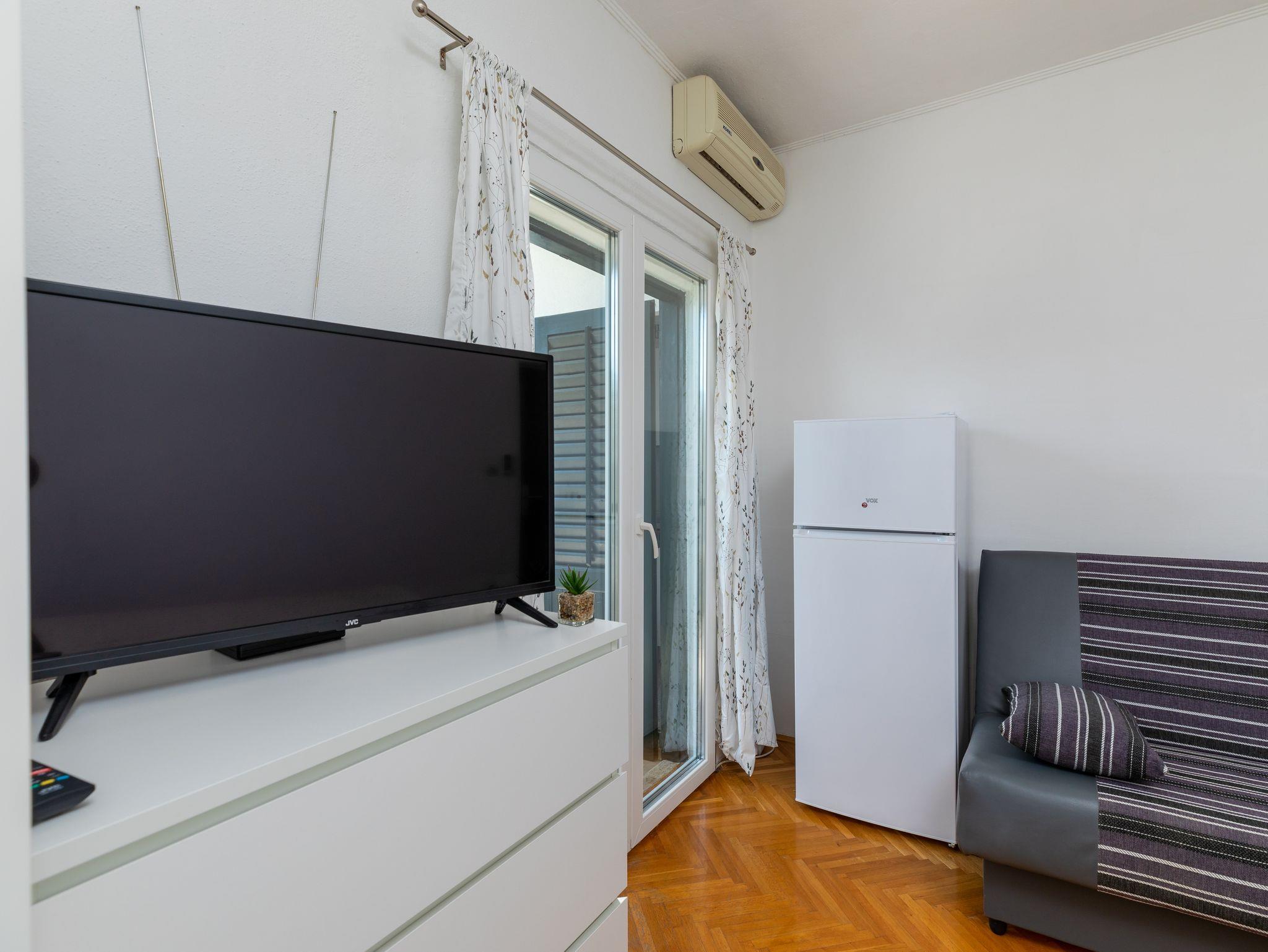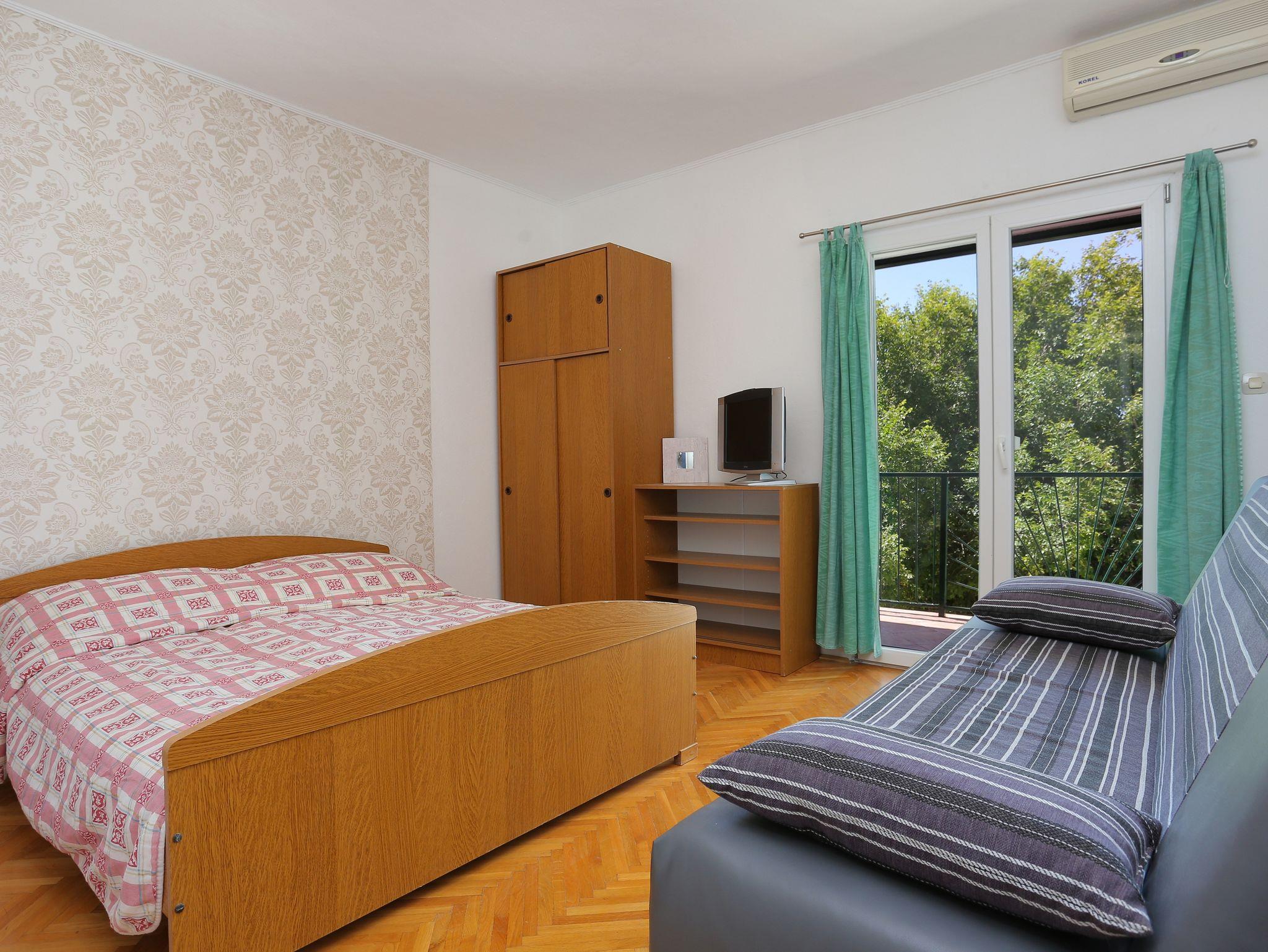 Studio bietet Platz für 2 Gäste. Die Betten sind in Schlafzimmern, die es 1 gibt, innerhalb einer Gesamtfläche von 20m2, angeordnet. Die Gäste haben einen eigenen Balkon zur Verfügung, auf der sie in warmen Sommernächten genießen können. Das Studio-Apartment bietet Meerblick. Es ist erlaubt, Speisen auf dem Gemeinschafts-Grill vorzubereiten. Unterkunftseinheit hat Räume, die von dem Rest der Einheit abgetrennt werden. IM PREIS INBEGRIFFEN: Kurtaxe, Endreinigung, Parkplatz, Internet, Wäschewaschen, Bügeleisen, Bügelbrett. VERBINDLICHE ZUSÄTZLICHE KOSTEN: Aufzahlung für Kurzaufenthalte (prozentualer Zuschlag pro Nächtigungsanzahl: 30% - 1, 20% - 2, 10% - 3). UNVERBINDLICHE ZUSÄTZLICHE KOSTEN: Klimatisierung (5,00 € pro Nacht). Die Verfügbarkeit zusätzlicher Dienstleistungen in Ihrem reservierten Termin und die Preise derselben (falls nicht aufgeführt) müssen im Voraus überprüft werden. Zusätzliche Dienstleistungen die in der Zahlungsaufforderung nicht aufgeführt sind werden direkt beim Vermieter bezahlt, angenommen der Gast nutzt auch diese.