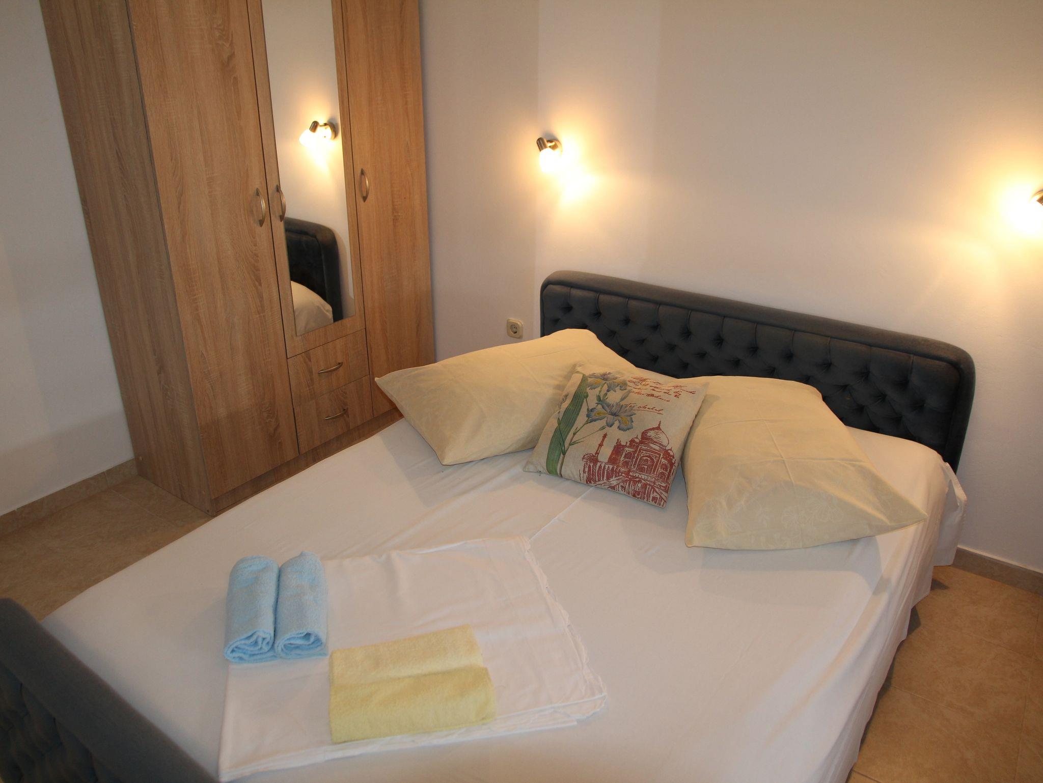 Ferienwohnung bietet Platz für 4 Gäste. Die Betten sind in Schlafzimmern, die es 2 gibt, innerhalb einer Gesamtfläche von 35m2, angeordnet. Die Gäste haben eine eigene Terrasse zur Verfügung, auf der sie in warmen Sommernächten genießen können. Das Apartment bietet Meerblick. Es ist erlaubt, Speisen auf dem Gemeinschafts-Grill vorzubereiten. Während ihres Aufenthalts können Gäste das gemeinsam zur Nutzung stehende Schwimmbad benutzen. IM PREIS INBEGRIFFEN: Kurtaxe, Endreinigung, Klimatisierung, Pool, Parkplatz, Internet, Bügeleisen, Föhn. VERBINDLICHE ZUSÄTZLICHE KOSTEN: Aufzahlung für Kurzaufenthalte (prozentualer Zuschlag pro Nächtigungsanzahl: 30% - 1, 20% - 2, 10% - 3). UNVERBINDLICHE ZUSÄTZLICHE KOSTEN: Zusatzbett (10,00 € pro Nacht). Die Verfügbarkeit zusätzlicher Dienstleistungen in Ihrem reservierten Termin und die Preise derselben (falls nicht aufgeführt) müssen im Voraus überprüft werden. Zusätzliche Dienstleistungen die in der Zahlungsaufforderung nicht aufgeführt sind werden direkt beim Vermieter bezahlt, angenommen der Gast nutzt auch diese.