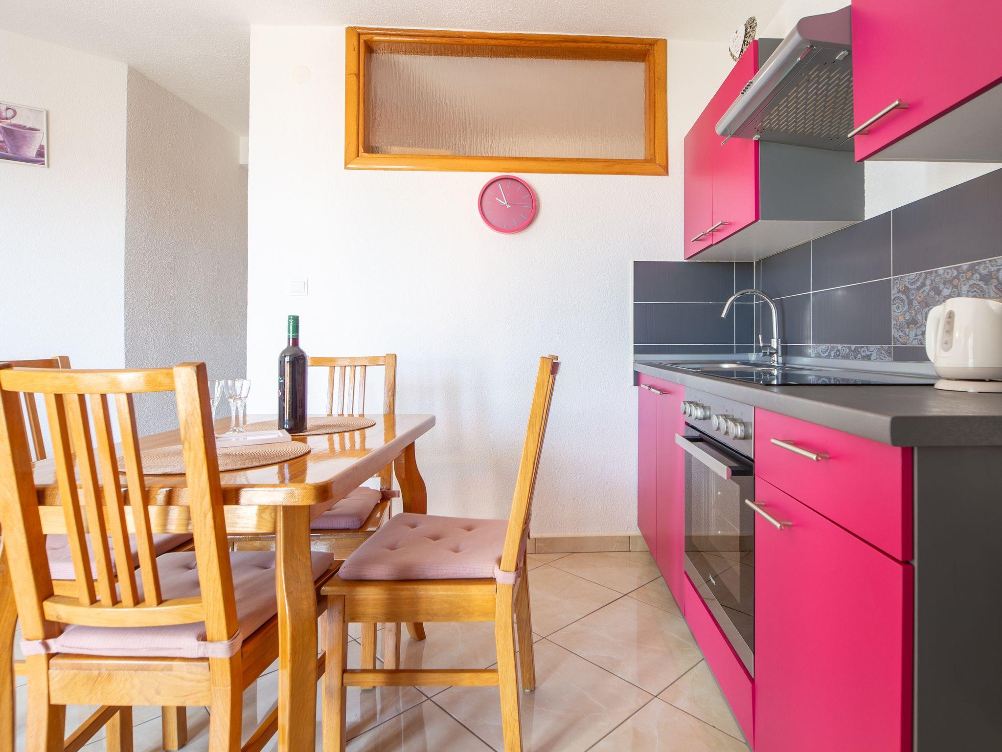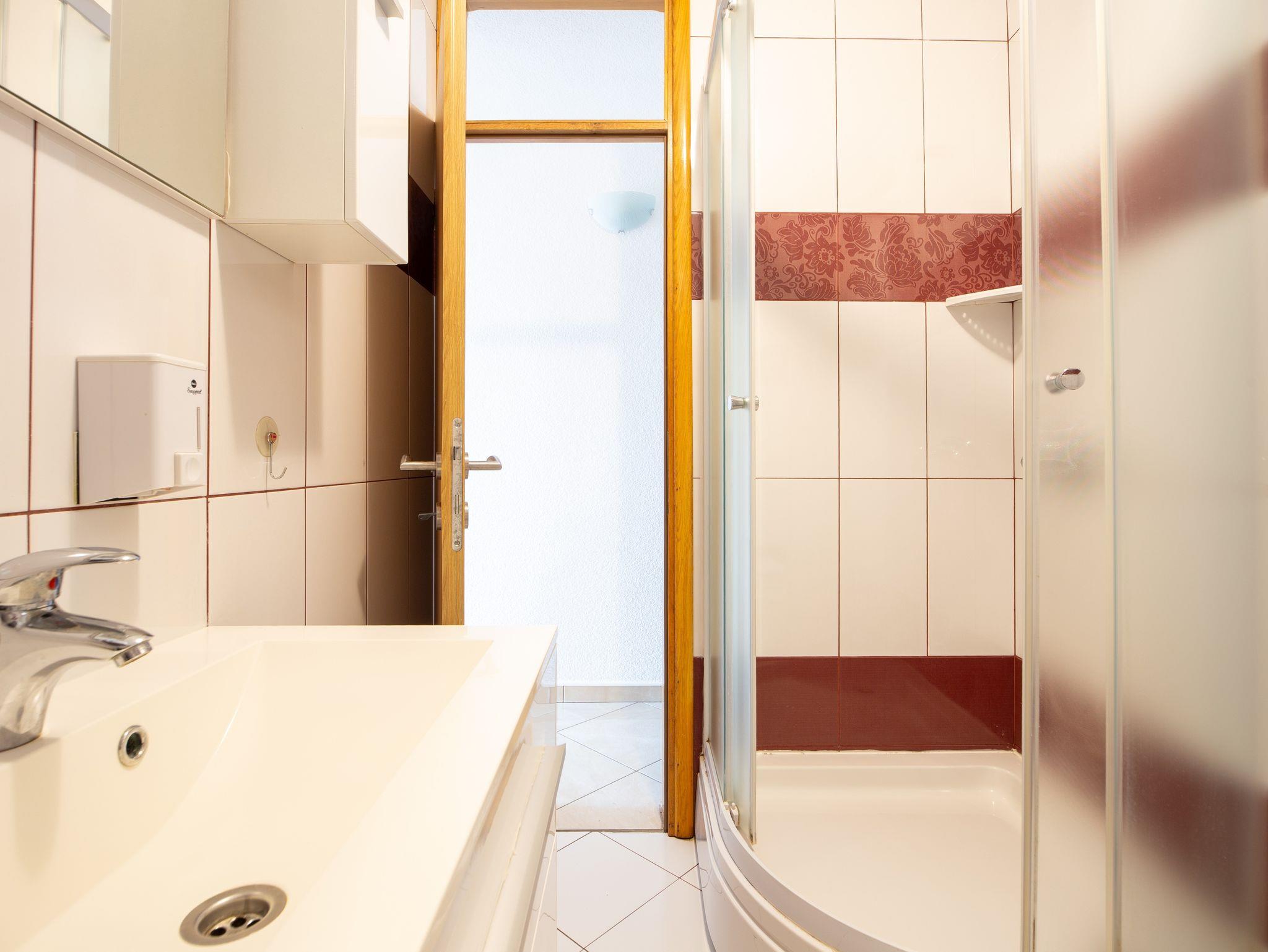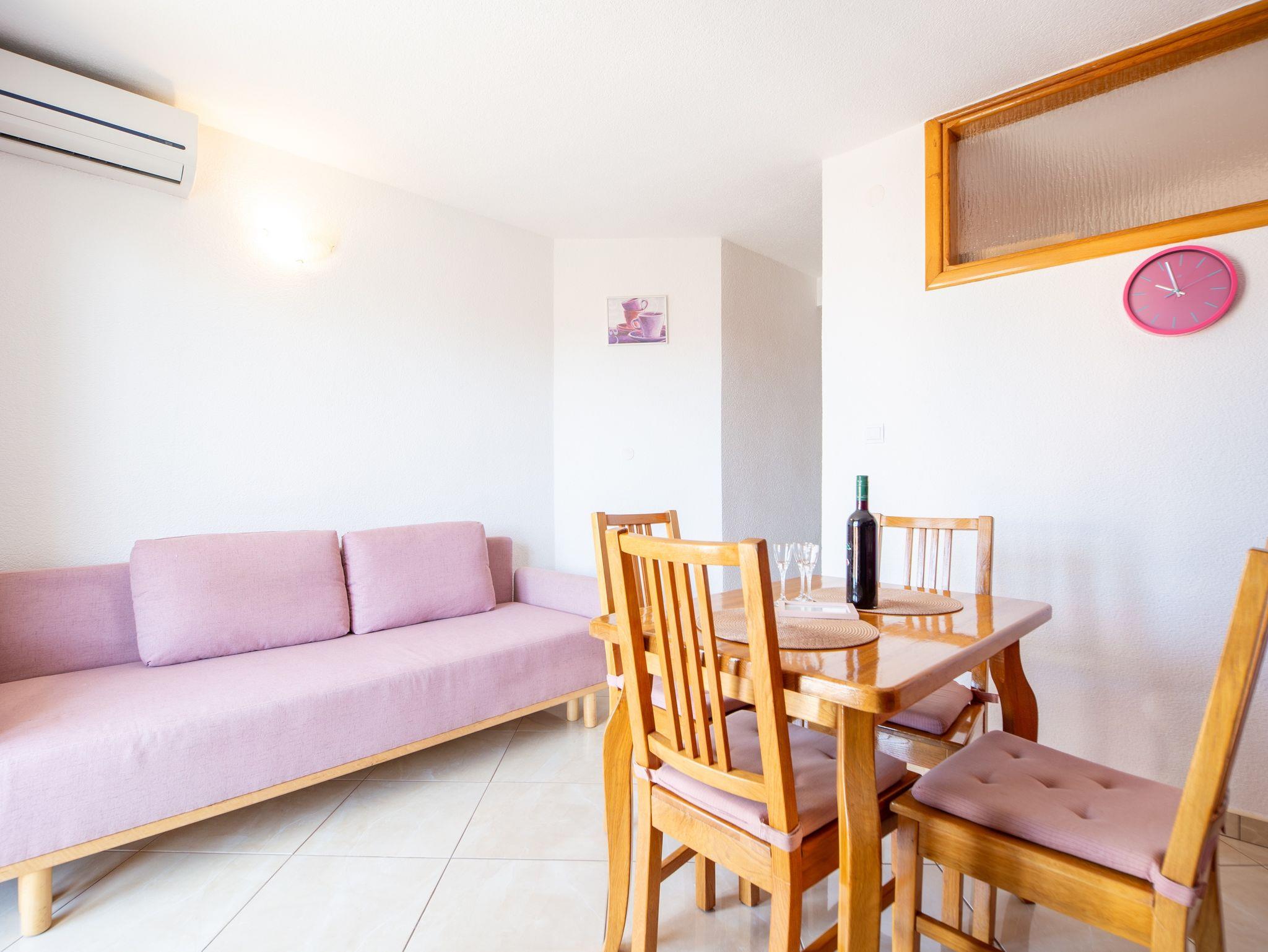 Ferienwohnung bietet Platz für 3 Gäste. Die Betten sind in Schlafzimmern, die es 1 gibt, und in Wohnzimmer, innerhalb einer Gesamtfläche von 34m2, angeordnet. Die Gäste haben einen eigenen Balkon zur Verfügung, auf der sie in warmen Sommernächten genießen können. Das Apartment bietet Meerblick. Es ist erlaubt, Speisen auf dem Gemeinschafts-Grill vorzubereiten. IM PREIS INBEGRIFFEN: Kurtaxe, Endreinigung, Klimatisierung, Parkplatz, Internet, Bügeleisen, Bügelbrett, tragbarer Grill. VERBINDLICHE ZUSÄTZLICHE KOSTEN: Aufzahlung für Kurzaufenthalte (prozentualer Zuschlag pro Nächtigungsanzahl: 30% - 1, 20% - 2, 10% - 3). Die Verfügbarkeit zusätzlicher Dienstleistungen in Ihrem reservierten Termin und die Preise derselben (falls nicht aufgeführt) müssen im Voraus überprüft werden. Zusätzliche Dienstleistungen die in der Zahlungsaufforderung nicht aufgeführt sind werden direkt beim Vermieter bezahlt, angenommen der Gast nutzt auch diese.