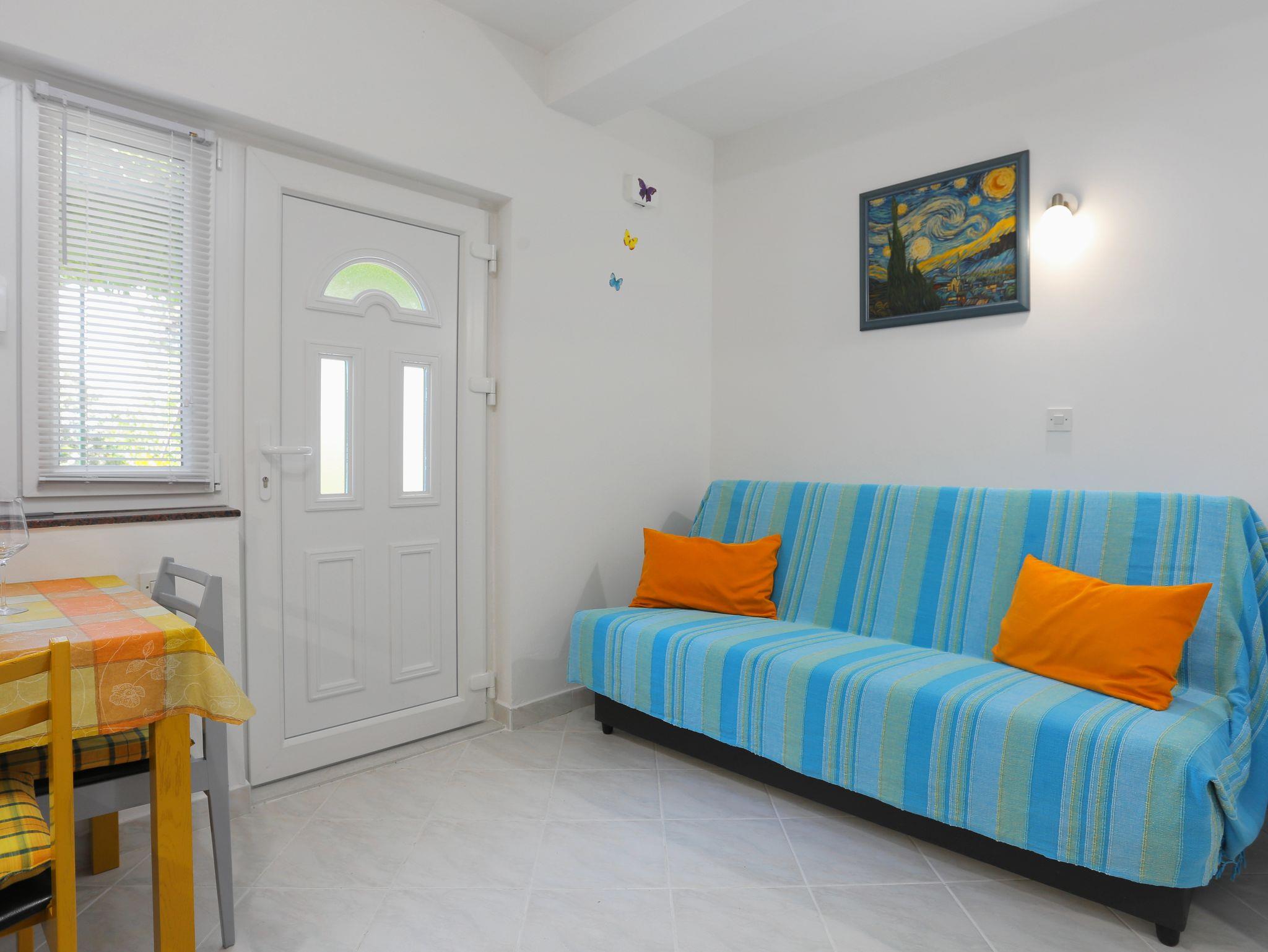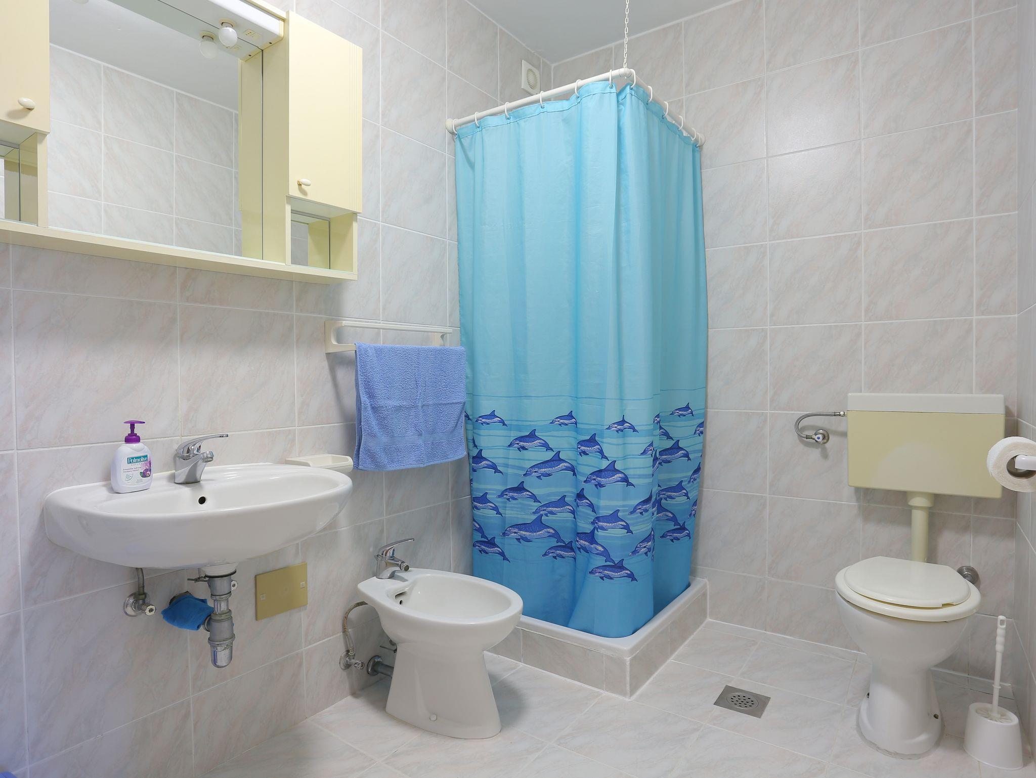 Ferienwohnung bietet Platz für 4 Gäste. Die Betten sind in Schlafzimmern, die es 1 gibt, und in Esszimmer, innerhalb einer Gesamtfläche von 34m2, angeordnet. Die Gäste haben eine eigene Terrasse zur Verfügung, auf der sie in warmen Sommernächten genießen können. Das Apartment bietet Meerblick. Es ist erlaubt, Speisen auf dem Gemeinschafts-Grill vorzubereiten. In der Unterkunftseinheit besteht die Möglichkeit des Mitbringens von Haustieren gegen Aufpreis. IM PREIS INBEGRIFFEN: Kurtaxe, Endreinigung, Klimatisierung, Parkplatz, Internet, Bügeleisen, Föhn. VERBINDLICHE ZUSÄTZLICHE KOSTEN: Aufzahlung für Kurzaufenthalte (prozentualer Zuschlag pro Nächtigungsanzahl: 30% - 1, 20% - 2, 10% - 3). UNVERBINDLICHE ZUSÄTZLICHE KOSTEN: Haustiere (5,00 € pro Nacht). Die Verfügbarkeit zusätzlicher Dienstleistungen in Ihrem reservierten Termin und die Preise derselben (falls nicht aufgeführt) müssen im Voraus überprüft werden. Zusätzliche Dienstleistungen die in der Zahlungsaufforderung nicht aufgeführt sind werden direkt beim Vermieter bezahlt, angenommen der Gast nutzt auch diese.