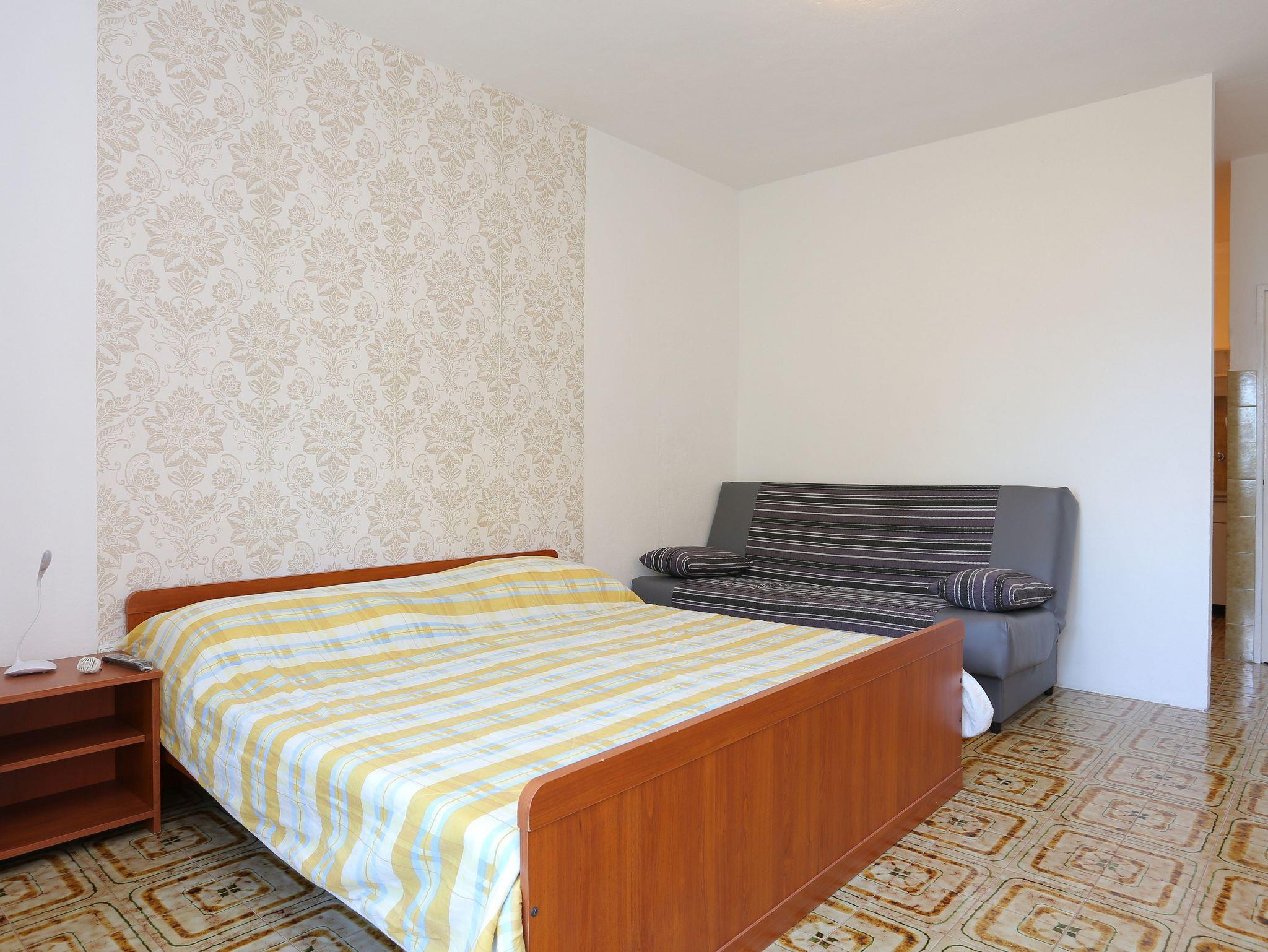 Studio bietet Platz für 4 Gäste. Die Betten sind in Schlafzimmern, die es 1 gibt, innerhalb einer Gesamtfläche von 26m2, angeordnet. Die Gäste haben einen eigenen Balkon zur Verfügung, auf der sie in warmen Sommernächten genießen können. Das Studio-Apartment bietet Meerblick. Es ist erlaubt, Speisen auf dem Gemeinschafts-Grill vorzubereiten. IM PREIS INBEGRIFFEN: Kurtaxe, Endreinigung, Parkplatz, Internet, Wäschewaschen, Bügeleisen, Bügelbrett. VERBINDLICHE ZUSÄTZLICHE KOSTEN: Aufzahlung für Kurzaufenthalte (prozentualer Zuschlag pro Nächtigungsanzahl: 30% - 1, 20% - 2, 10% - 3). UNVERBINDLICHE ZUSÄTZLICHE KOSTEN: Klimatisierung (5,00 € pro Nacht). Die Verfügbarkeit zusätzlicher Dienstleistungen in Ihrem reservierten Termin und die Preise derselben (falls nicht aufgeführt) müssen im Voraus überprüft werden. Zusätzliche Dienstleistungen die in der Zahlungsaufforderung nicht aufgeführt sind werden direkt beim Vermieter bezahlt, angenommen der Gast nutzt auch diese.