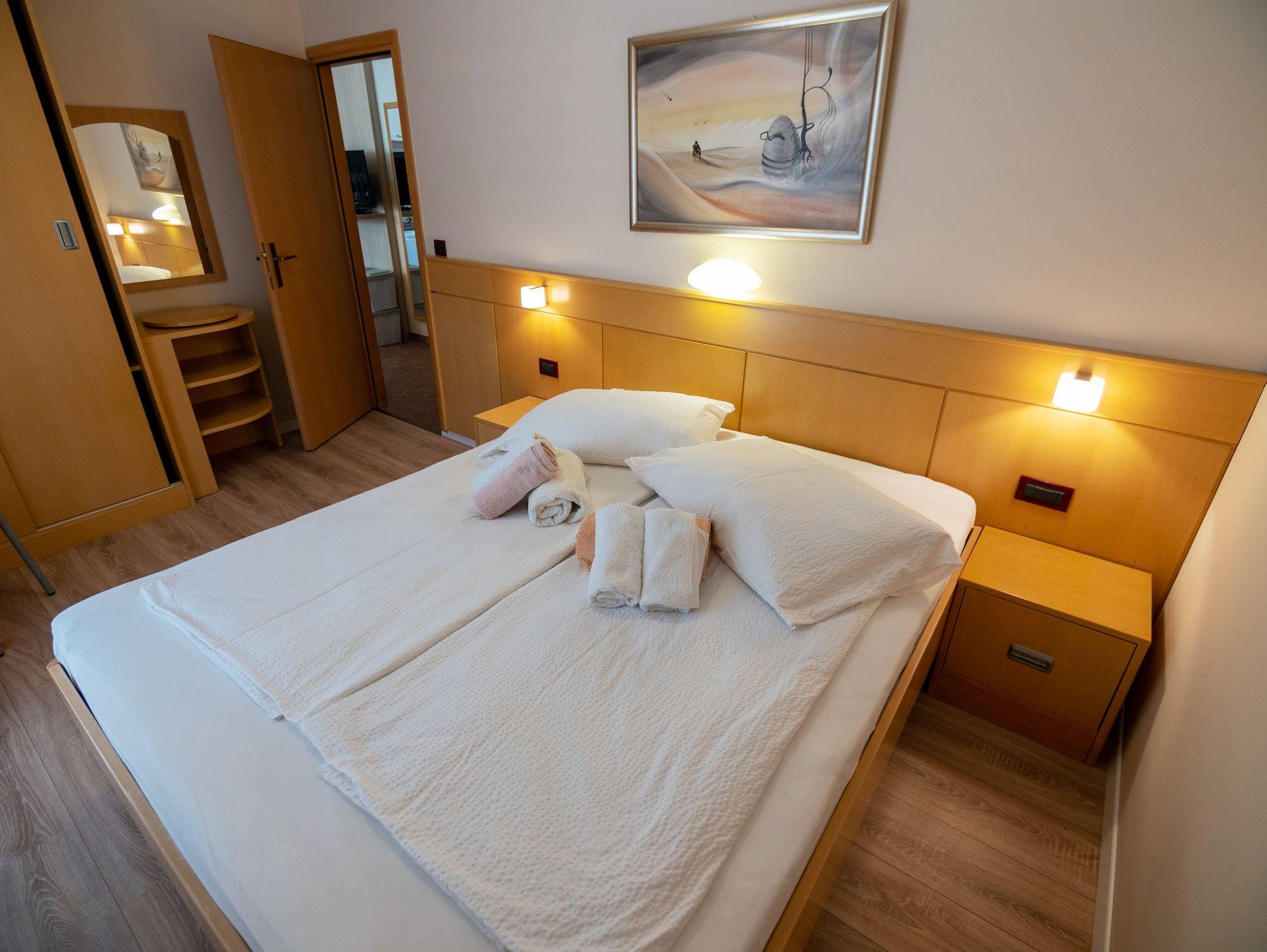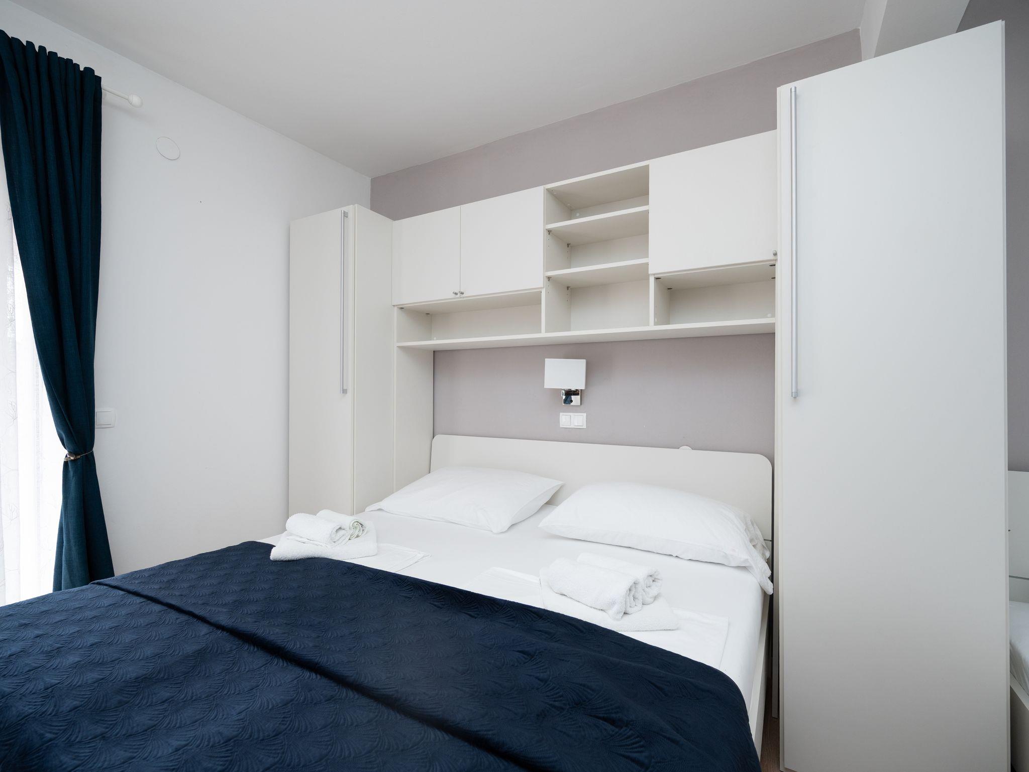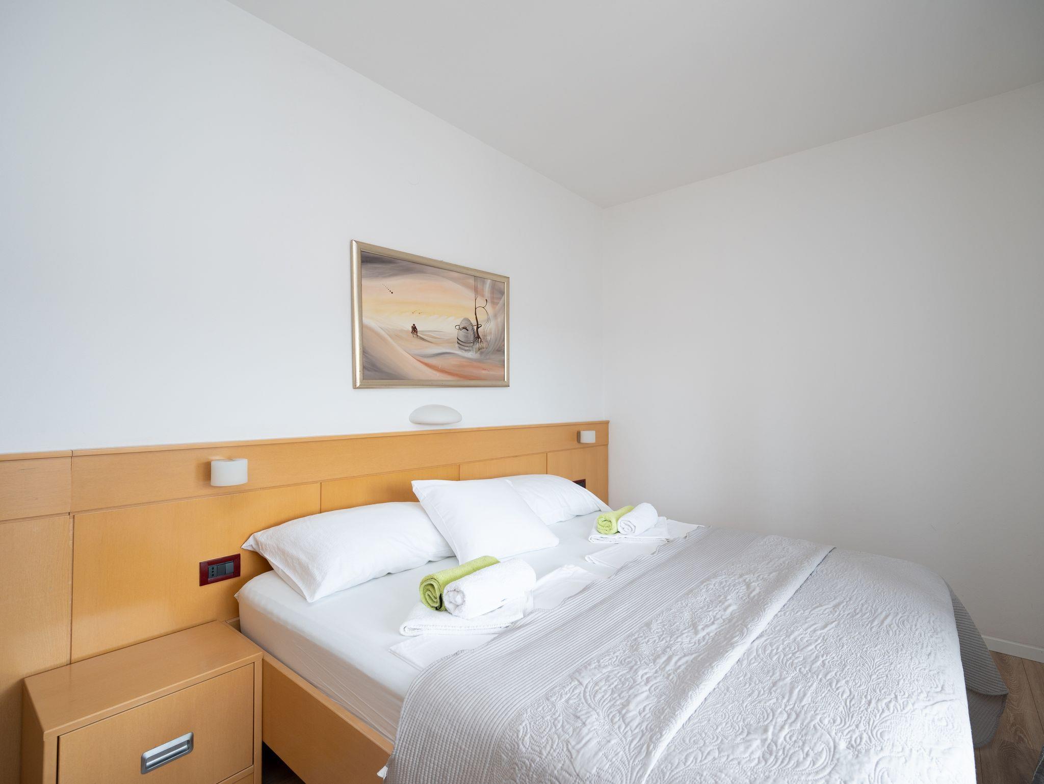 Ferienwohnung bietet Platz für 5 Gäste. Die Betten sind in Schlafzimmern, die es 2 gibt, innerhalb einer Gesamtfläche von 51m2, angeordnet. Die Gäste haben einen eigenen Balkon zur Verfügung, auf der sie in warmen Sommernächten genießen können. Es ist erlaubt, Speisen auf dem Gemeinschafts-Grill vorzubereiten. In der Unterkunftseinheit besteht die Möglichkeit des Mitbringens von Haustieren gegen Aufpreis. IM PREIS INBEGRIFFEN: Endreinigung, Klimatisierung, Parkplatz, Internet, Fahrrad, Kinderbett, Bügeleisen, Bügelbrett, Föhn. VERBINDLICHE ZUSÄTZLICHE KOSTEN: Kurtaxe (Erwachsene 0,93 € - 1,90 € Nacht/Person, Kinderermäßigung 12 - 17 Jahre), Aufzahlung für Kurzaufenthalte (prozentualer Zuschlag pro Nächtigungsanzahl: 30% - 1, 20% - 2, 10% - 3). UNVERBINDLICHE ZUSÄTZLICHE KOSTEN: Wäschewaschen (5,00 € Waschen), Haustiere (15,00 € pro Nacht). Die Verfügbarkeit zusätzlicher Dienstleistungen in Ihrem reservierten Termin und die Preise derselben (falls nicht aufgeführt) müssen im Voraus überprüft werden. Zusätzliche Dienstleistungen die in der Zahlungsaufforderung nicht aufgeführt sind werden direkt beim Vermieter bezahlt, angenommen der Gast nutzt auch diese. Ermäßigung auf den Grundpreis: Gratistag 28=25 (bei einem Aufenthalt von 28 oder mehr Tagen erhalten Sie 3 kostenlose Tage für den Aufenthalt bis 31.12.26).