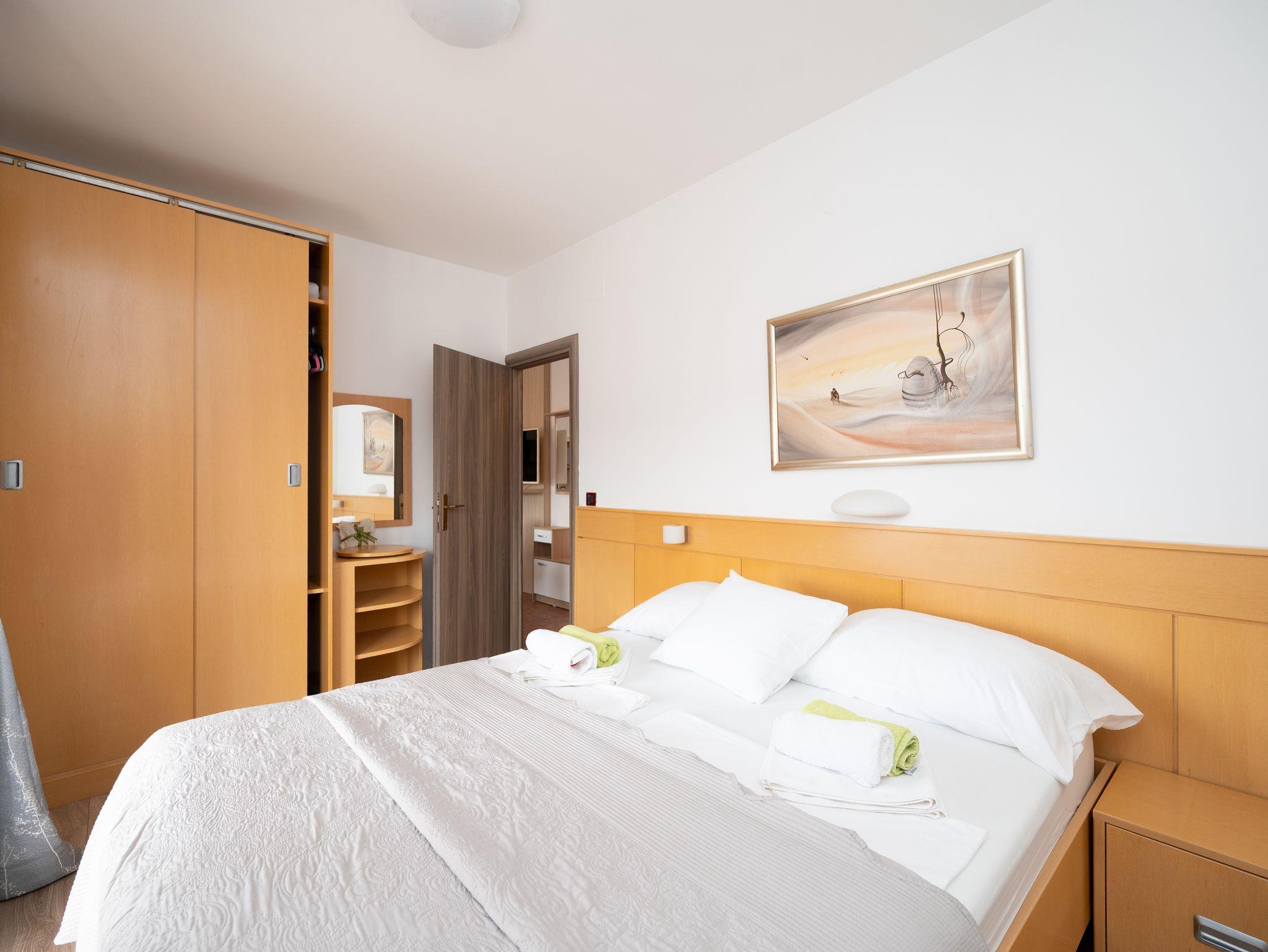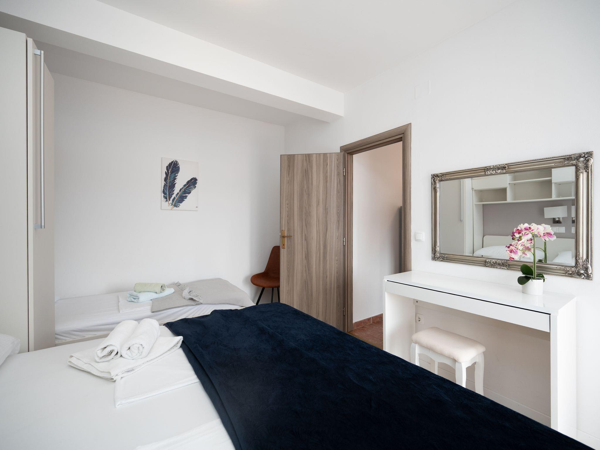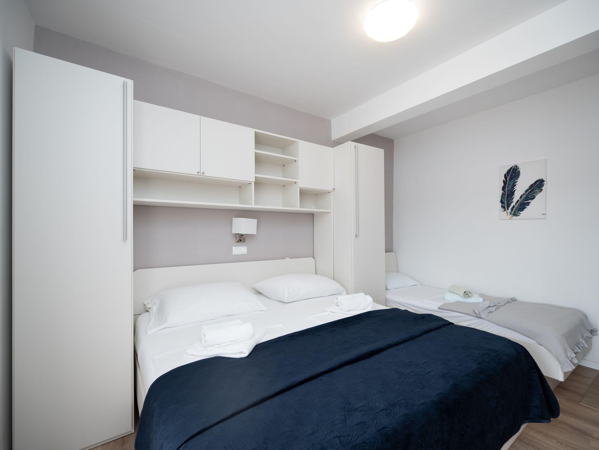 Ferienwohnung bietet Platz für 5 Gäste. Die Betten sind in Schlafzimmern, die es 2 gibt, innerhalb einer Gesamtfläche von 51m2, angeordnet. Die Gäste haben einen eigenen Balkon zur Verfügung, auf der sie in warmen Sommernächten genießen können. Es ist erlaubt, Speisen auf dem Gemeinschafts-Grill vorzubereiten. In der Unterkunftseinheit besteht die Möglichkeit des Mitbringens von Haustieren gegen Aufpreis. IM PREIS INBEGRIFFEN: Endreinigung, Klimatisierung, Parkplatz, Internet, Fahrrad, Kinderbett, Bügeleisen, Bügelbrett, Föhn. VERBINDLICHE ZUSÄTZLICHE KOSTEN: Kurtaxe (Erwachsene 0,93 € - 1,90 € Nacht/Person, Kinderermäßigung 12 - 17 Jahre), Aufzahlung für Kurzaufenthalte (prozentualer Zuschlag pro Nächtigungsanzahl: 30% - 1, 20% - 2, 10% - 3). UNVERBINDLICHE ZUSÄTZLICHE KOSTEN: Wäschewaschen (5,00 € Waschen), Haustiere (15,00 € pro Nacht). Die Verfügbarkeit zusätzlicher Dienstleistungen in Ihrem reservierten Termin und die Preise derselben (falls nicht aufgeführt) müssen im Voraus überprüft werden. Zusätzliche Dienstleistungen die in der Zahlungsaufforderung nicht aufgeführt sind werden direkt beim Vermieter bezahlt, angenommen der Gast nutzt auch diese. Ermäßigung auf den Grundpreis: Gratistag 28=25 (bei einem Aufenthalt von 28 oder mehr Tagen erhalten Sie 3 kostenlose Tage für den Aufenthalt bis 31.12.26).