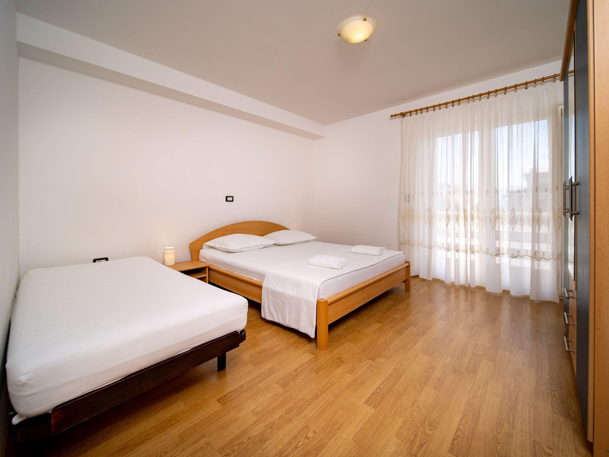 Ferienwohnung bietet Platz für 4 Gäste. Die Betten sind in Schlafzimmern, die es 2 gibt, innerhalb einer Gesamtfläche von 56m2, angeordnet. Die Gäste haben einen eigenen Balkon zur Verfügung, auf der sie in warmen Sommernächten genießen können. Es ist erlaubt, Speisen auf dem Gemeinschafts-Grill vorzubereiten. IM PREIS INBEGRIFFEN: Kurtaxe, Endreinigung, Klimatisierung, Parkplatz, Internet. VERBINDLICHE ZUSÄTZLICHE KOSTEN: Aufzahlung für Kurzaufenthalte (prozentualer Zuschlag pro Nächtigungsanzahl: 30% - 1, 20% - 2, 10% - 3). UNVERBINDLICHE ZUSÄTZLICHE KOSTEN: Zusatzbett (10,00 € pro Nacht). Die Verfügbarkeit zusätzlicher Dienstleistungen in Ihrem reservierten Termin und die Preise derselben (falls nicht aufgeführt) müssen im Voraus überprüft werden. Zusätzliche Dienstleistungen die in der Zahlungsaufforderung nicht aufgeführt sind werden direkt beim Vermieter bezahlt, angenommen der Gast nutzt auch diese. Ermäßigung auf den Grundpreis: Gratistag 14=13 (bei einem Aufenthalt von 14 Tagen oder mehr erhalten Sie einen Gratistag für den Aufenthalt bis 31.12.26).