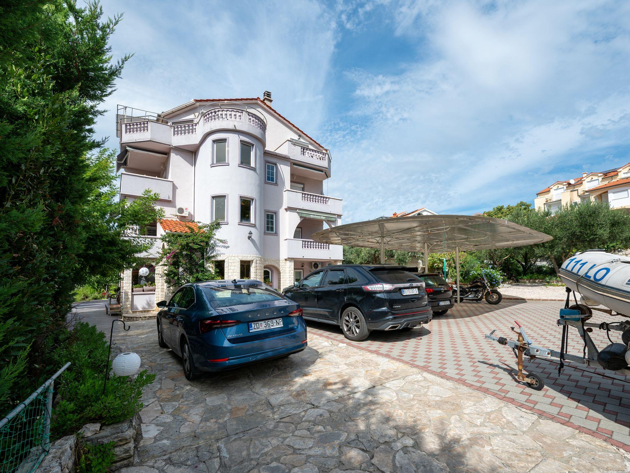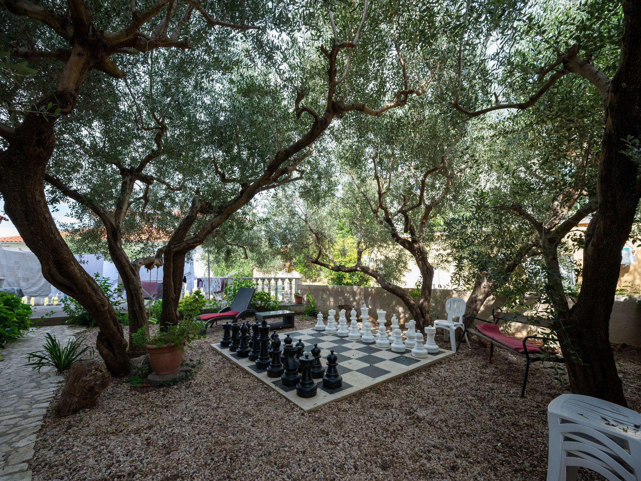 Umgebung des Objekts (Eingerichtet), Hof (2000m2, Kinderbereich, Sitzbereich), Parkplatz (Anzahl der Parkplätze: 20, Entfernung vom Objekt: im Hof), Grill: gemeinsam, WiFi Internet, Wäschewaschen, Fahrrad (Anzahl: 4), Föhn, Bügeleisen, Bügelbrett, Kinderbett