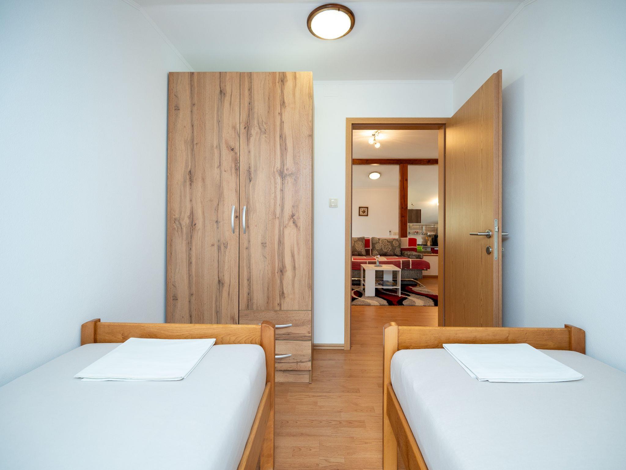 Ferienwohnung bietet Platz für 4 Gäste. Die Betten sind in Schlafzimmern, die es 2 gibt, innerhalb einer Gesamtfläche von 48m2, angeordnet. Die Gäste haben eine eigene Terrasse zur Verfügung, auf der sie in warmen Sommernächten genießen können. Das Apartment bietet Meerblick. Es ist erlaubt, Speisen auf dem Gemeinschafts-Grill vorzubereiten. In der Unterkunftseinheit besteht die Möglichkeit des Mitbringens von Haustieren gegen Aufpreis. IM PREIS INBEGRIFFEN: Kurtaxe, Endreinigung, Klimatisierung, Parkplatz, Internet, Kinderbett, Bügeleisen, Bügelbrett, Föhn. VERBINDLICHE ZUSÄTZLICHE KOSTEN: Aufzahlung für Kurzaufenthalte (prozentualer Zuschlag pro Nächtigungsanzahl: 30% - 1, 20% - 2, 10% - 3). UNVERBINDLICHE ZUSÄTZLICHE KOSTEN: Haustiere (10,00 € pro Nacht). Die Verfügbarkeit zusätzlicher Dienstleistungen in Ihrem reservierten Termin und die Preise derselben (falls nicht aufgeführt) müssen im Voraus überprüft werden. Zusätzliche Dienstleistungen die in der Zahlungsaufforderung nicht aufgeführt sind werden direkt beim Vermieter bezahlt, angenommen der Gast nutzt auch diese.