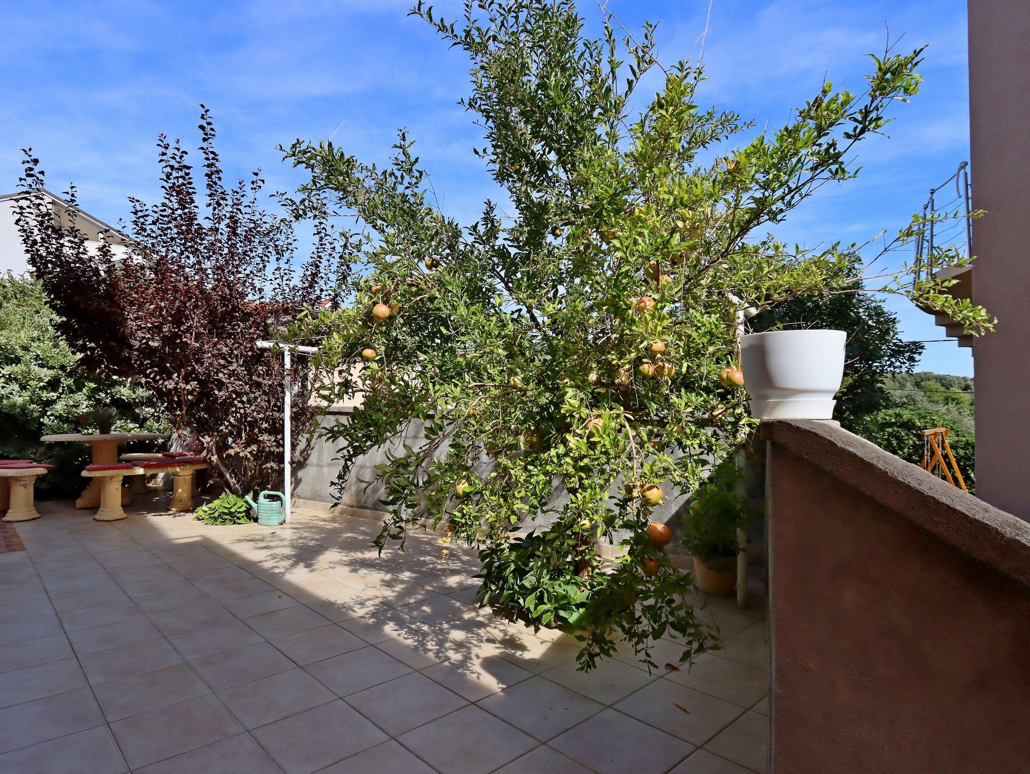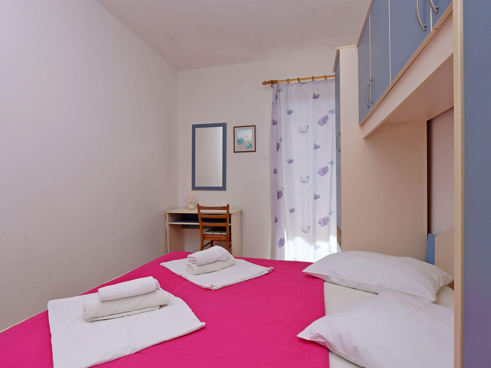 Ferienwohnung bietet Platz für 4 Gäste. Die Betten sind in Schlafzimmern, die es 2 gibt, innerhalb einer Gesamtfläche von 38m2, angeordnet. Die Gäste haben eine eigene Terrasse zur Verfügung, auf der sie in warmen Sommernächten genießen können. Das Apartment bietet Meerblick. Es ist erlaubt, Speisen auf dem Gemeinschafts-Grill vorzubereiten. IM PREIS INBEGRIFFEN: Kurtaxe, Endreinigung, Parkplatz, Internet. VERBINDLICHE ZUSÄTZLICHE KOSTEN: Aufzahlung für Kurzaufenthalte (prozentualer Zuschlag pro Nächtigungsanzahl: 30% - 1, 20% - 2, 10% - 3). UNVERBINDLICHE ZUSÄTZLICHE KOSTEN: Klimatisierung (3,00 € pro Nacht), Bootsanlegeplatz (10,00 € pro Nacht), Zusatzbett (10,00 € pro Nacht). Die Verfügbarkeit zusätzlicher Dienstleistungen in Ihrem reservierten Termin und die Preise derselben (falls nicht aufgeführt) müssen im Voraus überprüft werden. Zusätzliche Dienstleistungen die in der Zahlungsaufforderung nicht aufgeführt sind werden direkt beim Vermieter bezahlt, angenommen der Gast nutzt auch diese.