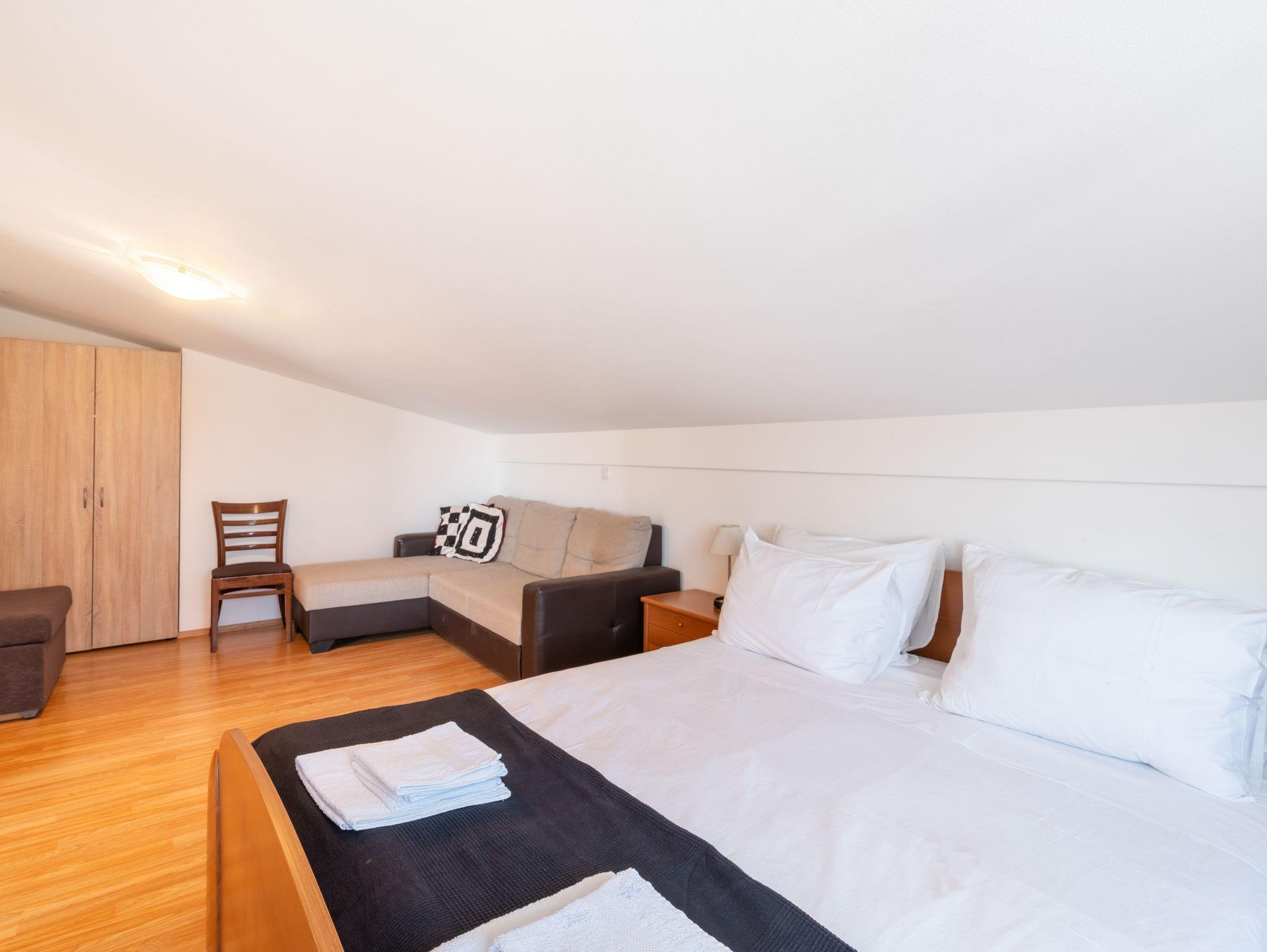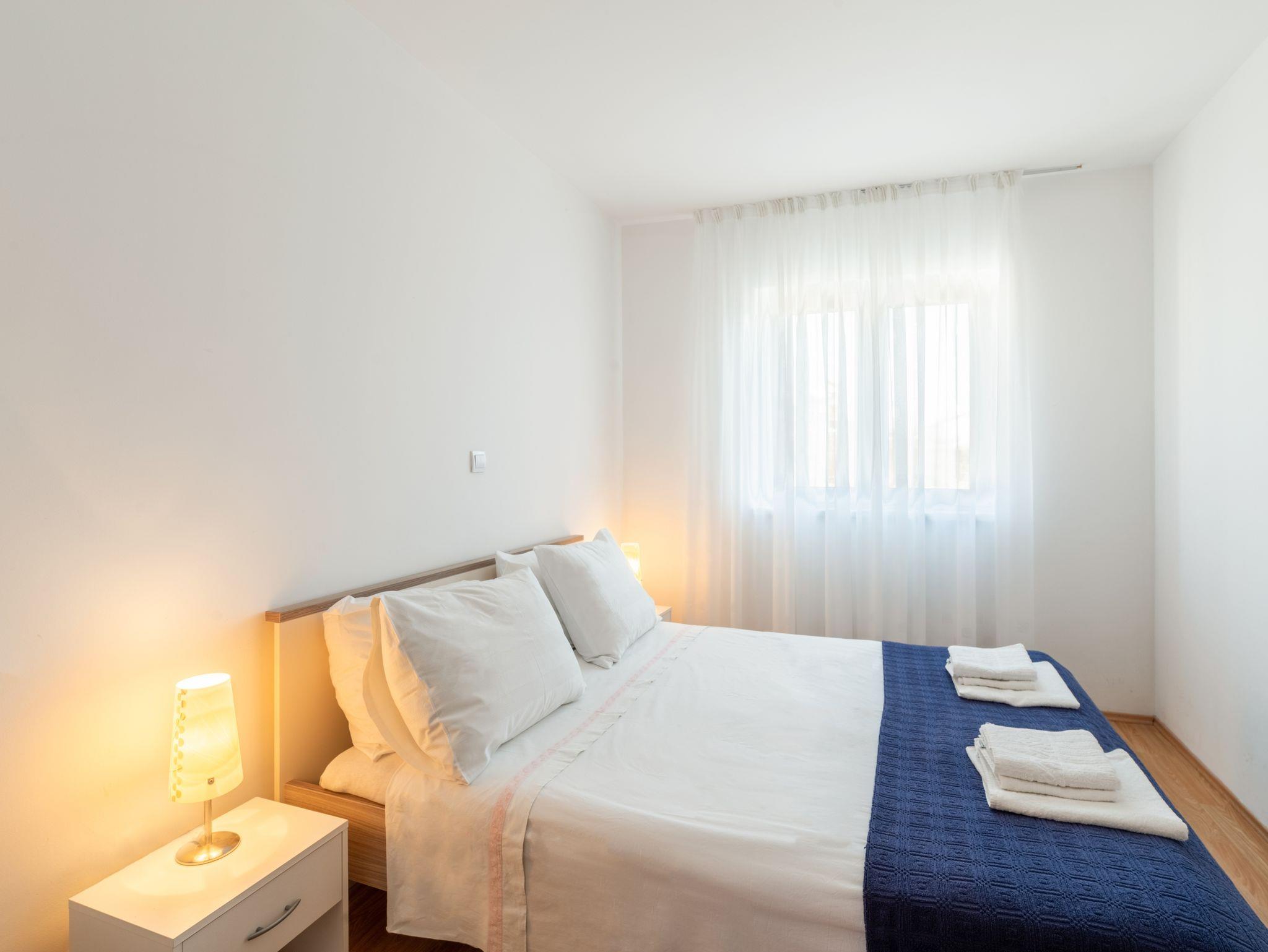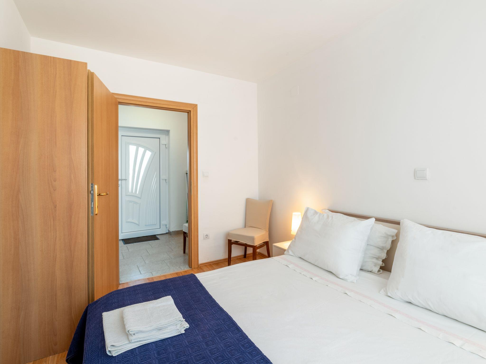 Ferienwohnung bietet Platz für 6 Gäste. Die Betten sind in Schlafzimmern, die es 3 gibt, innerhalb einer Gesamtfläche von 74m2, angeordnet. Die Gäste haben einen eigenen Balkon zur Verfügung, auf der sie in warmen Sommernächten genießen können. Das Apartment bietet Meerblick. Es ist erlaubt, Speisen auf dem Gemeinschafts-Grill vorzubereiten. In der Unterkunftseinheit besteht die Möglichkeit des Mitbringens von Haustieren gegen Aufpreis. Die reservierte Unterkunftseinheit verfügt über einen gemeinsame Terrasse. IM PREIS INBEGRIFFEN: Kurtaxe, Endreinigung, Klimatisierung, Parkplatz, Internet, Bügeleisen, Bügelbrett, Föhn. VERBINDLICHE ZUSÄTZLICHE KOSTEN: Aufzahlung für Kurzaufenthalte (prozentualer Zuschlag pro Nächtigungsanzahl: 30% - 1, 20% - 2, 10% - 3). UNVERBINDLICHE ZUSÄTZLICHE KOSTEN: Haustiere (20,00 € pro Nacht), Zusatzbett (10,00 € pro Nacht). Die Verfügbarkeit zusätzlicher Dienstleistungen in Ihrem reservierten Termin und die Preise derselben (falls nicht aufgeführt) müssen im Voraus überprüft werden. Zusätzliche Dienstleistungen die in der Zahlungsaufforderung nicht aufgeführt sind werden direkt beim Vermieter bezahlt, angenommen der Gast nutzt auch diese. Ermäßigung auf den Grundpreis: Gratistag 14=13 (bei einem Aufenthalt von 14 Tagen oder mehr erhalten Sie einen Gratistag für den Aufenthalt bis 31.12.26).