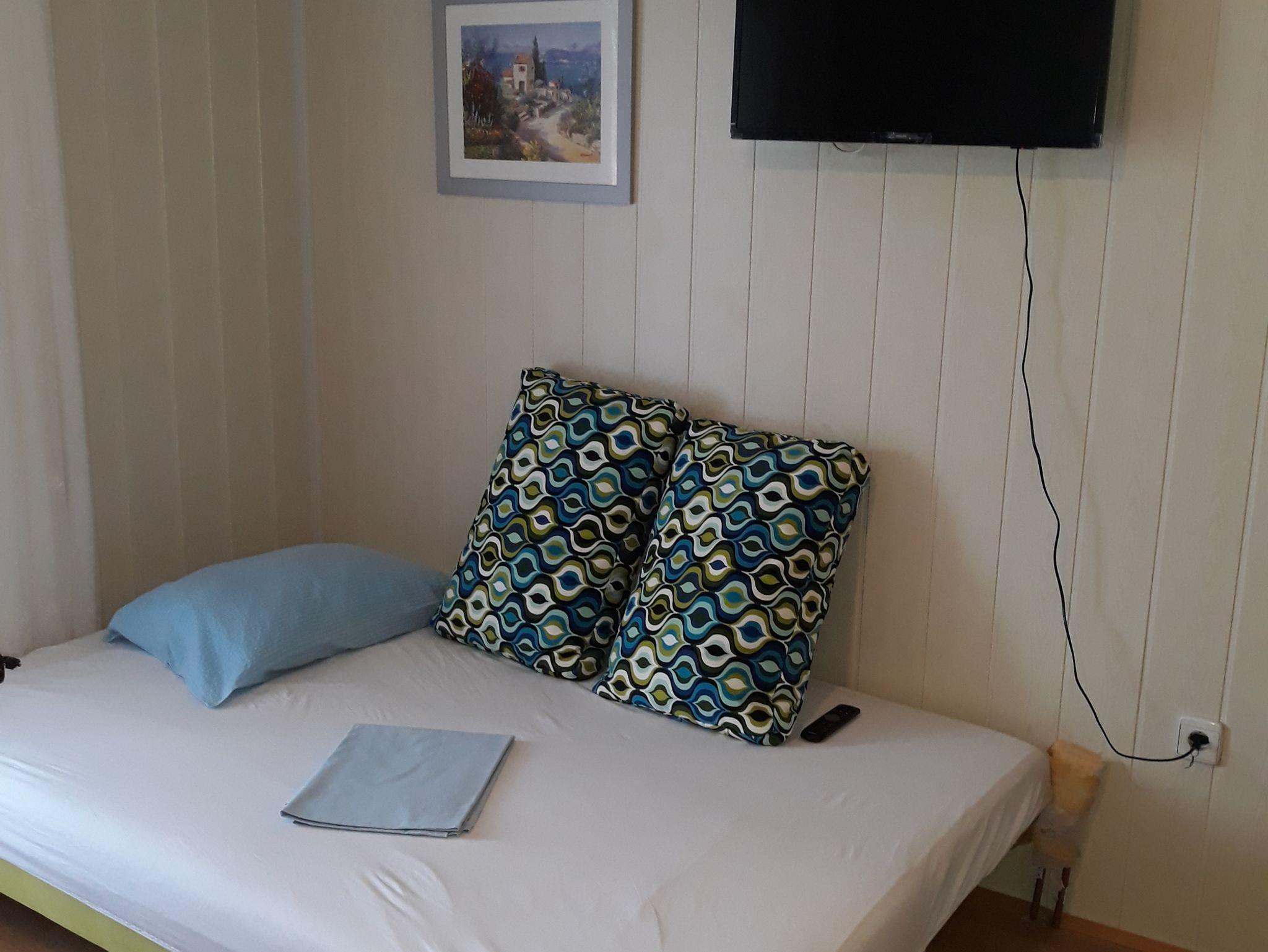 Ferienwohnung bietet Platz für 5 Gäste. Die Betten sind in Schlafzimmern, die es 2 gibt, innerhalb einer Gesamtfläche von 51m2, angeordnet. Die Gäste haben eine eigene Terrasse zur Verfügung, auf der sie in warmen Sommernächten genießen können. Es ist erlaubt, Speisen auf dem Gemeinschafts-Grill vorzubereiten. IM PREIS INBEGRIFFEN: Kurtaxe, Endreinigung, Klimatisierung, Parkplatz, Internet, Wäschewaschen, Kinderbett, Bügeleisen, Bügelbrett, Föhn. VERBINDLICHE ZUSÄTZLICHE KOSTEN: Aufzahlung für Kurzaufenthalte (prozentualer Zuschlag pro Nächtigungsanzahl: 30% - 1, 20% - 2, 10% - 3). Die Verfügbarkeit zusätzlicher Dienstleistungen in Ihrem reservierten Termin und die Preise derselben (falls nicht aufgeführt) müssen im Voraus überprüft werden. Zusätzliche Dienstleistungen die in der Zahlungsaufforderung nicht aufgeführt sind werden direkt beim Vermieter bezahlt, angenommen der Gast nutzt auch diese. Ermäßigung auf den Grundpreis: Gratistag 21=19 (bei einem Aufenthalt von 21 Tagen oder mehr erhalten Sie 2 Gratistage für den Aufenthalt bis 31.12.26).