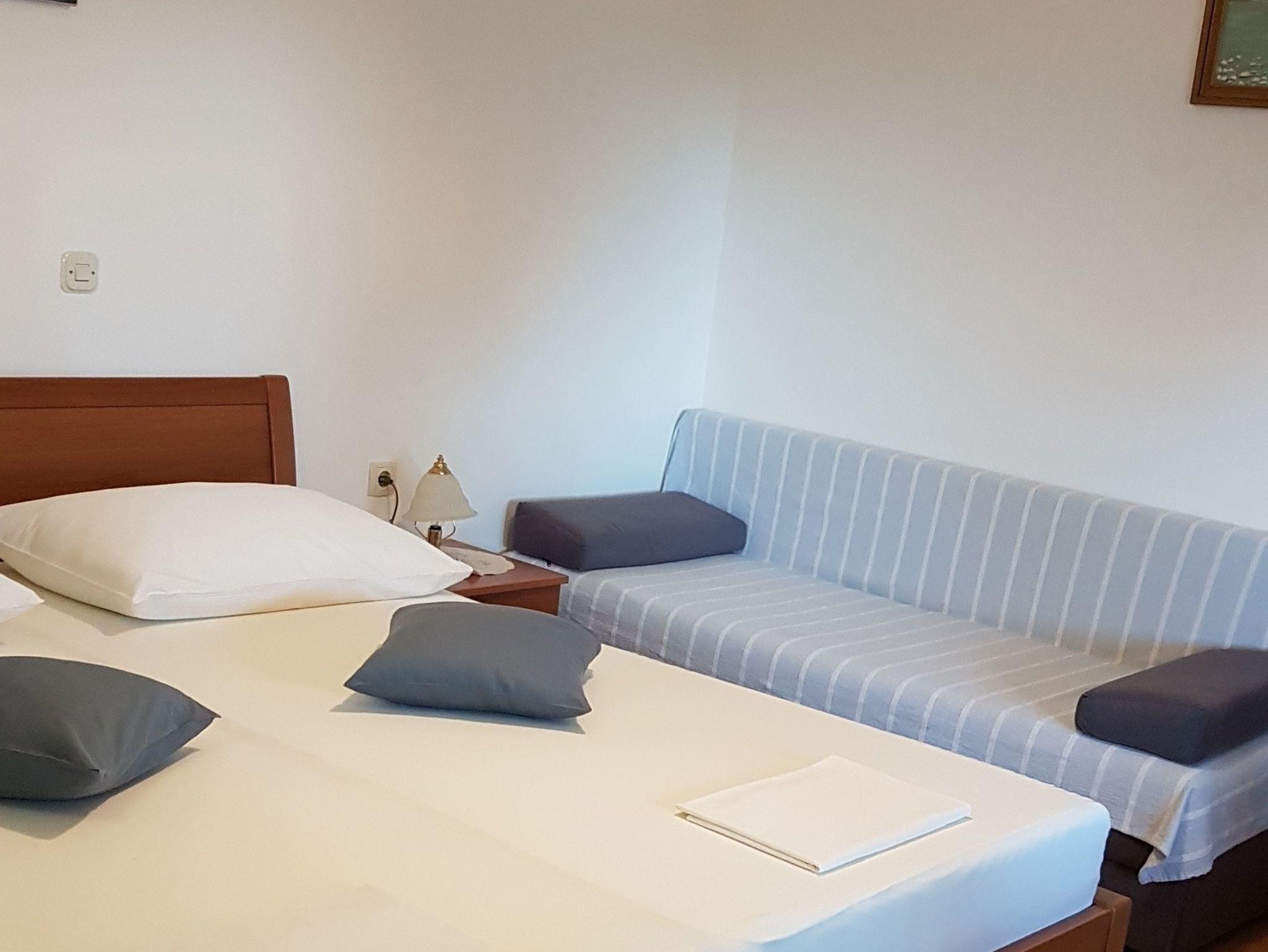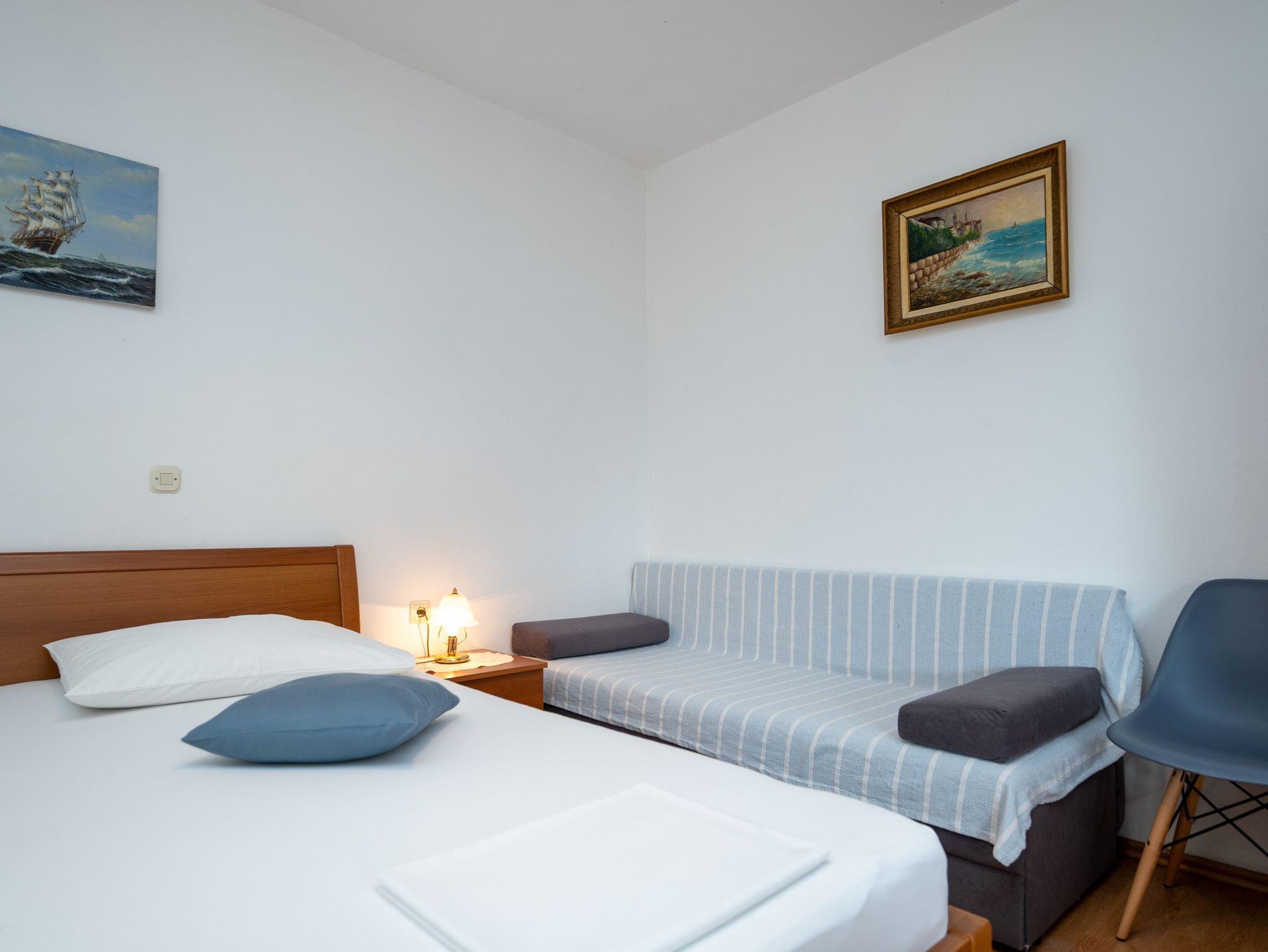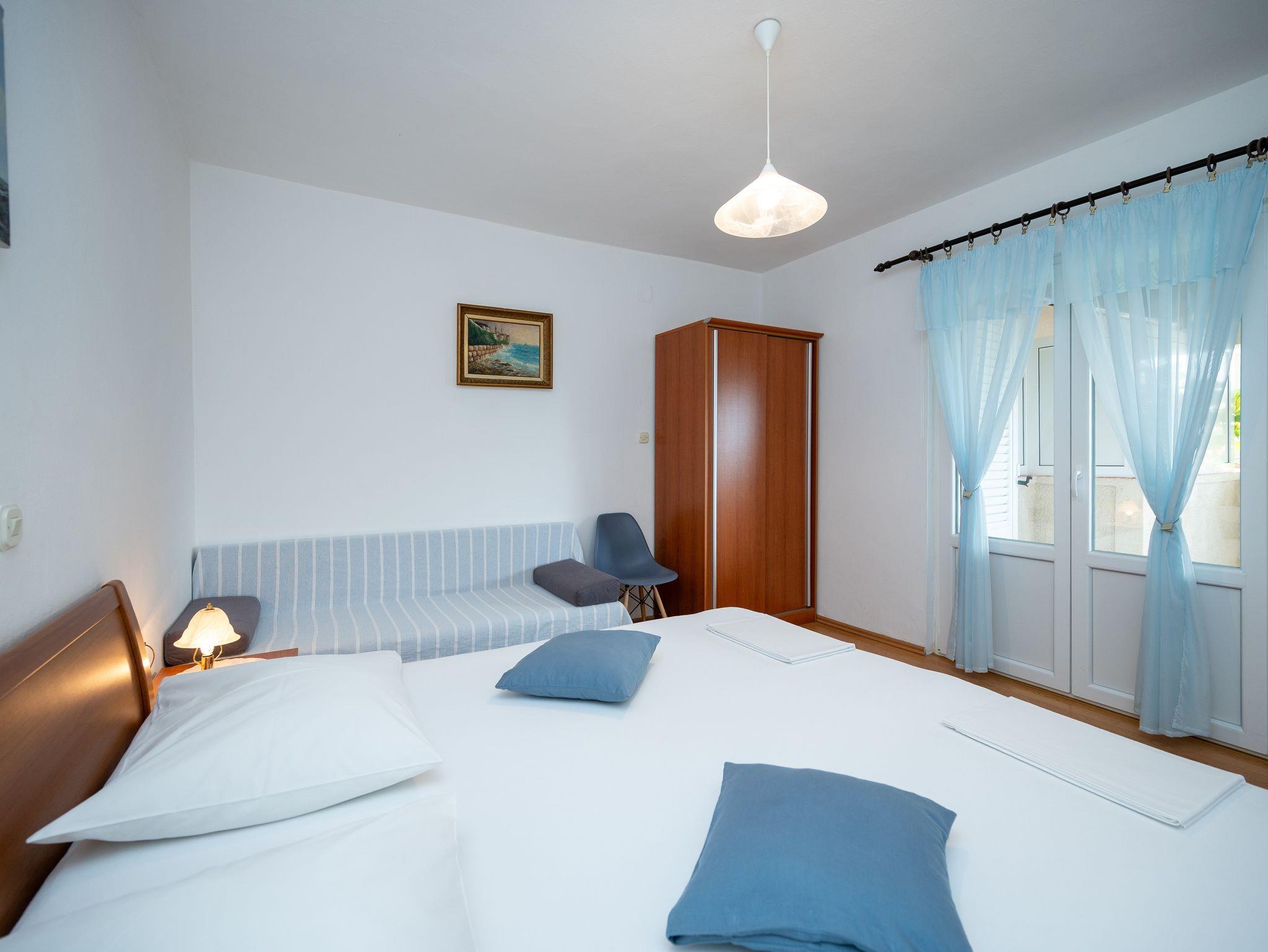 Ferienwohnung bietet Platz für 2 Gäste. Die Betten sind in Schlafzimmern, die es 1 gibt, innerhalb einer Gesamtfläche von 32m2, angeordnet. Die Gäste haben eine eigene Terrasse zur Verfügung, auf der sie in warmen Sommernächten genießen können. Das Apartment bietet Meerblick. Es ist erlaubt, Speisen auf dem Gemeinschafts-Grill vorzubereiten. In der Unterkunftseinheit besteht die Möglichkeit des Mitbringens von Haustieren gegen Aufpreis. IM PREIS INBEGRIFFEN: Kurtaxe, Endreinigung, Klimatisierung, Parkplatz, Internet, Kinderbett, Bügeleisen, Bügelbrett, Föhn. VERBINDLICHE ZUSÄTZLICHE KOSTEN: Aufzahlung für Kurzaufenthalte (prozentualer Zuschlag pro Nächtigungsanzahl: 30% - 1, 20% - 2, 10% - 3). UNVERBINDLICHE ZUSÄTZLICHE KOSTEN: Haustiere (10,00 € pro Nacht), 2 Kinderbettchen (15,00 € Person/Tag). Die Verfügbarkeit zusätzlicher Dienstleistungen in Ihrem reservierten Termin und die Preise derselben (falls nicht aufgeführt) müssen im Voraus überprüft werden. Zusätzliche Dienstleistungen die in der Zahlungsaufforderung nicht aufgeführt sind werden direkt beim Vermieter bezahlt, angenommen der Gast nutzt auch diese.