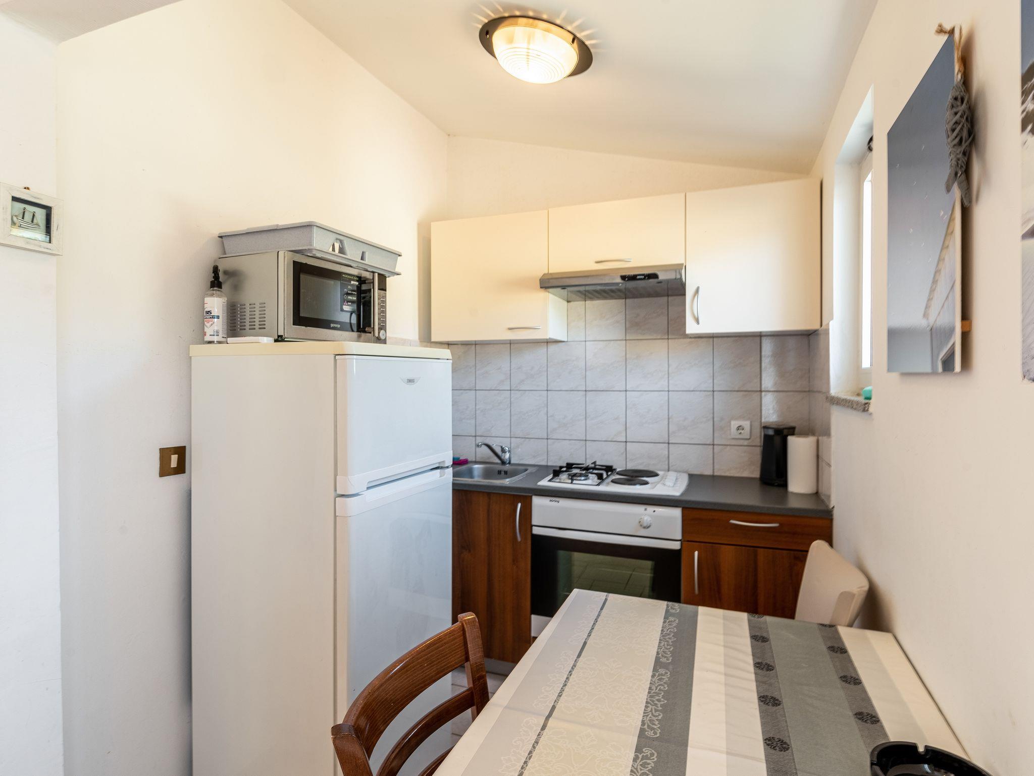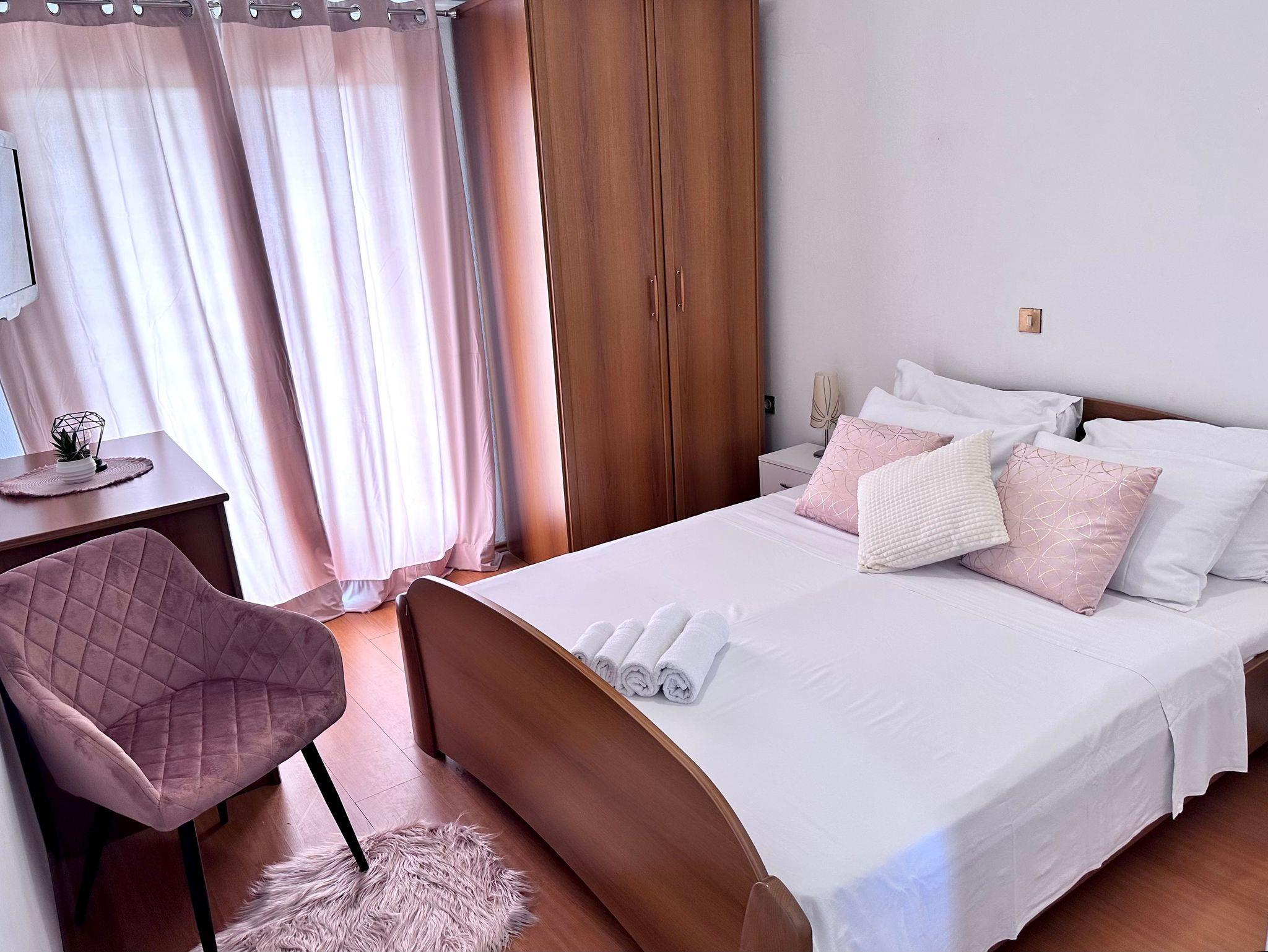 Ferienwohnung bietet Platz für 5 Gäste. Die Betten sind in Schlafzimmern, die es 2 gibt, innerhalb einer Gesamtfläche von 40m2, angeordnet. Die Gäste haben einen eigenen Balkon zur Verfügung, auf der sie in warmen Sommernächten genießen können. Das Apartment bietet Meerblick. Es ist erlaubt, Speisen auf dem Gemeinschafts-Grill vorzubereiten. In der Unterkunftseinheit besteht die Möglichkeit des Mitbringens von Haustieren gegen Aufpreis. Die reservierte Unterkunftseinheit verfügt über einen gemeinsame Terrasse. IM PREIS INBEGRIFFEN: Kurtaxe, Endreinigung, Klimatisierung, Parkplatz, Internet, Bügeleisen, Bügelbrett, Föhn. VERBINDLICHE ZUSÄTZLICHE KOSTEN: Aufzahlung für Kurzaufenthalte (prozentualer Zuschlag pro Nächtigungsanzahl: 30% - 1, 20% - 2, 10% - 3). UNVERBINDLICHE ZUSÄTZLICHE KOSTEN: Haustiere (20,00 € pro Nacht). Die Verfügbarkeit zusätzlicher Dienstleistungen in Ihrem reservierten Termin und die Preise derselben (falls nicht aufgeführt) müssen im Voraus überprüft werden. Zusätzliche Dienstleistungen die in der Zahlungsaufforderung nicht aufgeführt sind werden direkt beim Vermieter bezahlt, angenommen der Gast nutzt auch diese. Ermäßigung auf den Grundpreis: Gratistag 14=13 (bei einem Aufenthalt von 14 Tagen oder mehr erhalten Sie einen Gratistag für den Aufenthalt bis 31.12.26).