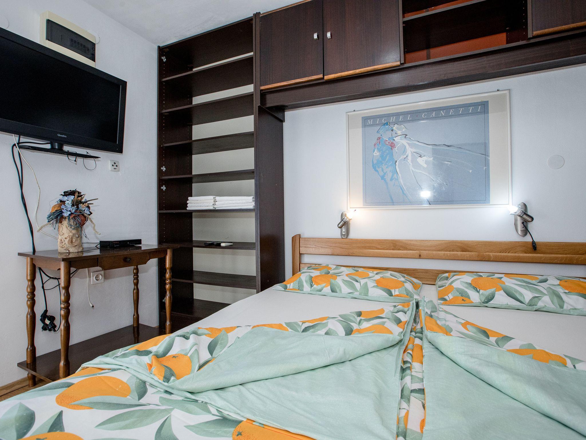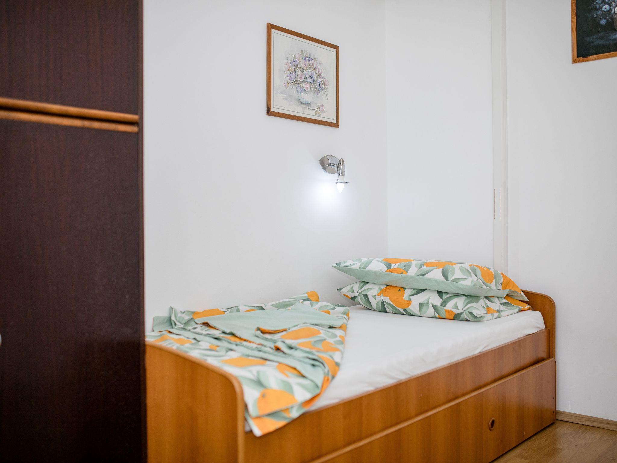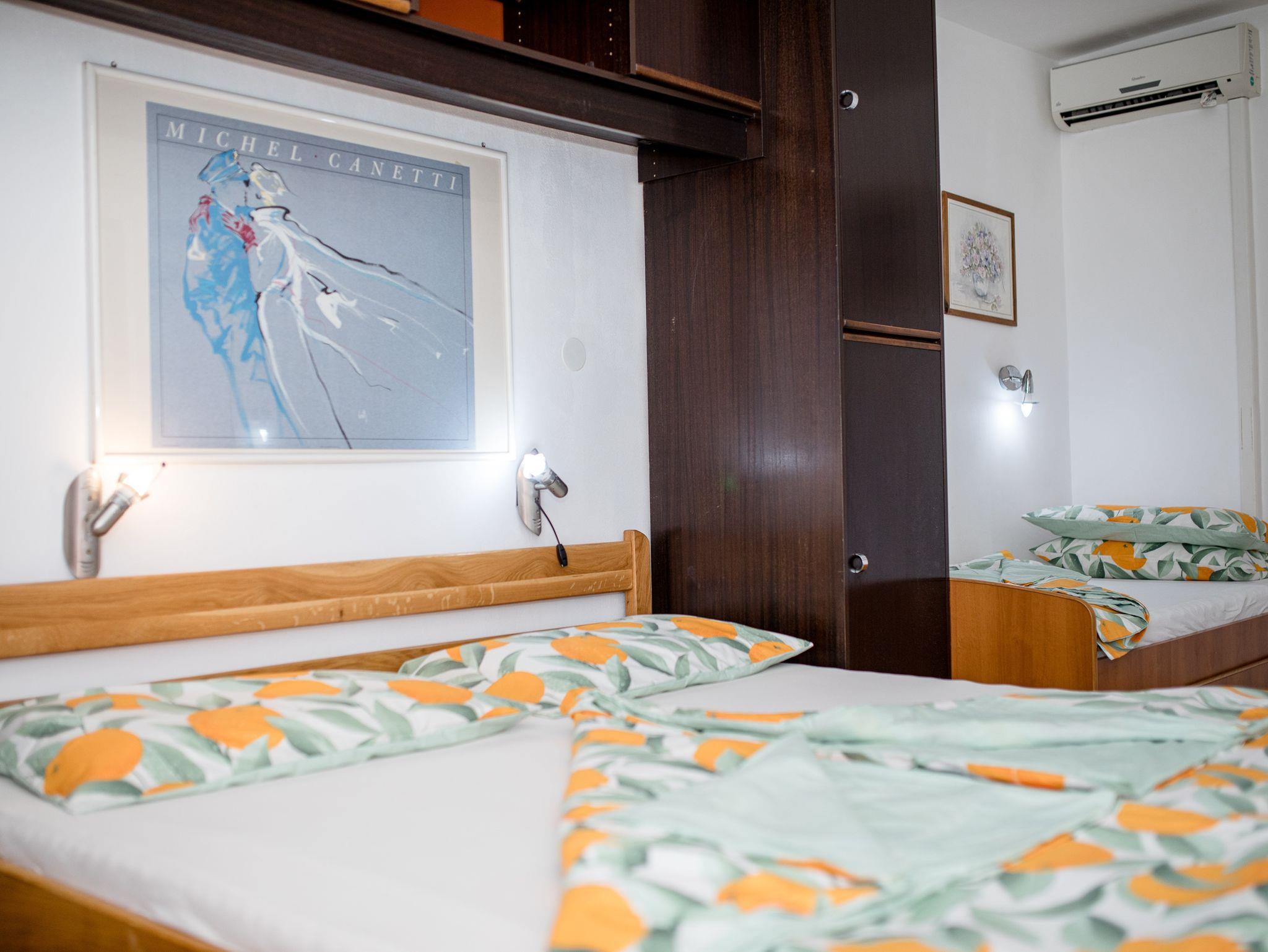 Ferienwohnung bietet Platz für 4 Gäste. Die Betten sind in Schlafzimmern, die es 1 gibt, innerhalb einer Gesamtfläche von 28m2, angeordnet. Das Apartment bietet Meerblick. Es ist erlaubt, Speisen auf dem Gemeinschafts-Grill vorzubereiten. In der Unterkunftseinheit besteht die Möglichkeit des Mitbringens von Haustieren gegen Aufpreis. Die reservierte Unterkunftseinheit verfügt über einen gemeinsamen Balkon. IM PREIS INBEGRIFFEN: Kurtaxe, Endreinigung, Klimatisierung, Parkplatz, Internet. UNVERBINDLICHE ZUSÄTZLICHE KOSTEN: Haustiere (5,00 € pro Nacht). Die Verfügbarkeit zusätzlicher Dienstleistungen in Ihrem reservierten Termin und die Preise derselben (falls nicht aufgeführt) müssen im Voraus überprüft werden. Zusätzliche Dienstleistungen die in der Zahlungsaufforderung nicht aufgeführt sind werden direkt beim Vermieter bezahlt, angenommen der Gast nutzt auch diese. Ermäßigung auf den Grundpreis: Gratistag 14=13 (bei einem Aufenthalt von 14 Tagen oder mehr erhalten Sie einen Gratistag für den Aufenthalt bis 31.12.26).