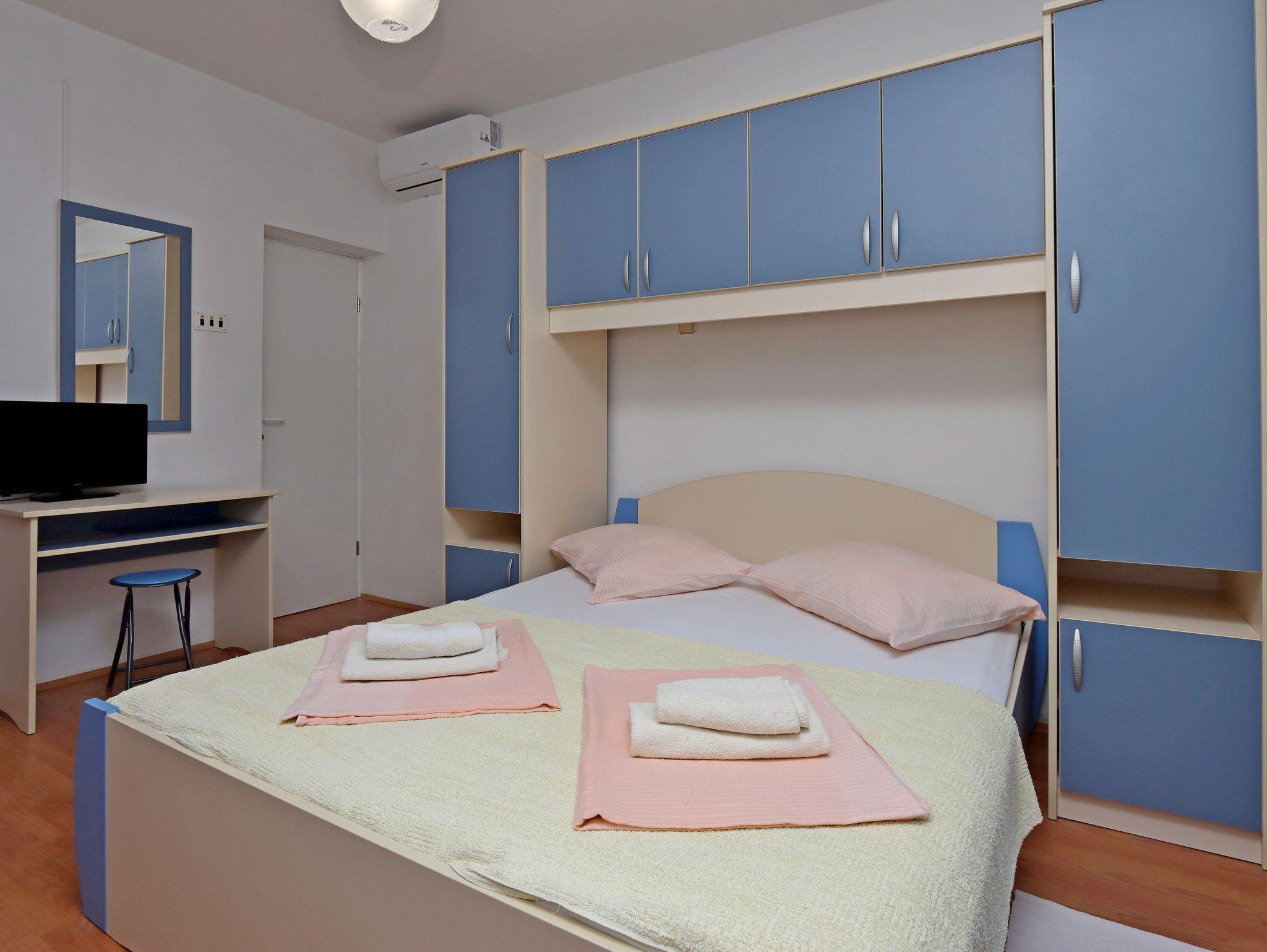 Studio bietet Platz für 2 Gäste. Die Betten sind in Schlafzimmern, die es 1 gibt, innerhalb einer Gesamtfläche von 18m2, angeordnet. Die Gäste haben eine eigene Terrasse zur Verfügung, auf der sie in warmen Sommernächten genießen können. Es ist erlaubt, Speisen auf dem Gemeinschafts-Grill vorzubereiten. Räume der gebuchten Unterkunftseinheit werden nicht in eine Ganze verbunden. IM PREIS INBEGRIFFEN: Kurtaxe, Endreinigung, Parkplatz, Internet. VERBINDLICHE ZUSÄTZLICHE KOSTEN: Aufzahlung für Kurzaufenthalte (prozentualer Zuschlag pro Nächtigungsanzahl: 30% - 1, 20% - 2, 10% - 3). UNVERBINDLICHE ZUSÄTZLICHE KOSTEN: Klimatisierung (3,00 € pro Nacht), Bootsanlegeplatz (10,00 € pro Nacht), Zusatzbett (10,00 € pro Nacht). Die Verfügbarkeit zusätzlicher Dienstleistungen in Ihrem reservierten Termin und die Preise derselben (falls nicht aufgeführt) müssen im Voraus überprüft werden. Zusätzliche Dienstleistungen die in der Zahlungsaufforderung nicht aufgeführt sind werden direkt beim Vermieter bezahlt, angenommen der Gast nutzt auch diese.