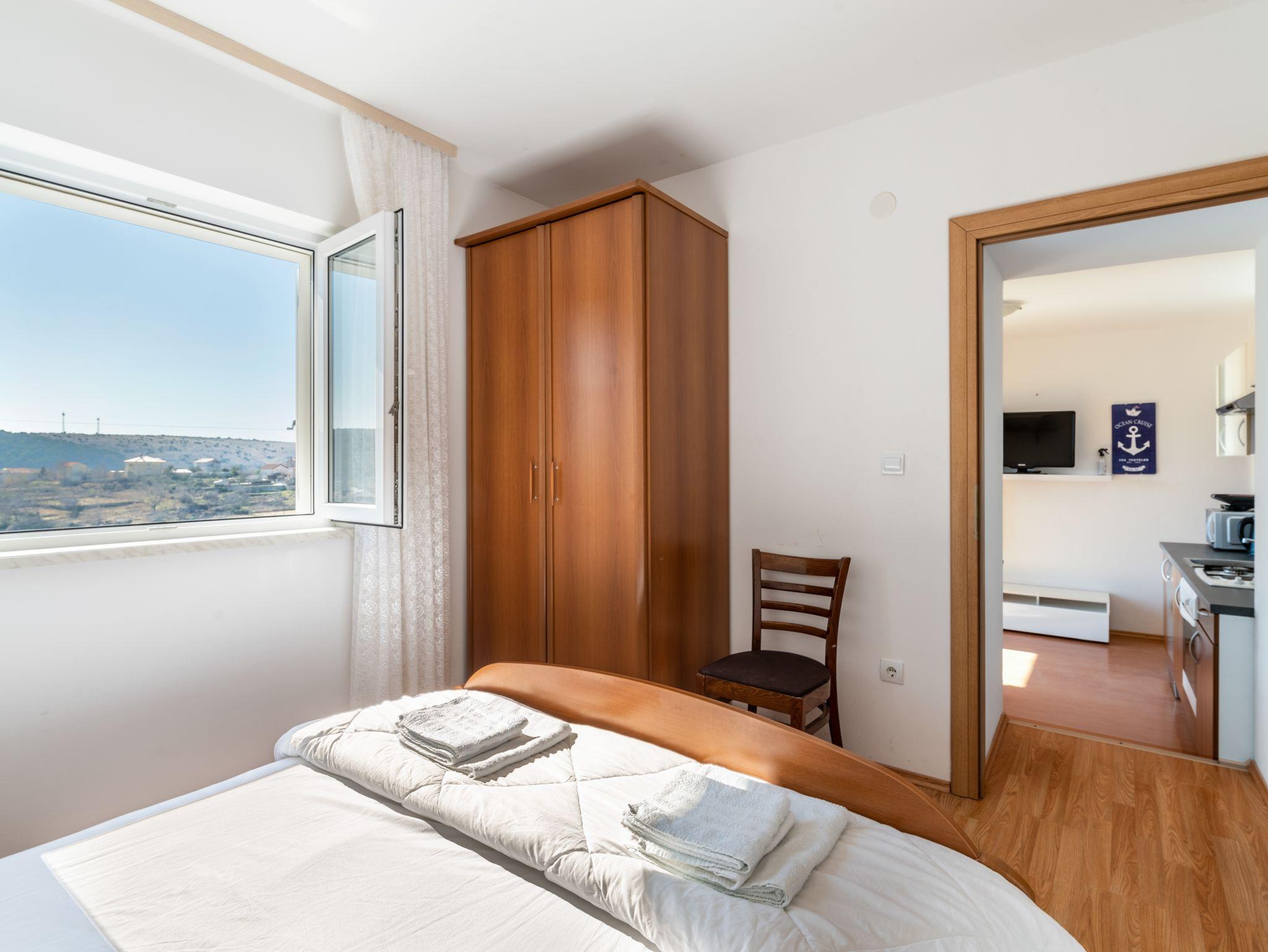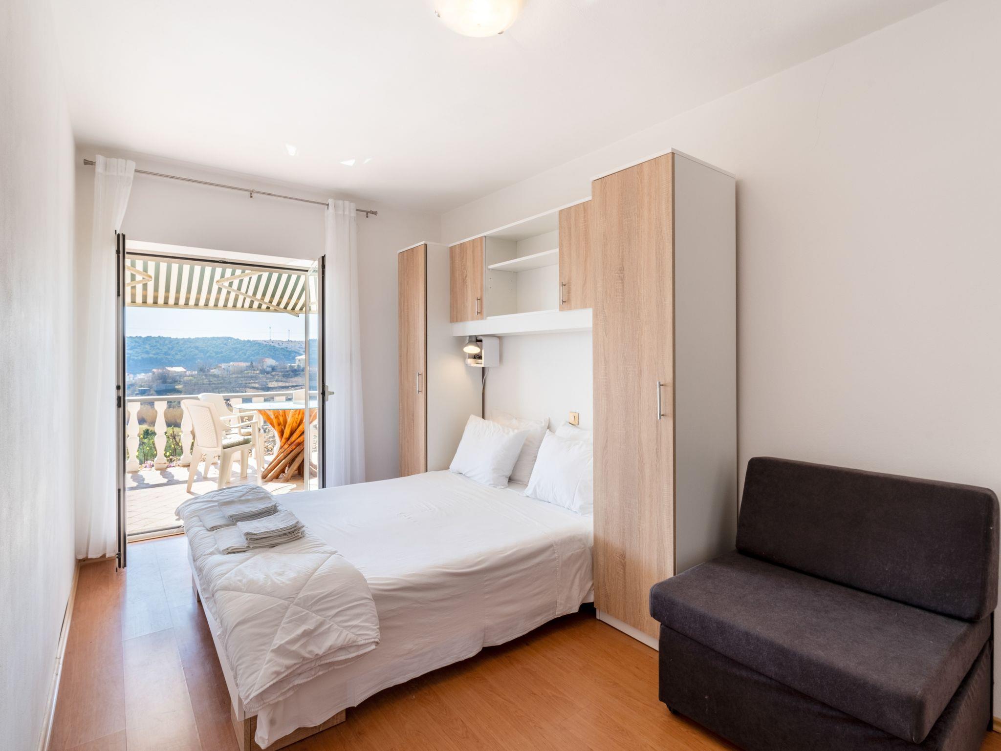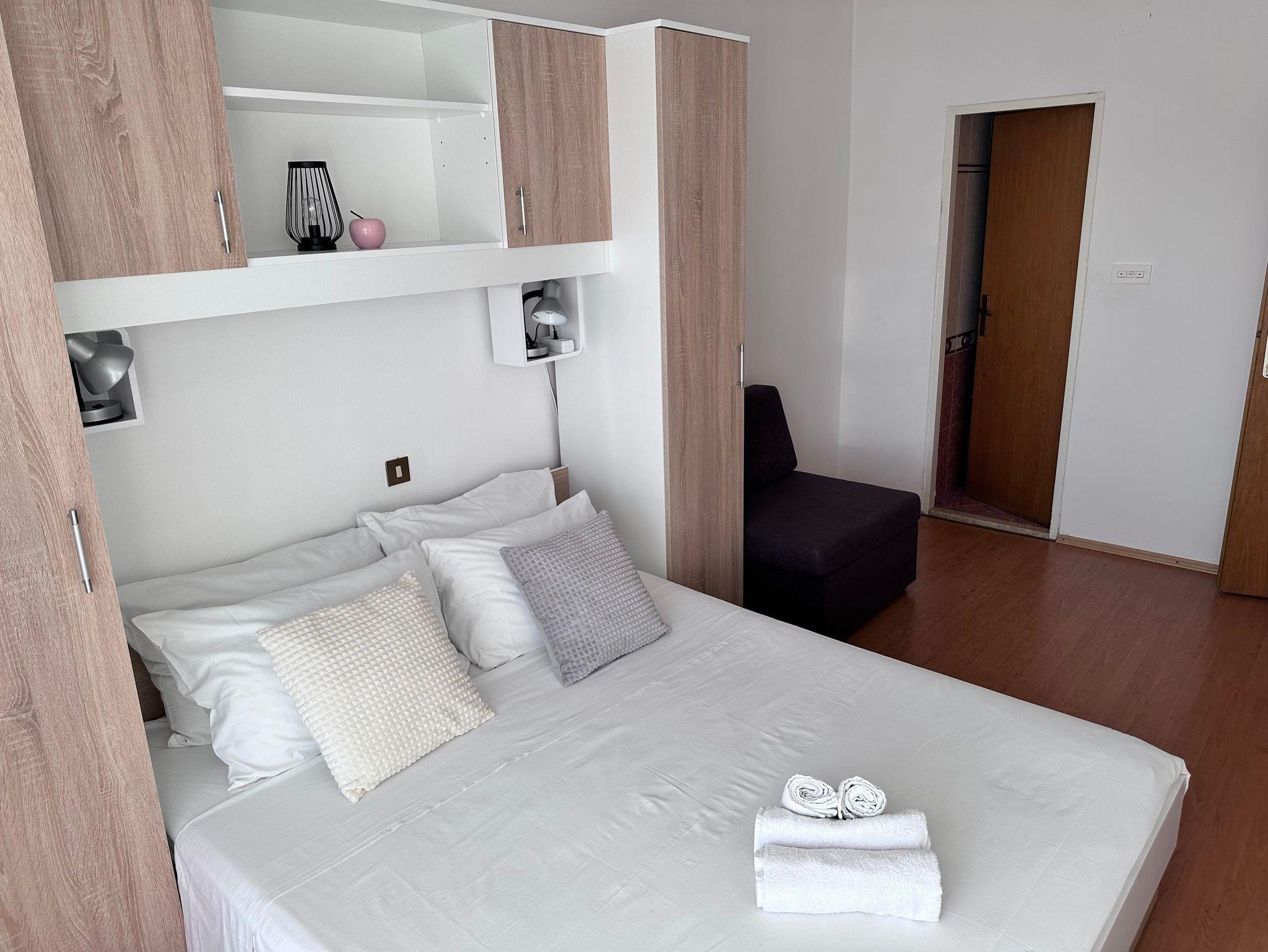Ferienwohnung bietet Platz für 5 Gäste. Die Betten sind in Schlafzimmern, die es 2 gibt, innerhalb einer Gesamtfläche von 48m2, angeordnet. Die Gäste haben eine eigene Terrasse zur Verfügung, auf der sie in warmen Sommernächten genießen können. Es ist erlaubt, Speisen auf dem Gemeinschafts-Grill vorzubereiten. In der Unterkunftseinheit besteht die Möglichkeit des Mitbringens von Haustieren gegen Aufpreis. IM PREIS INBEGRIFFEN: Kurtaxe, Endreinigung, Klimatisierung, Parkplatz, Internet, Bügeleisen, Bügelbrett, Föhn. VERBINDLICHE ZUSÄTZLICHE KOSTEN: Aufzahlung für Kurzaufenthalte (prozentualer Zuschlag pro Nächtigungsanzahl: 30% - 1, 20% - 2, 10% - 3). UNVERBINDLICHE ZUSÄTZLICHE KOSTEN: Haustiere (20,00 € pro Nacht). Die Verfügbarkeit zusätzlicher Dienstleistungen in Ihrem reservierten Termin und die Preise derselben (falls nicht aufgeführt) müssen im Voraus überprüft werden. Zusätzliche Dienstleistungen die in der Zahlungsaufforderung nicht aufgeführt sind werden direkt beim Vermieter bezahlt, angenommen der Gast nutzt auch diese. Ermäßigung auf den Grundpreis: Gratistag 14=13 (bei einem Aufenthalt von 14 Tagen oder mehr erhalten Sie einen Gratistag für den Aufenthalt bis 31.12.26).