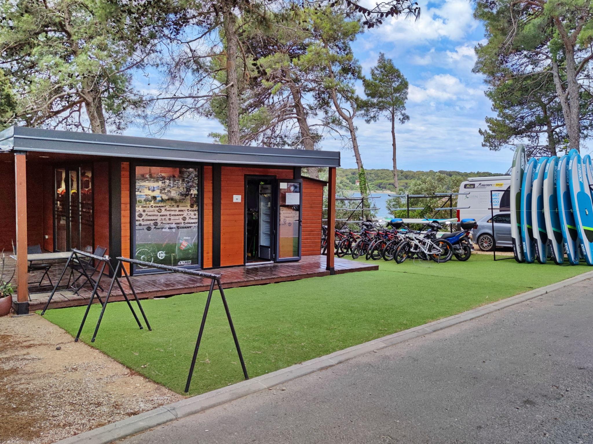 Poljana 3 km from Mali Lošinj: Child friendly resort "Camping Village Poljana". 8 km from the centre of Veli Lošinj, 64 km from the centre of Merag, 78 km from the centre of Krk, in a sunny position, 20 m from the sea, direct access to the beach. For shared use: property 15 ha (fenced) with trees. Outdoor shower, tennis (extra), beach volleyball, children's playground. In the complex: reception, restaurant, bar, shopping facilities, washing machine (for shared use, extra), bicycle rental. Linen change (suppl. charge extra). Towel change (suppl. charge extra). Breakfast full board half board possible (extra). Grocery 100 m, supermarket 3 km, restaurant, café 100 m, bus stop 60 m, ferry "Merag" 64 km, shingle beach 70 m, rocky beach 50 m, nudist beach 300 m. Marina 200 m, walking paths from the house 50 m, cycle lane 100 m. Nearby attractions: Museum of Apoxyomenos 3 km, Dolphine watching 9 km, Gyps fulvus bird watching 40 km. Well-known lakes can easily be reached: Vransko jezero 35 km. Please note: entertainment in the season. Suitable for families, baby equipment on request (extra). The photograph shows a typical example. The mobile homes are situated 50 - 250 m from the sea and the beach. Parking for 1 car, 20 m from the mobile home (incl.), parking for 2nd car to be paid extra.