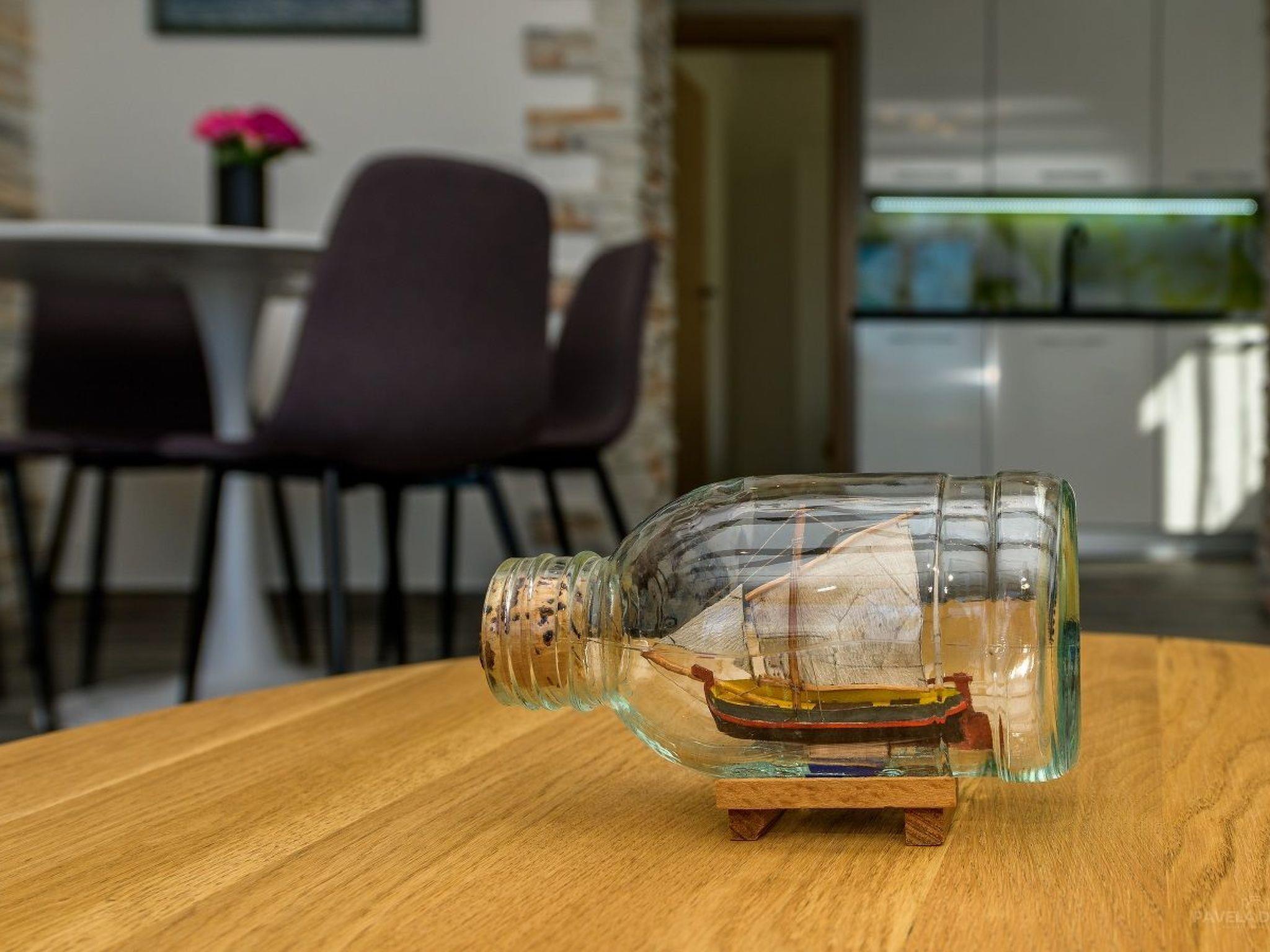 The apartments for 3 people Kamelia, Lavanda and Magnolia consist of a bedroom with a double bed, a kitchenette with all appliances, and a large living room with a dining room from which there is a view of the sea and an exit to the balcony. The living room also has two single beds. The apartment also has a bathroom with a shower.