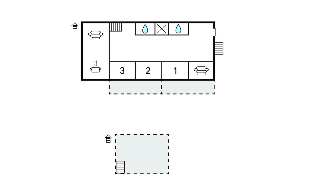 Badeværelse 5m2 (nr. 1) - WC. Varmt og koldt vand. Bruser