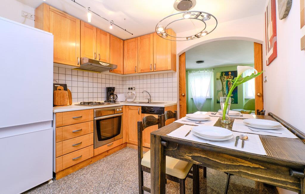 Tag familien under armen og rejs til Kroatien, hvor I i dette fine toetagershus får de ideelle rammer for årets ø-ferie på Losinj. Indretningen fremtræder flot og rustikt med livlige farveskalaer og pæn kunst på væggene, der giver det indre et hjemligt udtryk og gør det nemt at slappe af med det samme, I stiller kufferterne. Huset er veludstyret med alle de faciliteter, I behøver for at kræse om livretterne i køkkenet, nyde måltiderne ved spisebordet og dække op til hyggelige filmaftener efter dagens muntre leg.